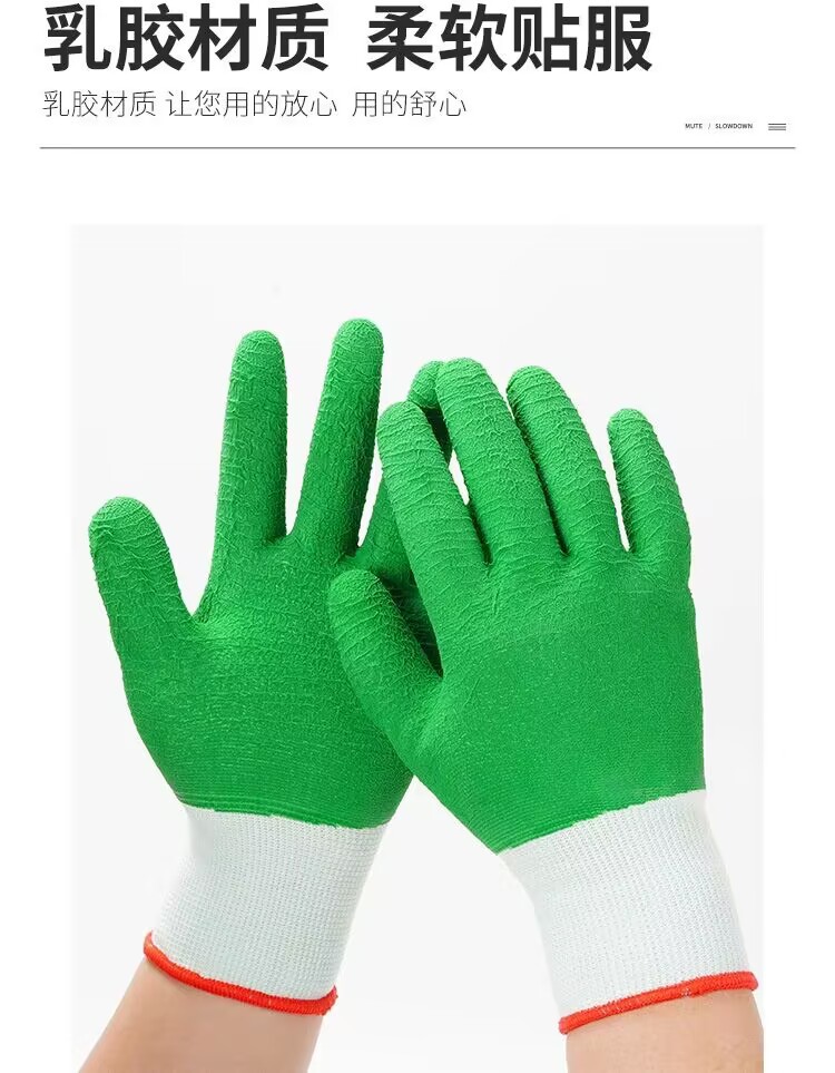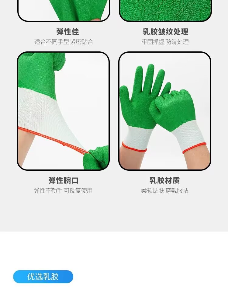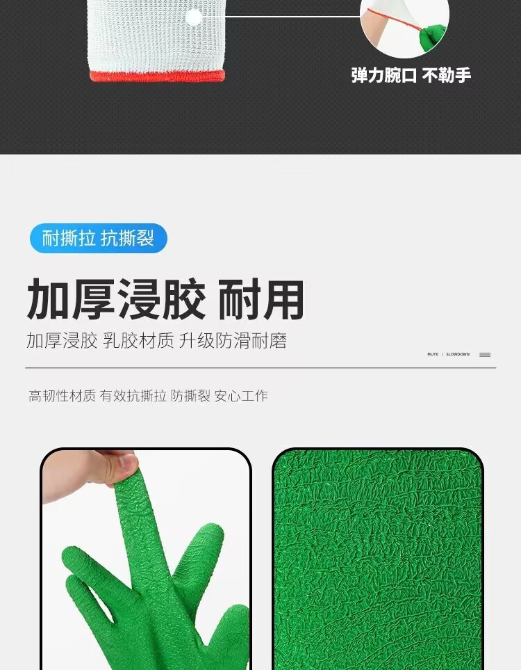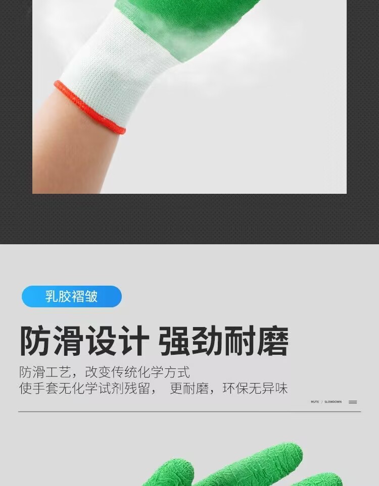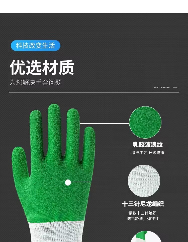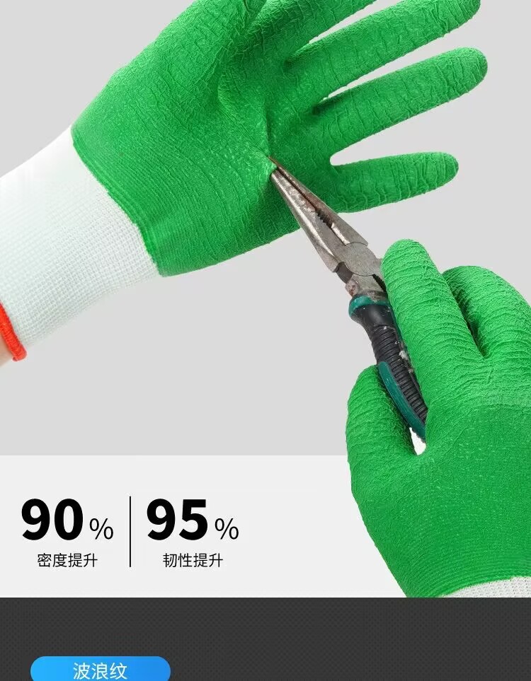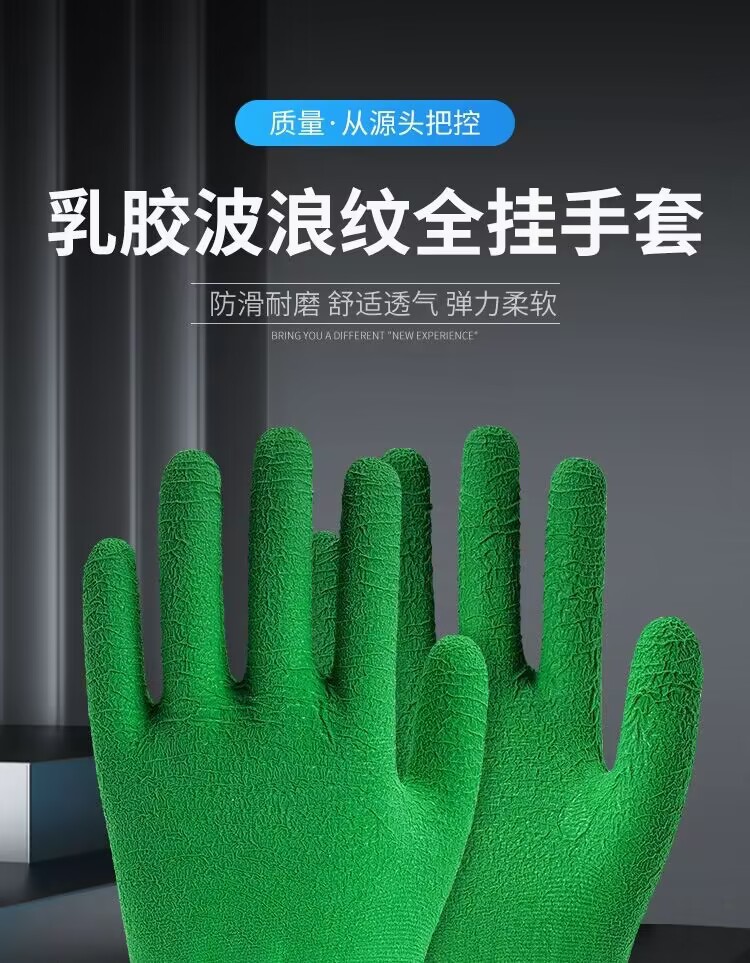 모든 고무 녹색 주름 함침 노동 장갑 미끄럼 방지 편안한 통기성 공장 작업장 기계 제조 장갑스토어 가기