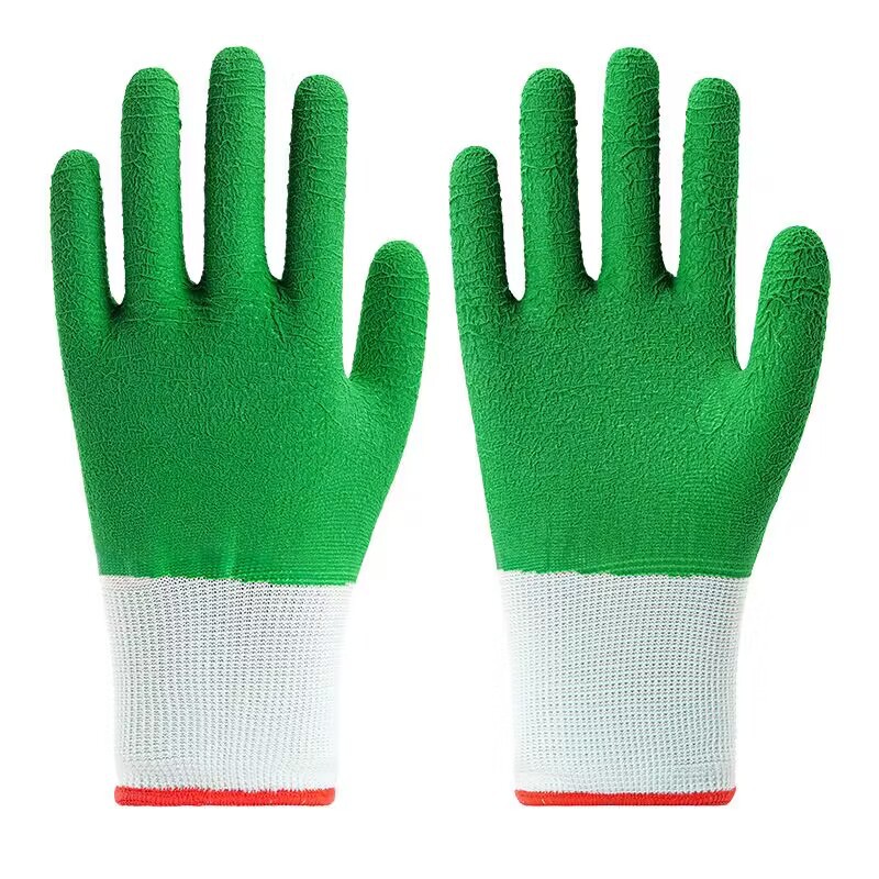 모든 고무 녹색 주름 함침 노동 장갑 미끄럼 방지 편안한 통기성 공장 작업장 기계 제조 장갑