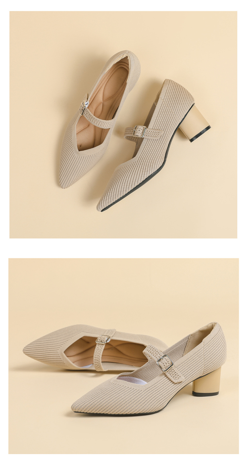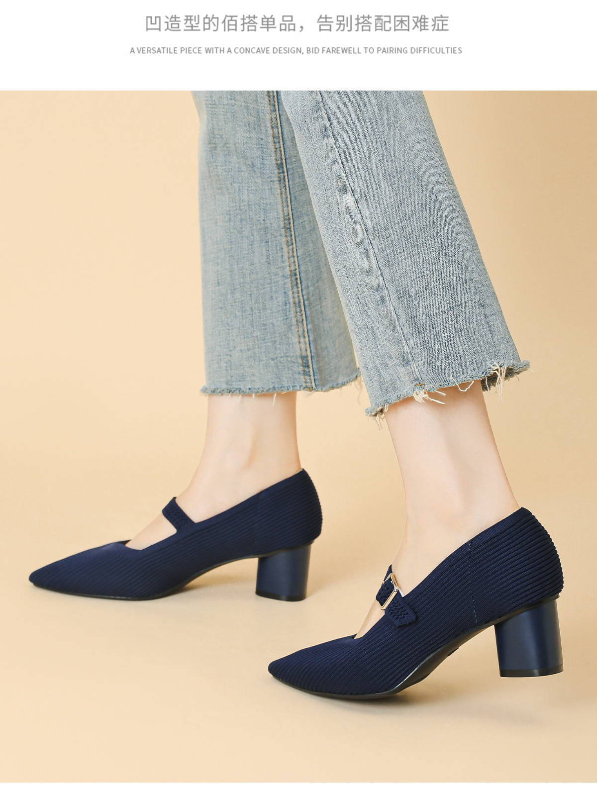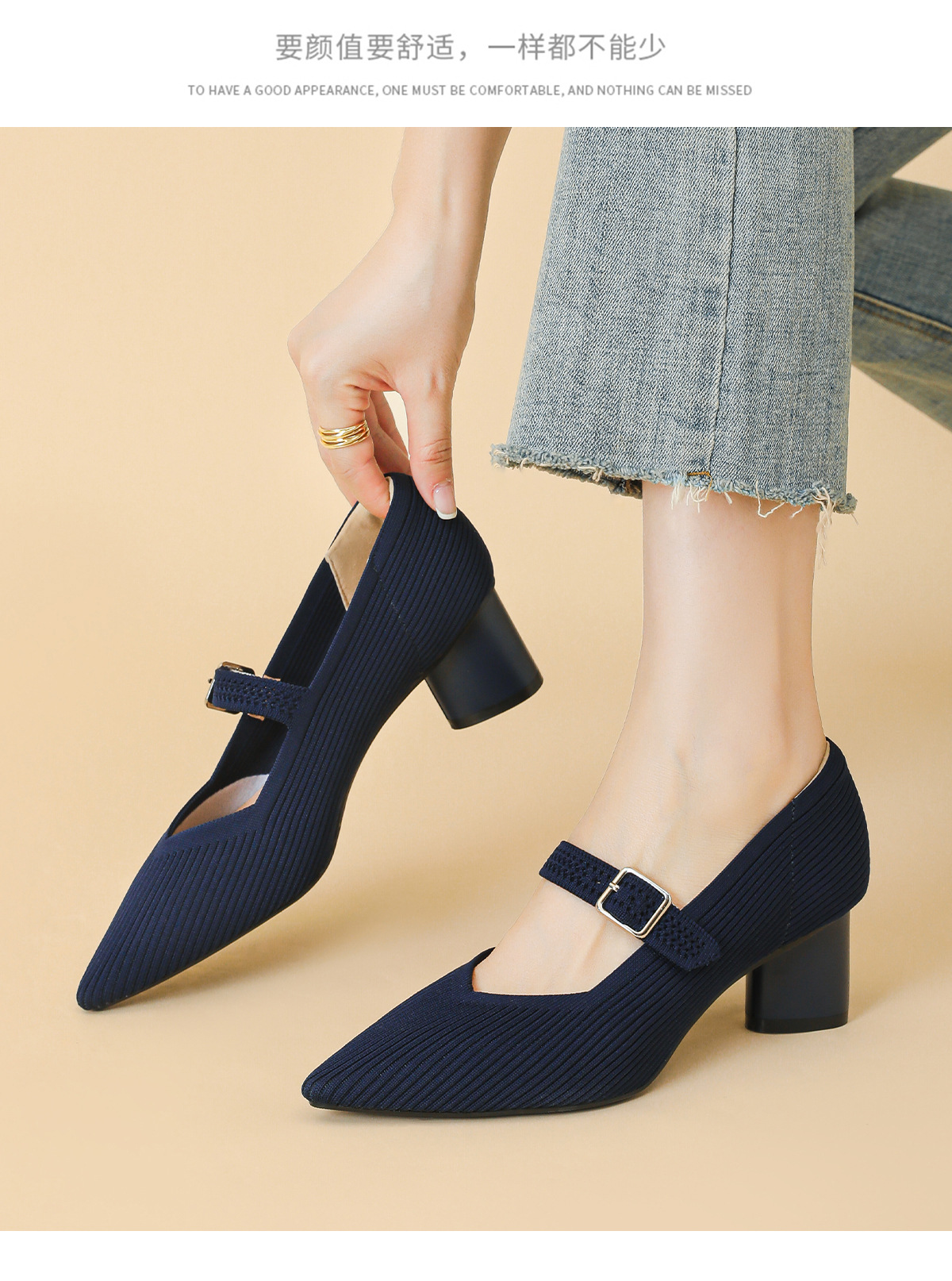 568-1 뾰족한 얕은 입 공주 신발 여성의 메리 제인 한 단어 통기성 하이힐 여성용 두꺼운 힐 캐주얼 신발스토어 가기