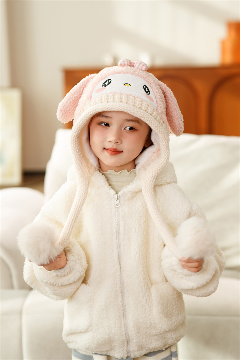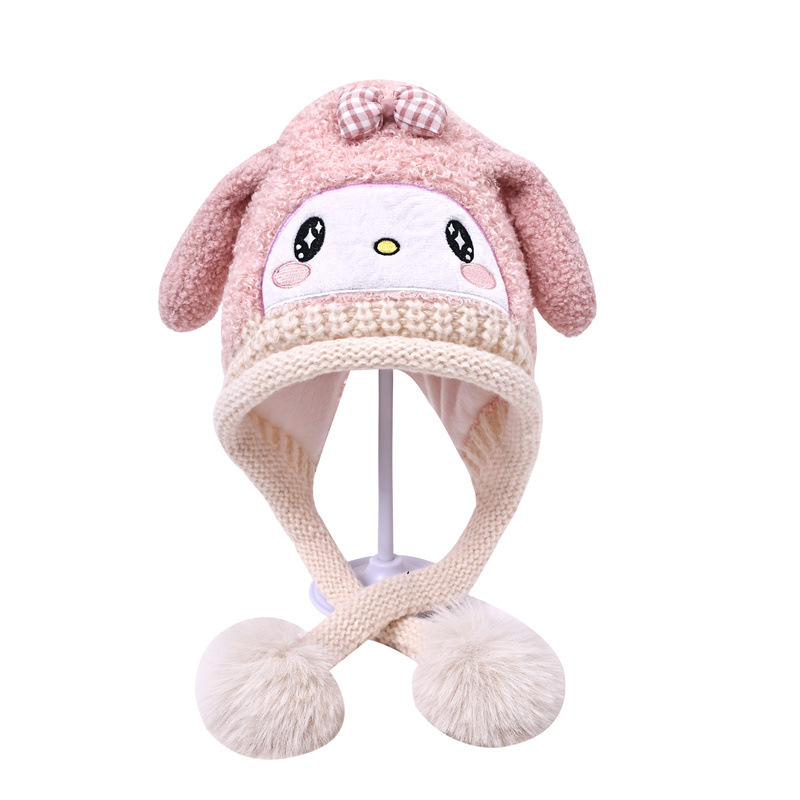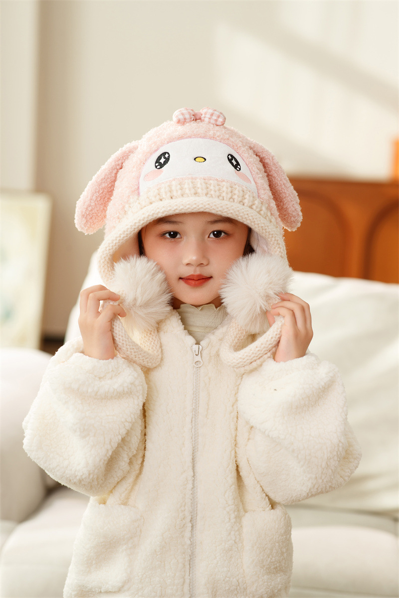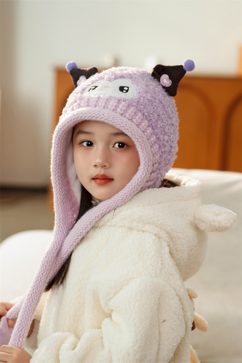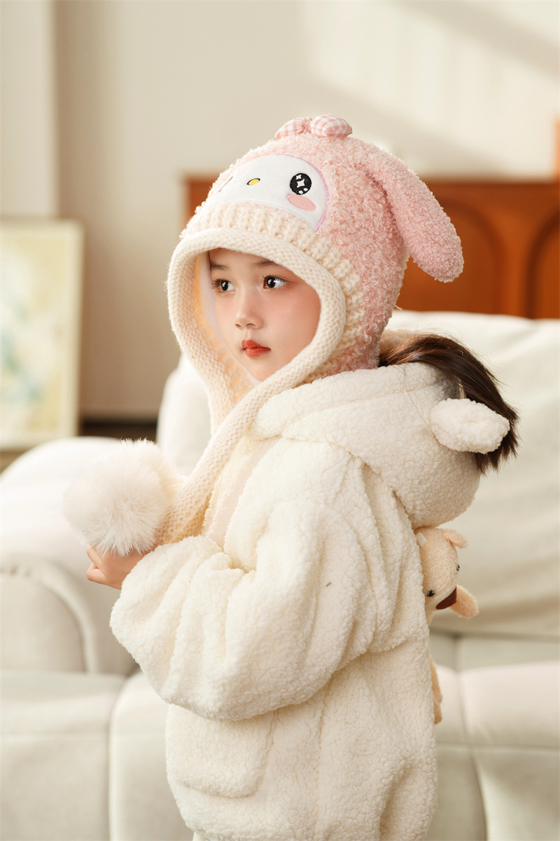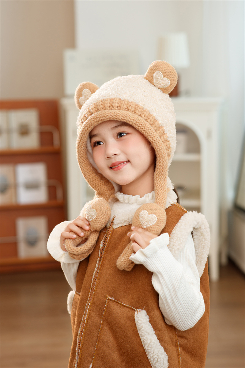만화 곰 봉제 귀 보호 모자 어린이 겨울 따뜻한 풀오버 레이 펑 모자 야외 아기 소년과 소녀 니트 모자