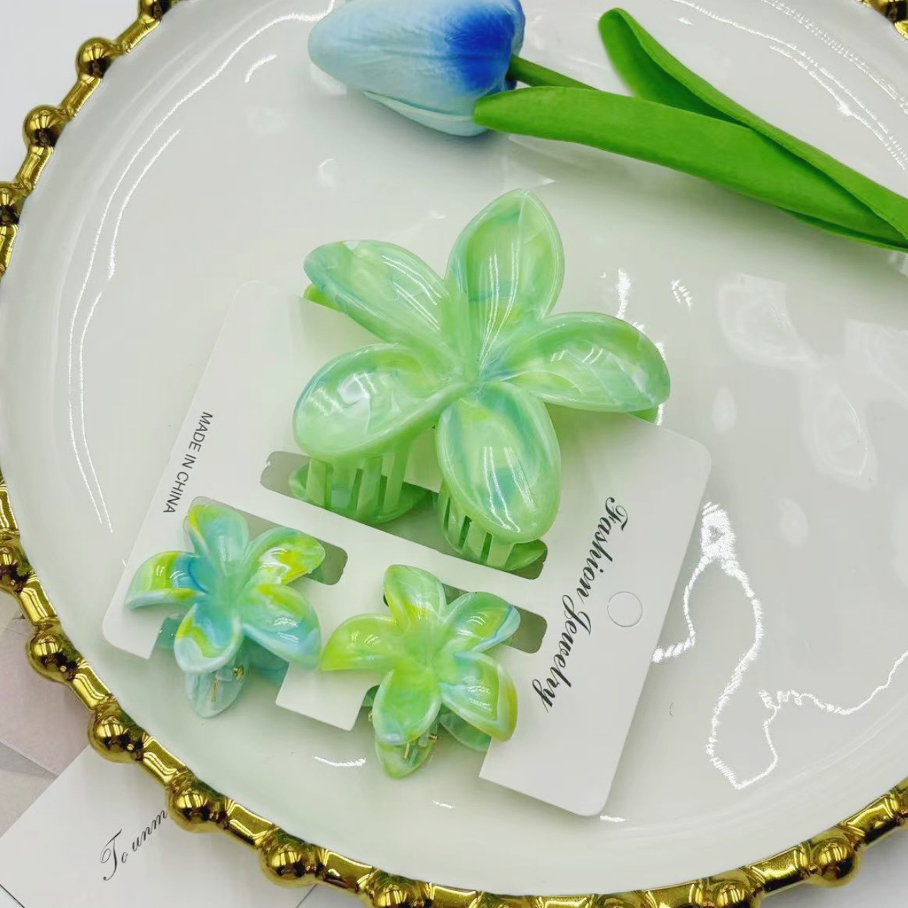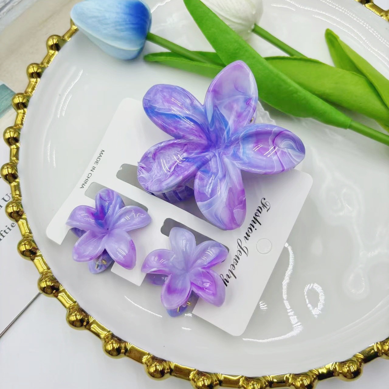 국경 새로운 대리석 잡아 클립 달콤한 신선한 계란 꽃 머리핀 여름 하이 엔드 상어 클립 헤어 액세서리스토어 가기