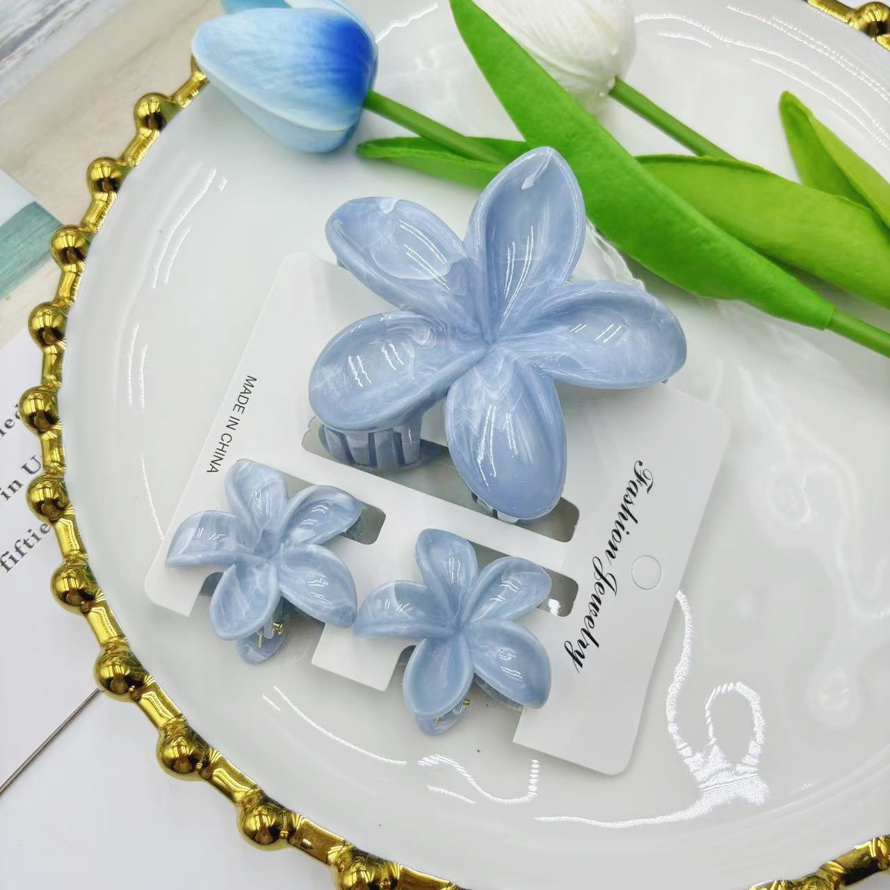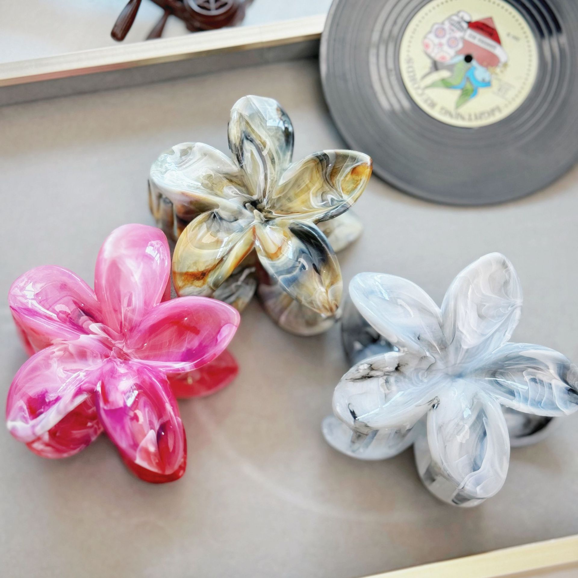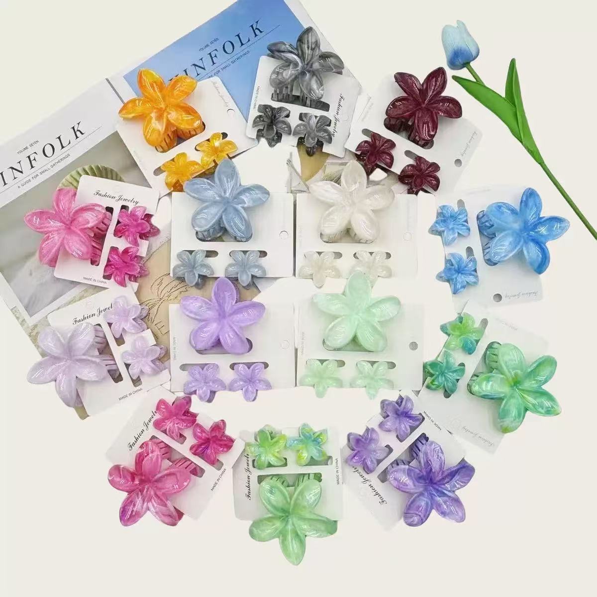 국경 새로운 대리석 잡아 클립 달콤한 신선한 계란 꽃 머리핀 여름 하이 엔드 상어 클립 헤어 액세서리