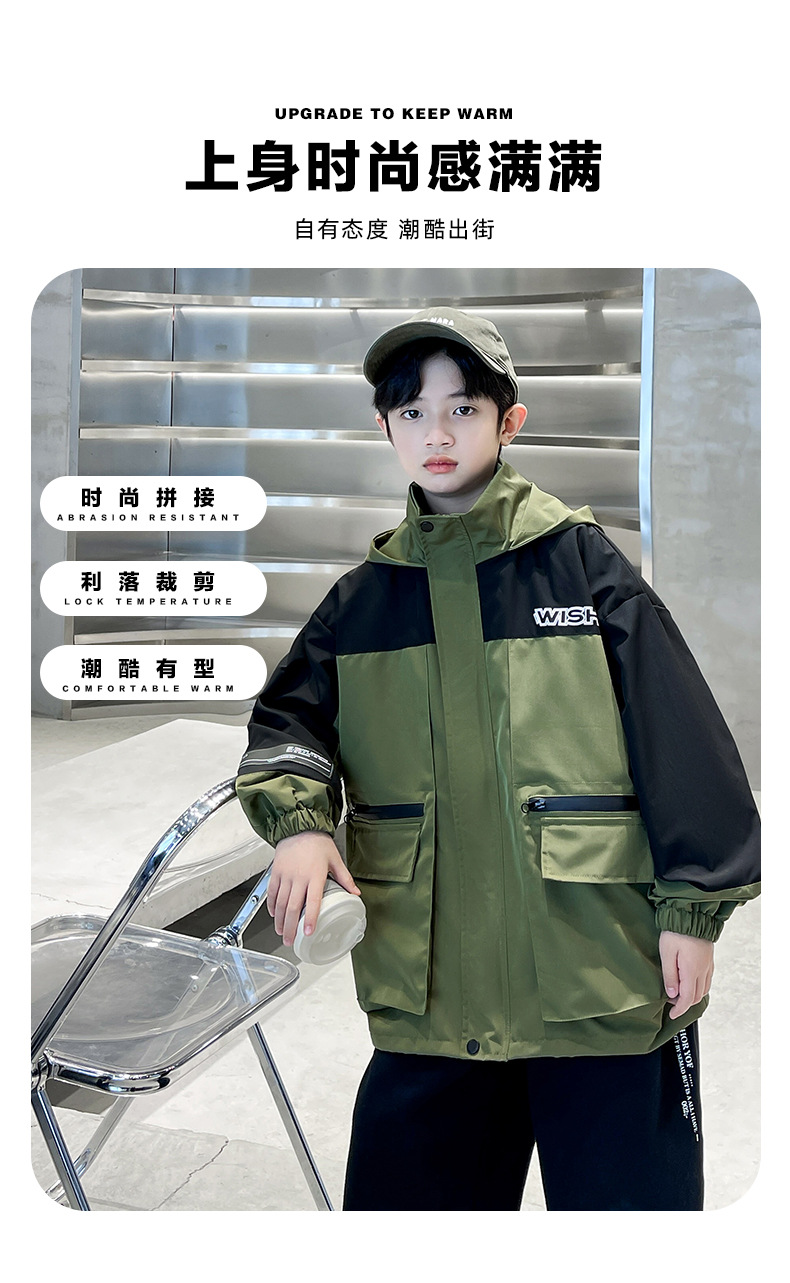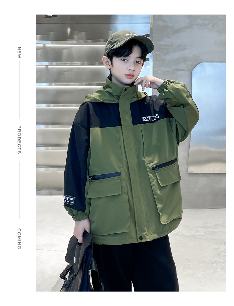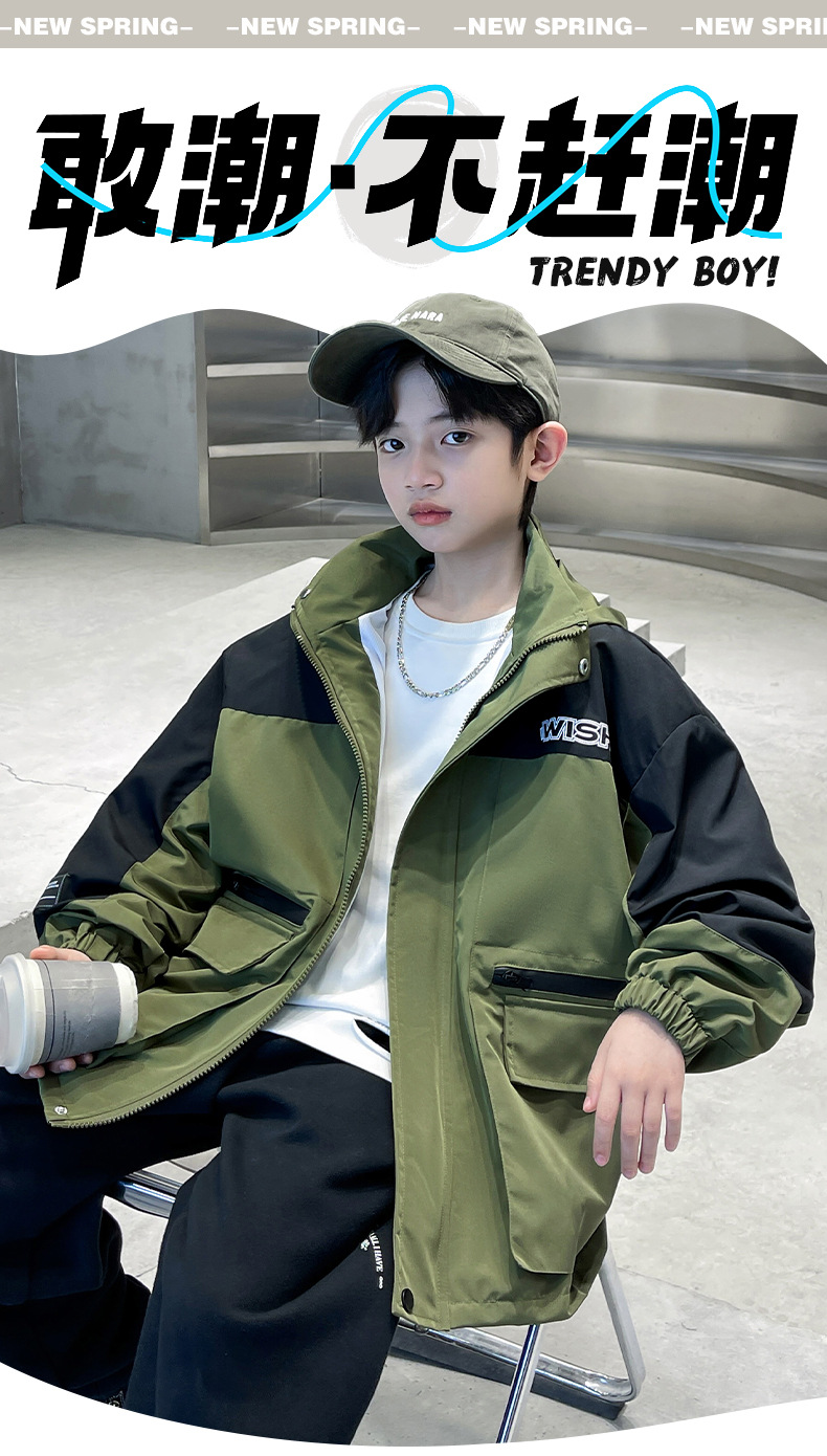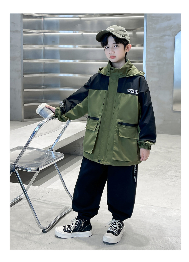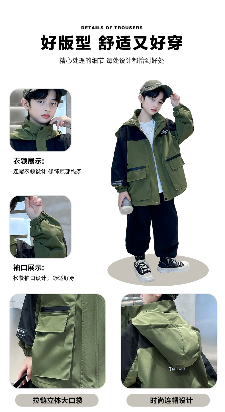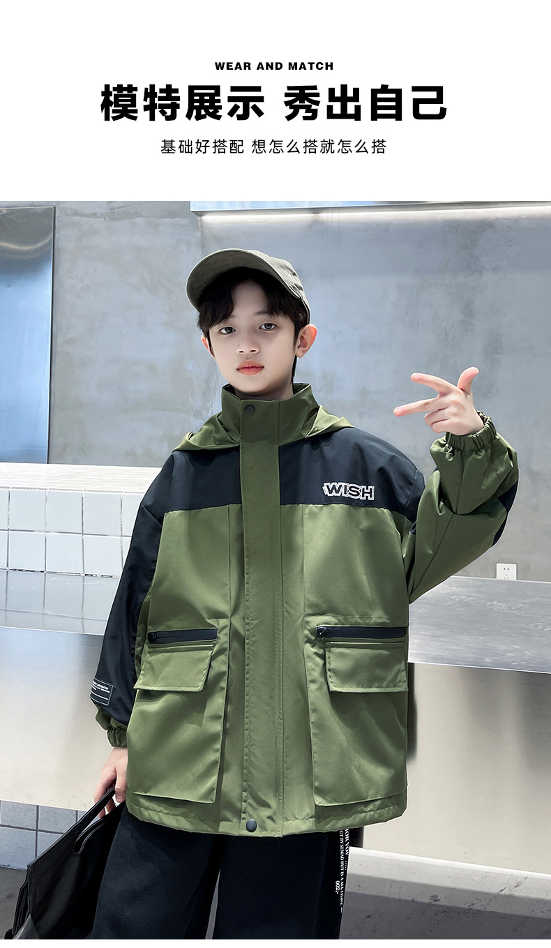 어린이 코트 봄과 가을 소년의 후드 코트 2024 새로운 도착 중대형 소년의 잘 생긴 가을 재킷 탑스토어 가기
