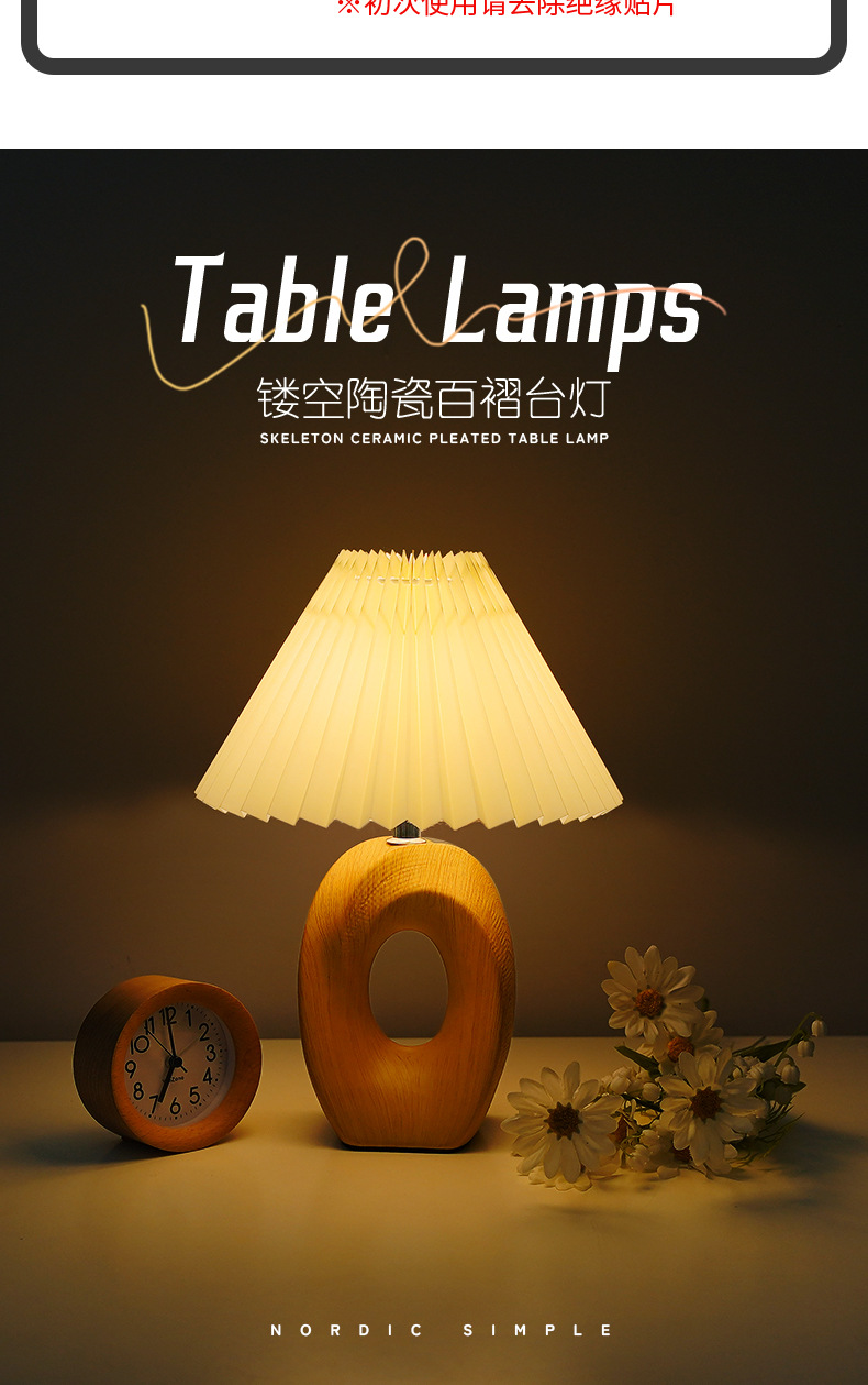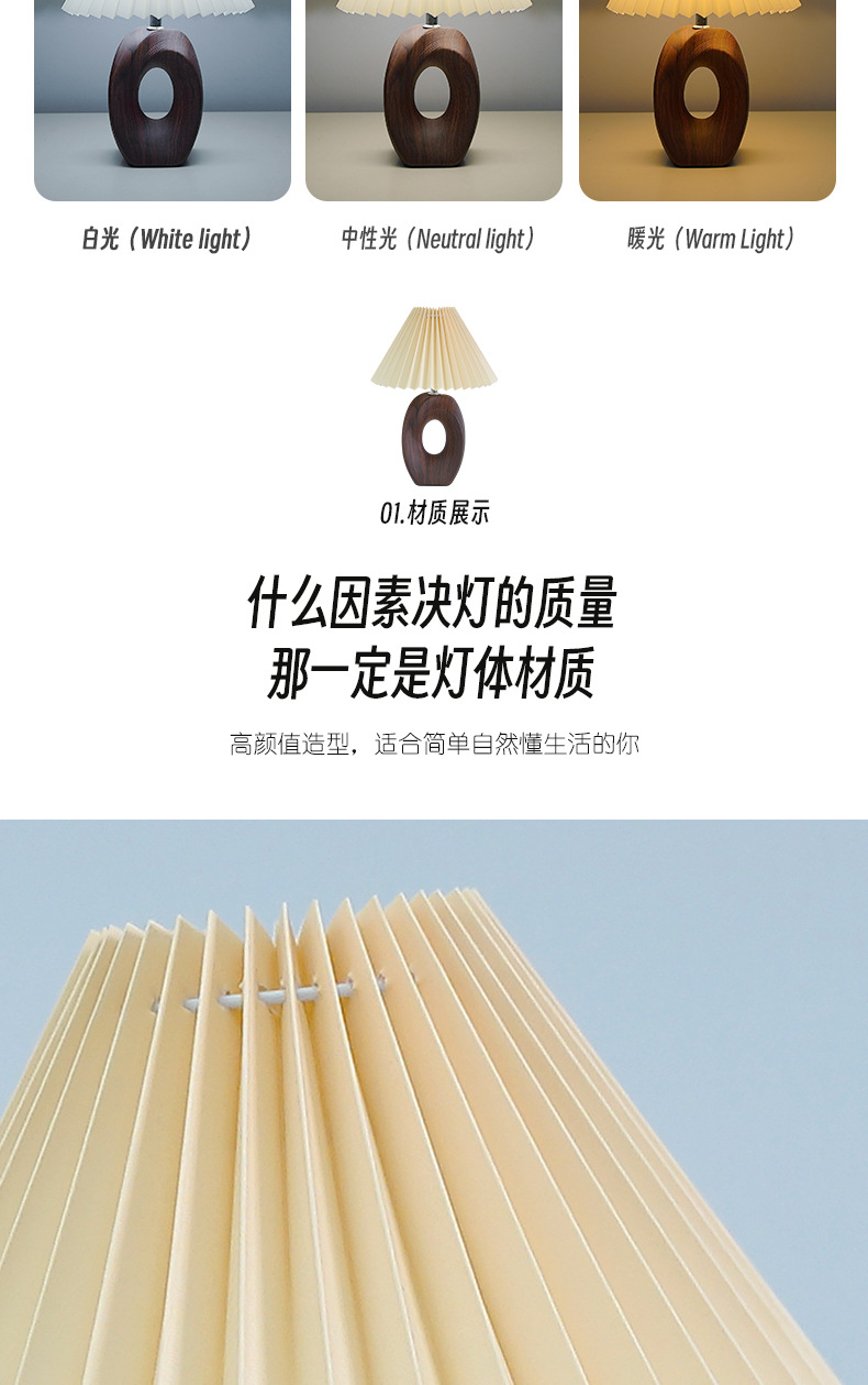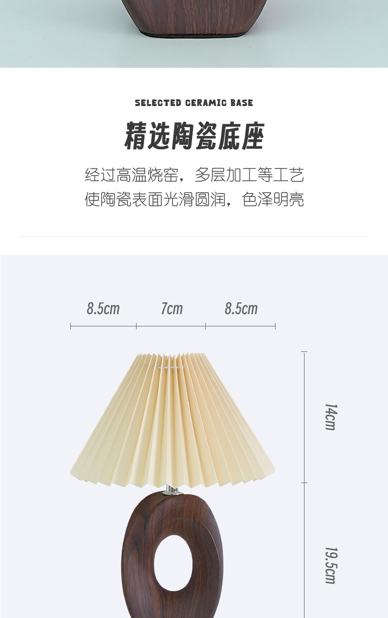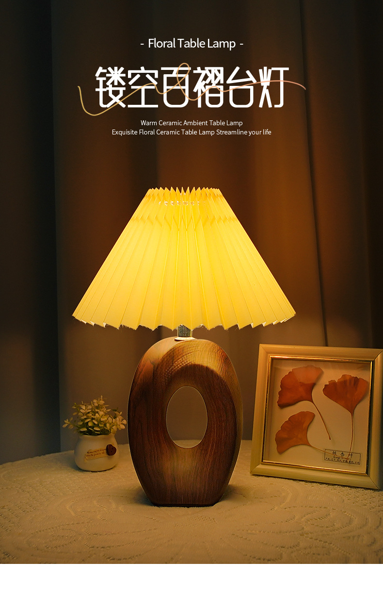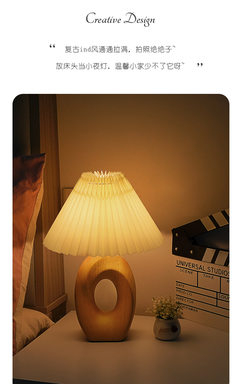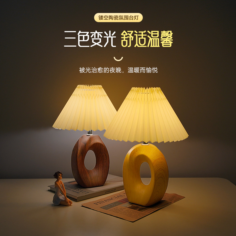 북유럽 스타일 주름 장식 레트로 테이블 램프, 세라믹 침실/서재 침대 옆 램프, 고급 분위기 장식 조명, 무드등, 야간 조명