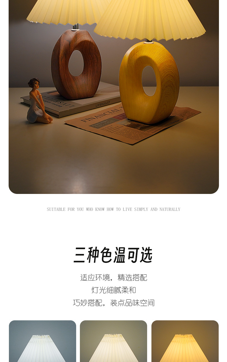 북유럽 스타일 주름 장식 레트로 테이블 램프, 세라믹 침실/서재 침대 옆 램프, 고급 분위기 장식 조명, 무드등, 야간 조명스토어 가기