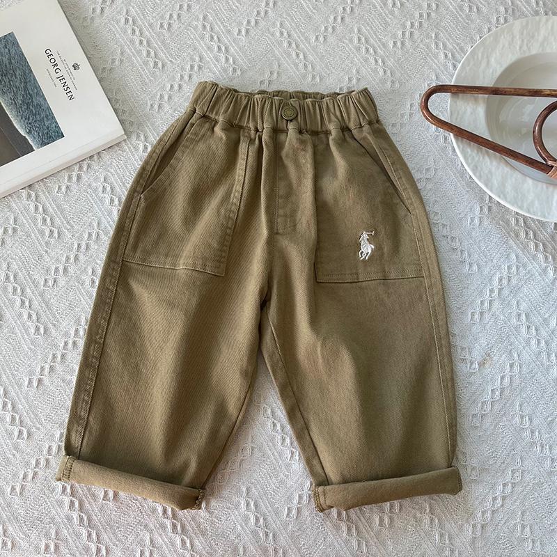 재고! 어린이 스트레치 면 캐주얼 바지 2024 가을 한국 자수 캐주얼 남성 및 여성 바지 포켓 바지