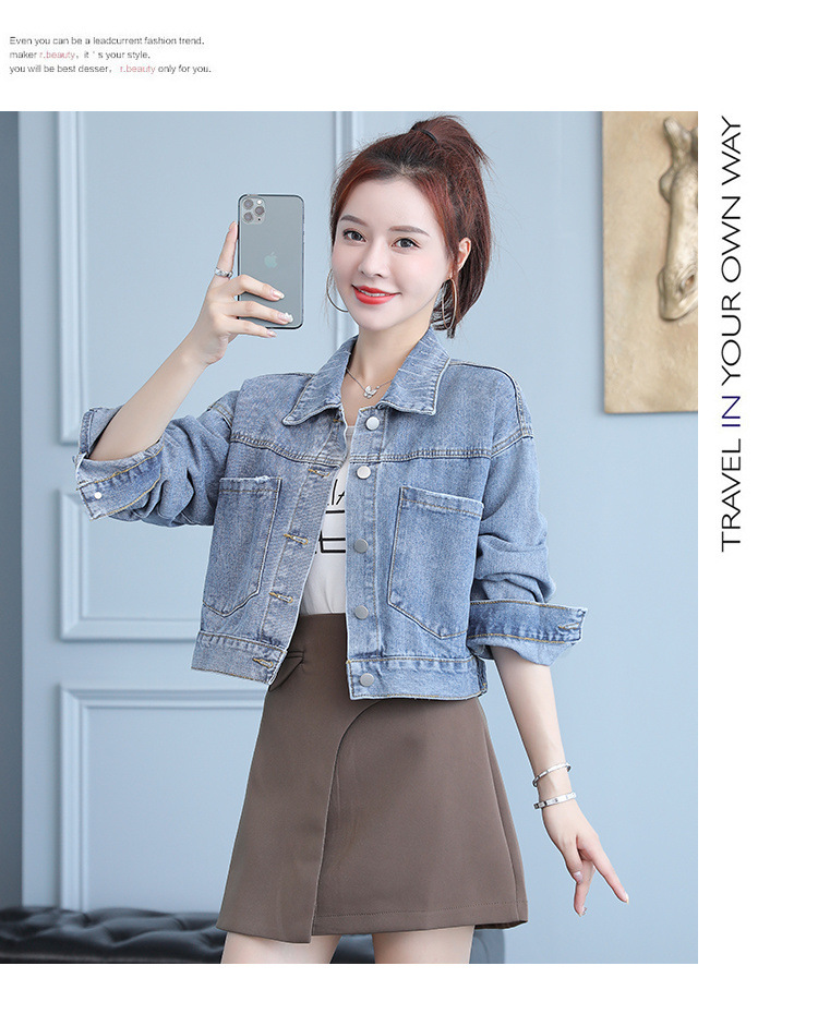 데님 코트 여성 2024 봄과 가을 새로운 도착 홍콩 스타일 패션 웨스턴 스타일 올 매치 슬림 룩 짧은 재킷 탑 아우터웨어