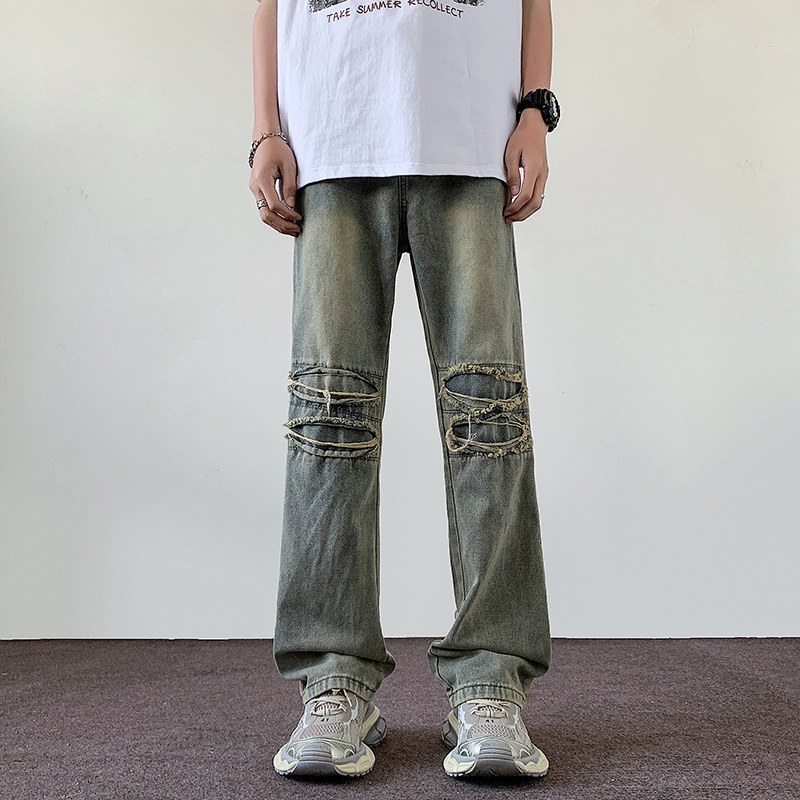 스트레이트 레그 청바지 남성과 여성의 2024 새로운 미국 스타일 하이 스트리트 루즈 스티칭 레트로 패션 브랜드 좁은 넓은 다리 바지 봄
