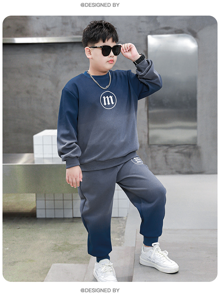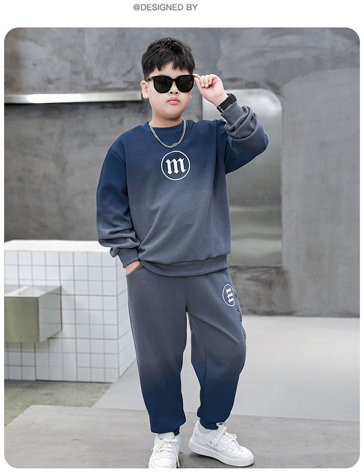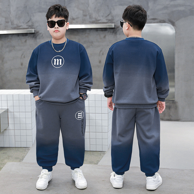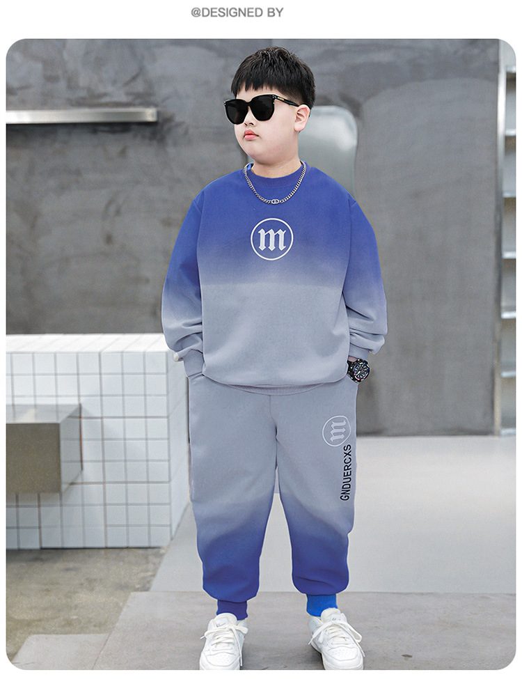 뚱뚱한 아동복 소년의 가을 의류 세트 2024 플러스 뚱뚱한 증가 스웨터 잘 생긴 운동복 아이들의 느슨한면 투피스 세트