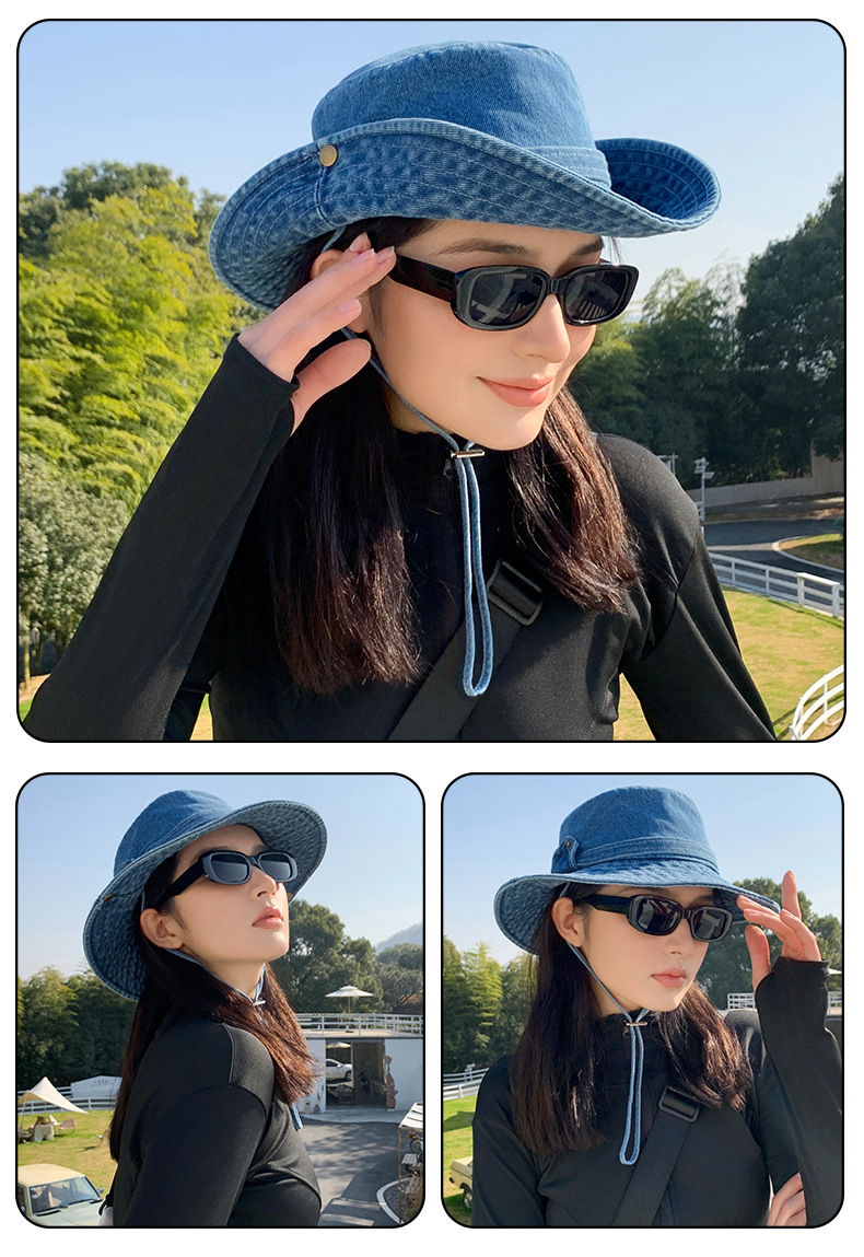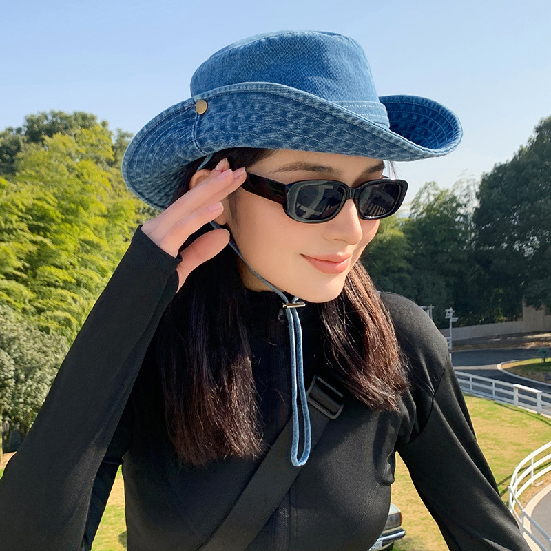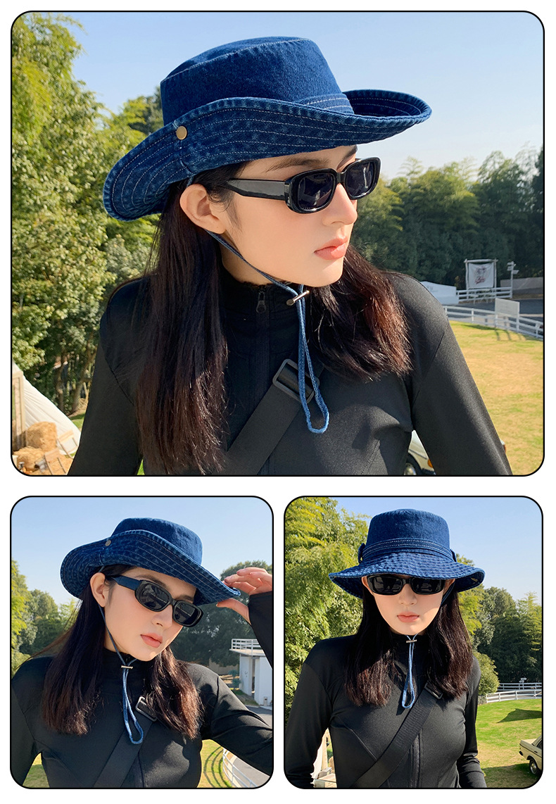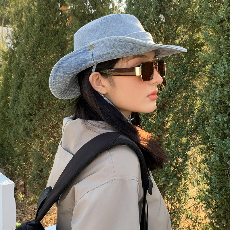 새로운 스타일 두꺼운 카우보이 모자 야외 하이킹 등산 모자 햇빛 썬 스크린 모자 여성 솔리드 컬러 등산 모자 트렌디 브랜드스토어 가기