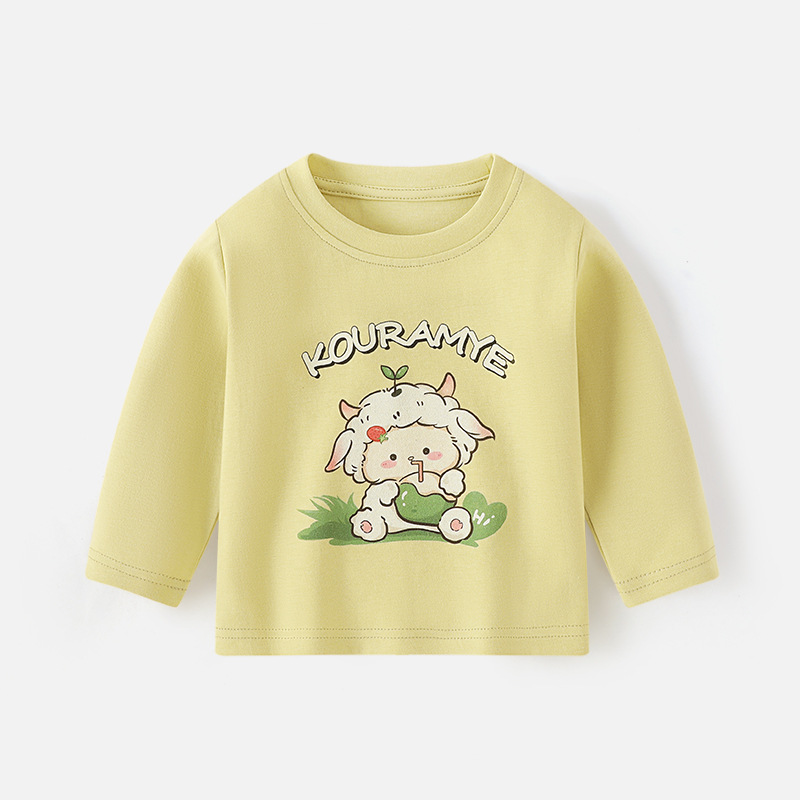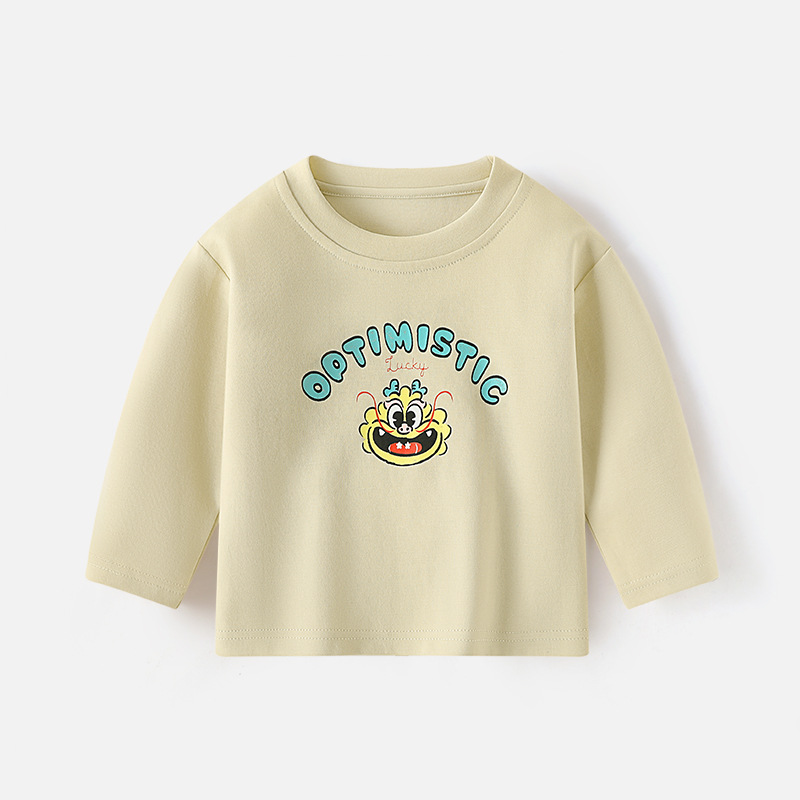 가을 어린이 만화 단색 티셔츠 새로운 캐주얼 따뜻한 긴 소매 상단 아동면 가을 옷 아동베이스 셔츠스토어 가기