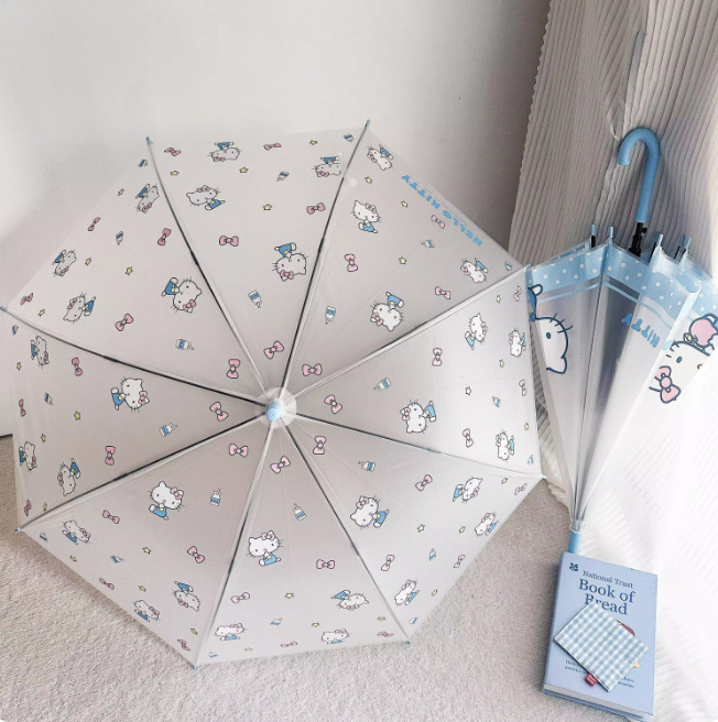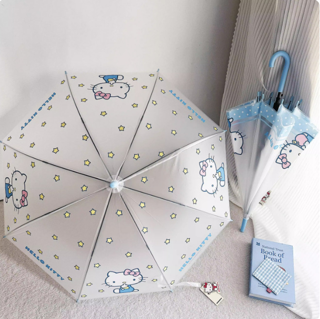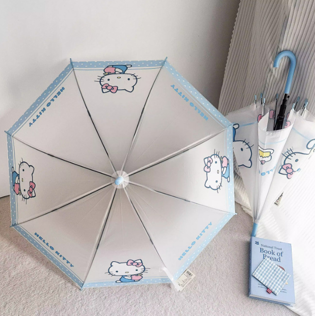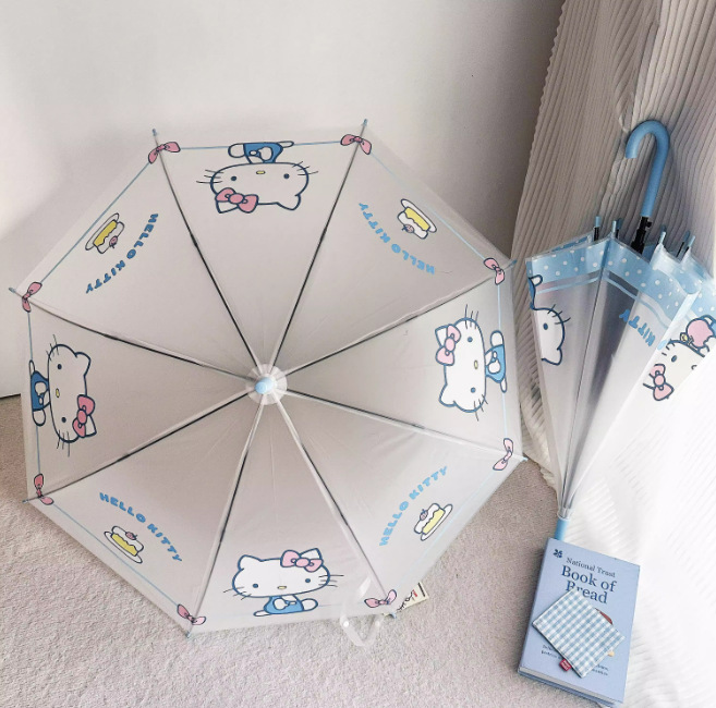 헬로키티 어린이용 자동 우산, 자동 개폐식 롱 핸들 우산, 2인용 자동 우산, 사진 촬영용 투명 우산, 로고 인쇄 가능 도매 우산스토어 가기