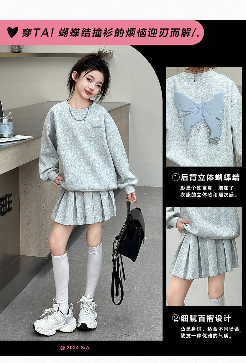 오렌지 타이거 여아 봄 가을 세트 2025 신상 아동 스웨트셔츠 짧은 치마 세트 중대형 아동 투피스 세트 아동복스토어 가기