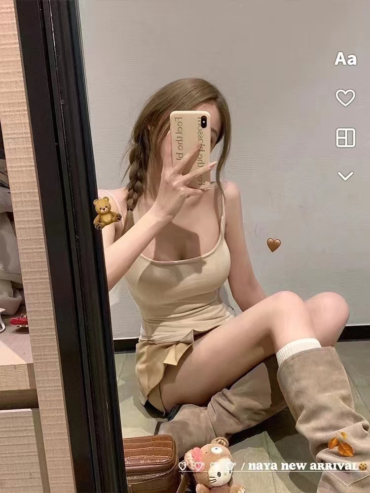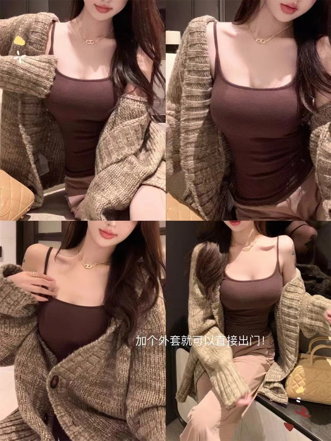 2087 가을 겨울 여성용 따뜻한 조끼, 가슴 패드가 있는 기모 서스펜더, 슬림핏, 단색 다용도 탑스토어 가기