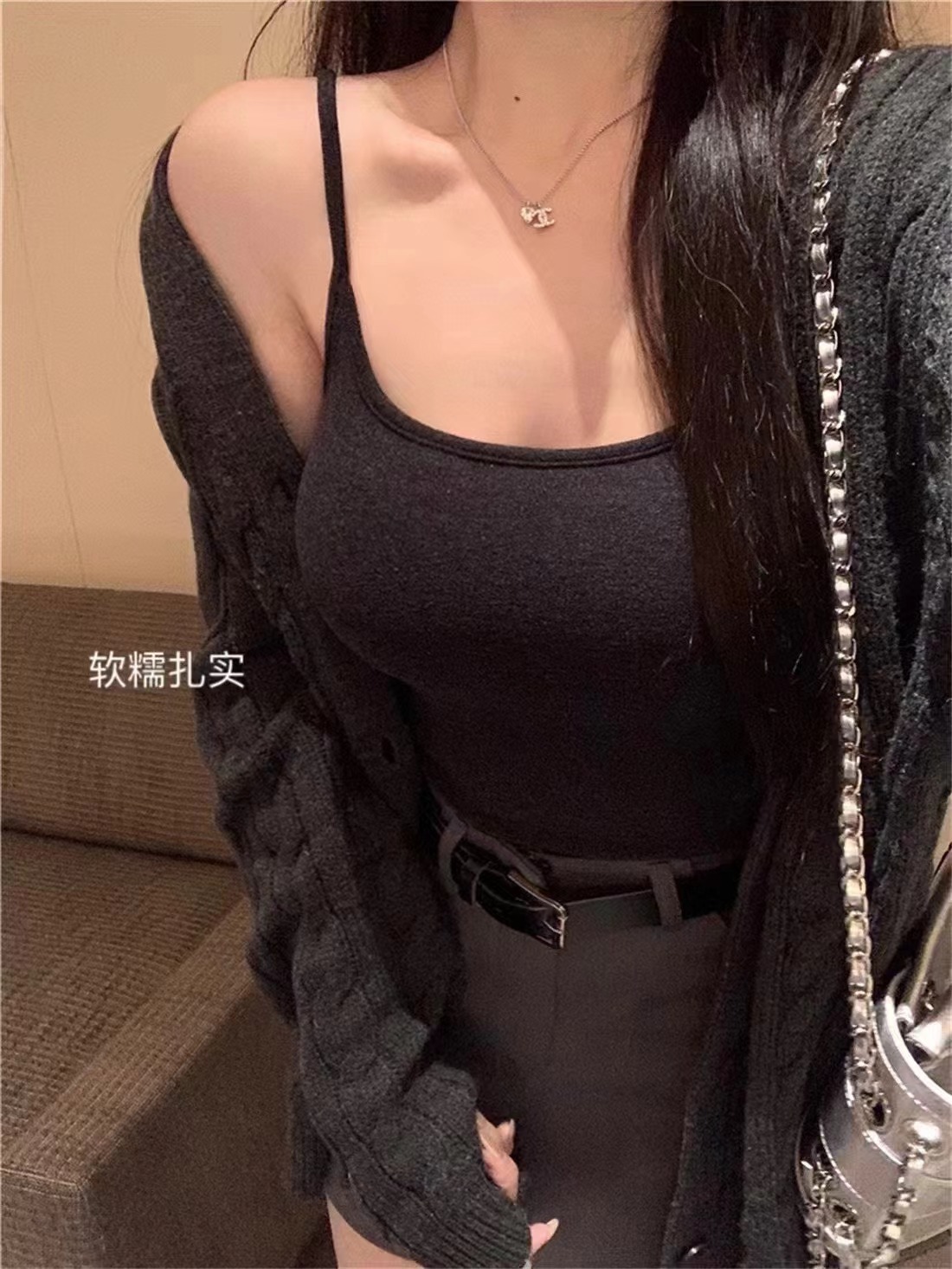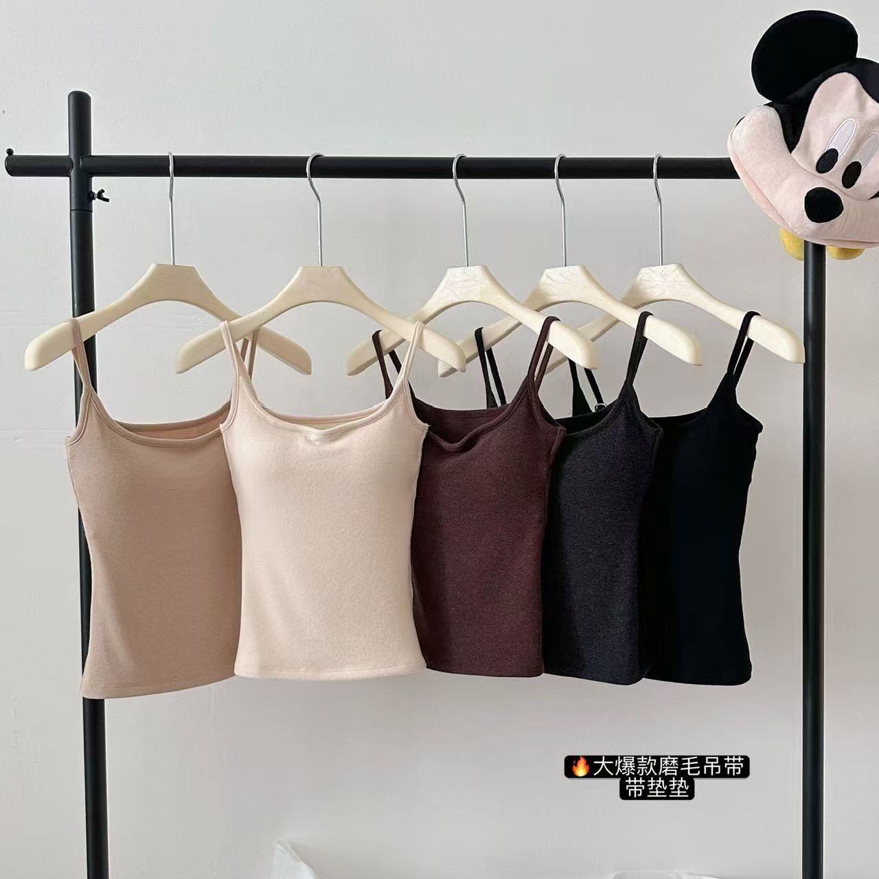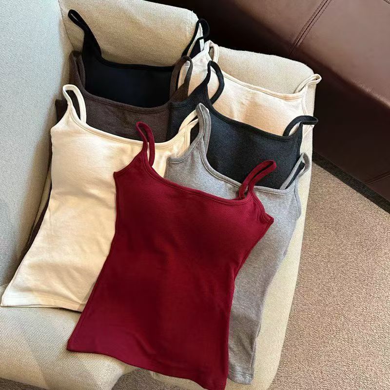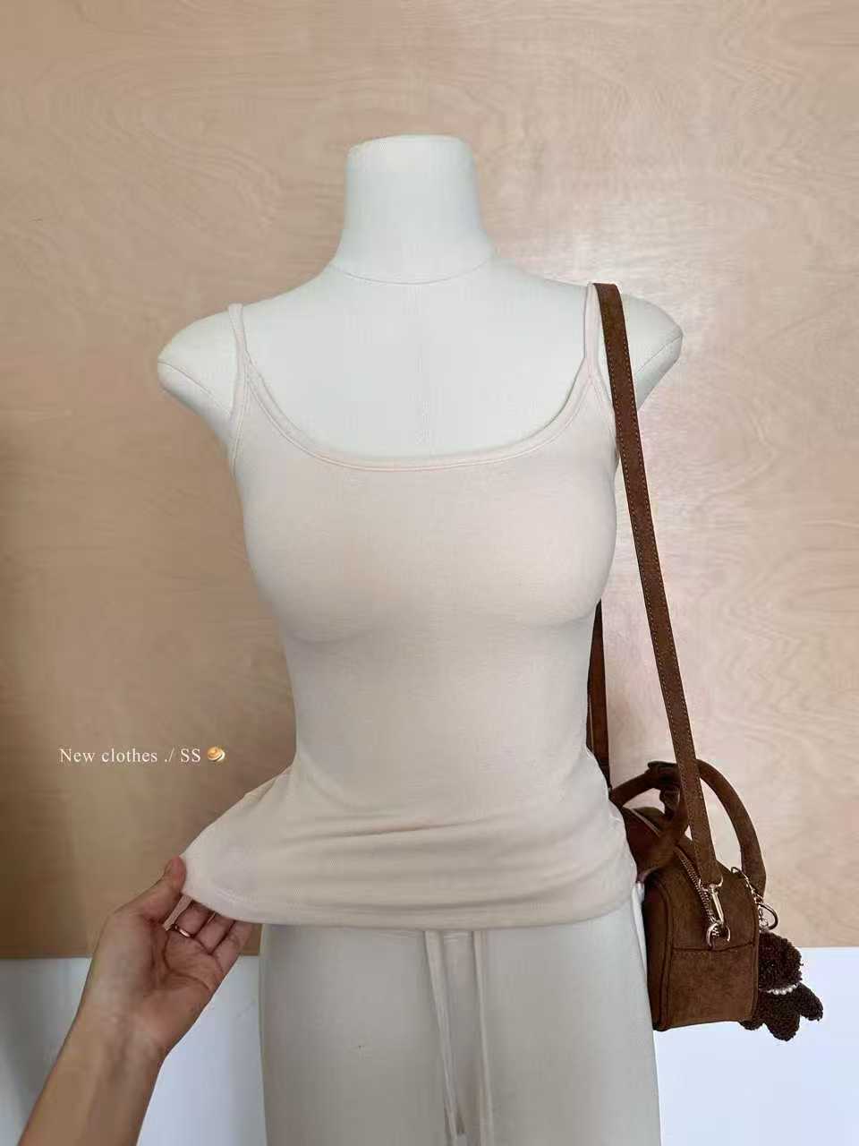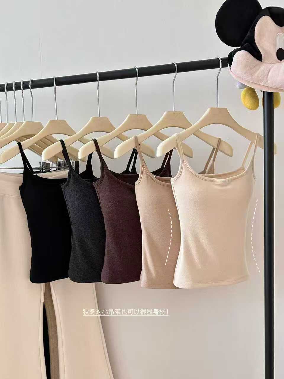 2087 가을 겨울 여성용 따뜻한 조끼, 가슴 패드가 있는 기모 서스펜더, 슬림핏, 단색 다용도 탑