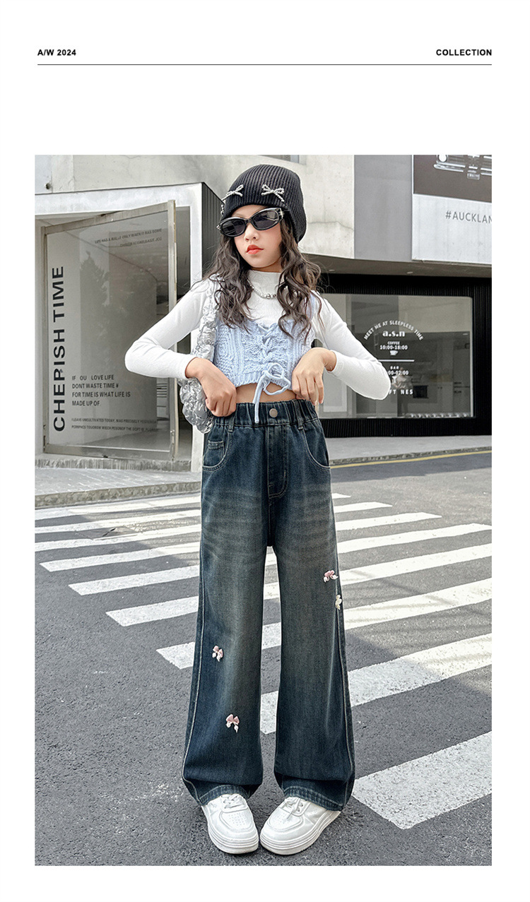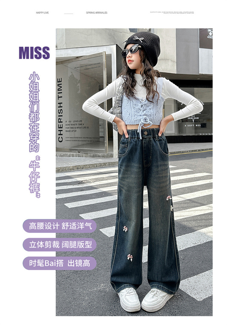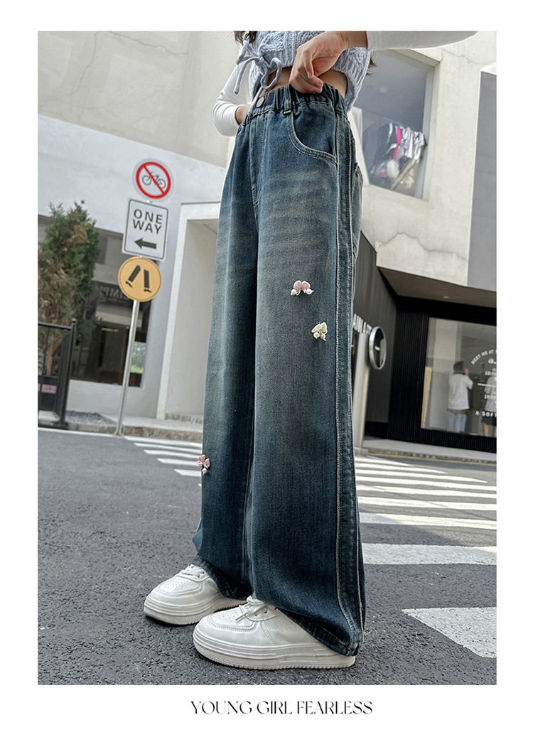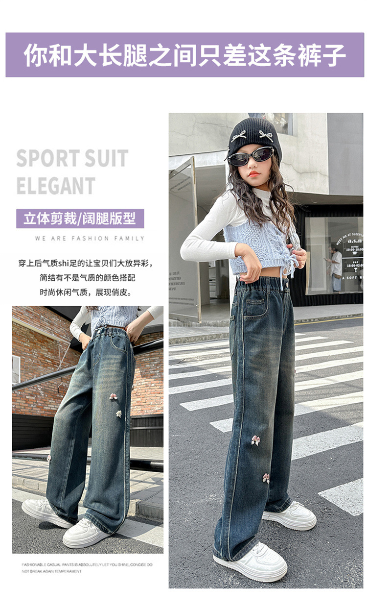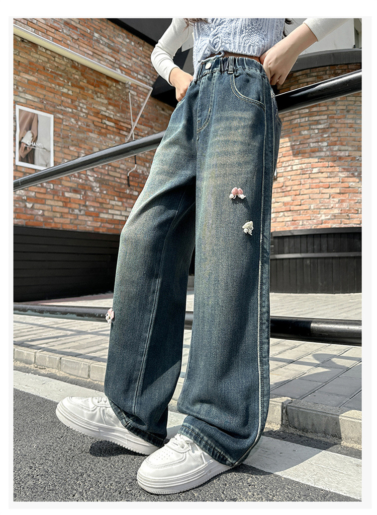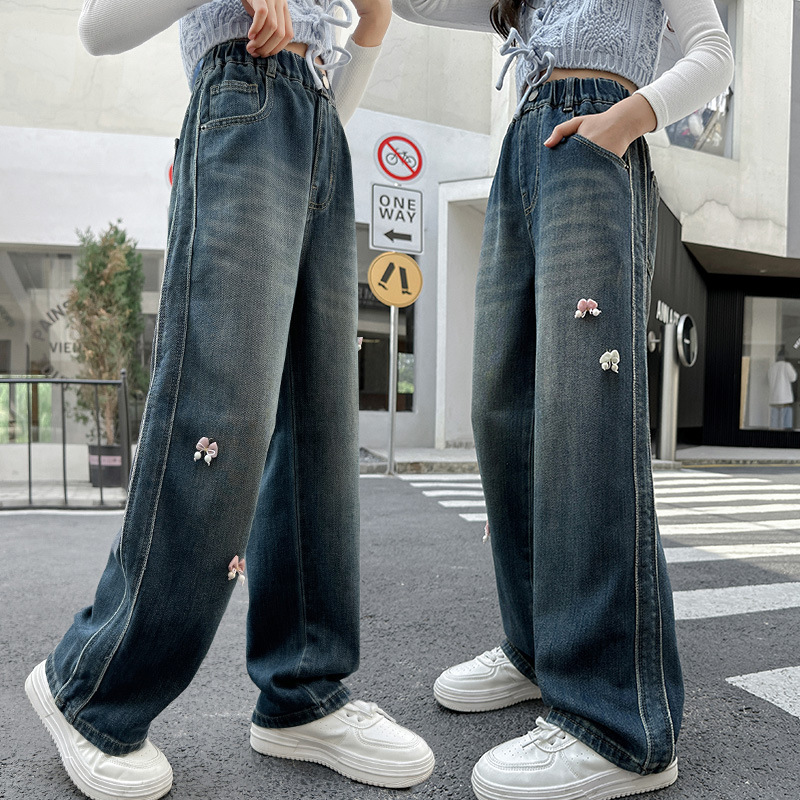 대외 무역 어린이 바지 소녀 3 차원 활 데님 넓은 다리 바지 가을 새로운 한국 스타일 중대형 어린이 캐주얼 청바지스토어 가기
