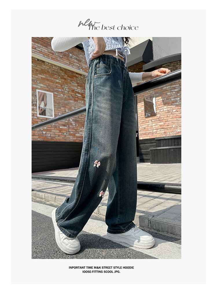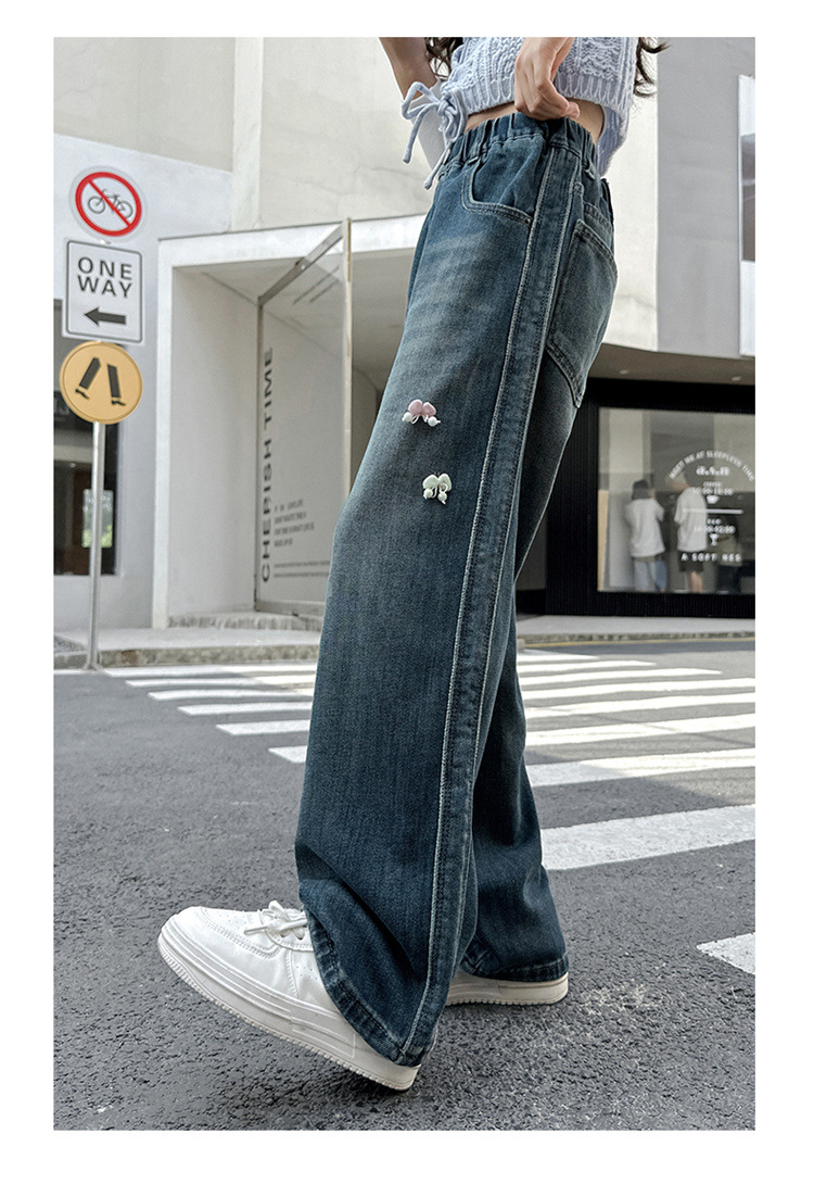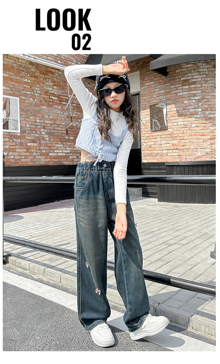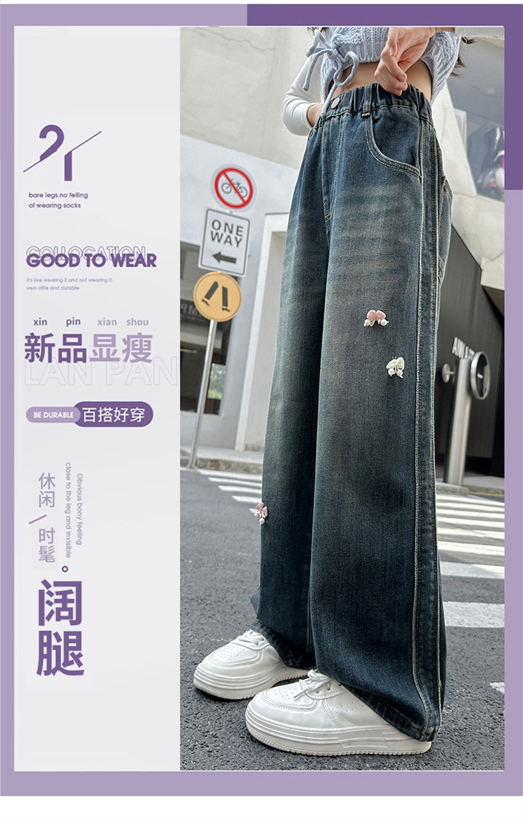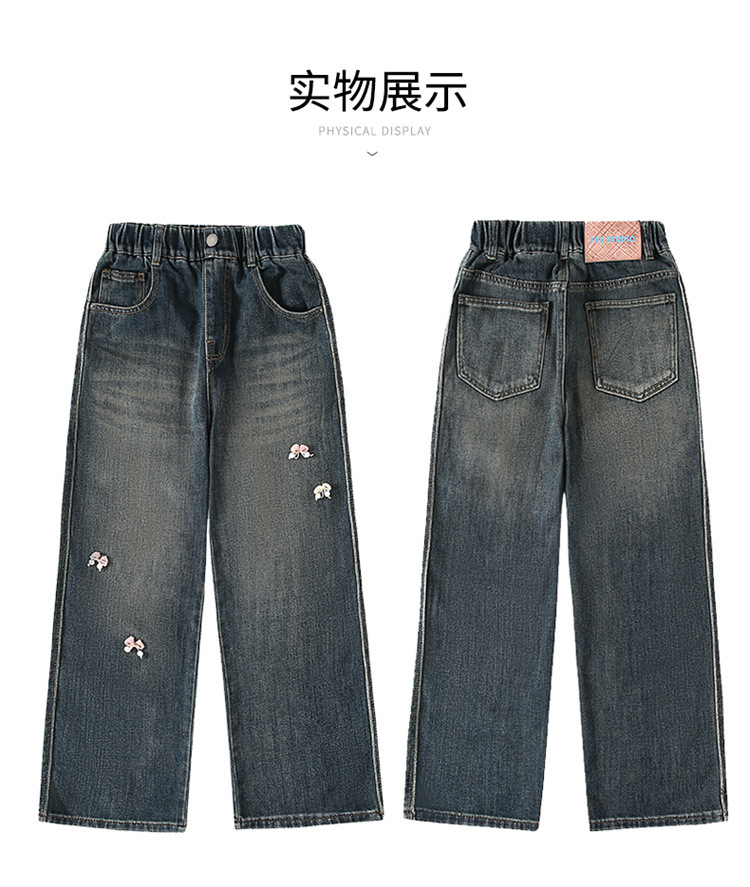 대외 무역 어린이 바지 소녀 3 차원 활 데님 넓은 다리 바지 가을 새로운 한국 스타일 중대형 어린이 캐주얼 청바지스토어 가기