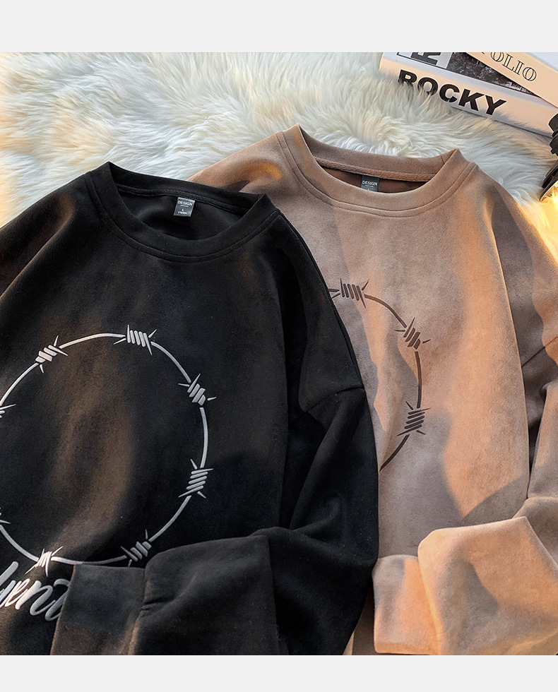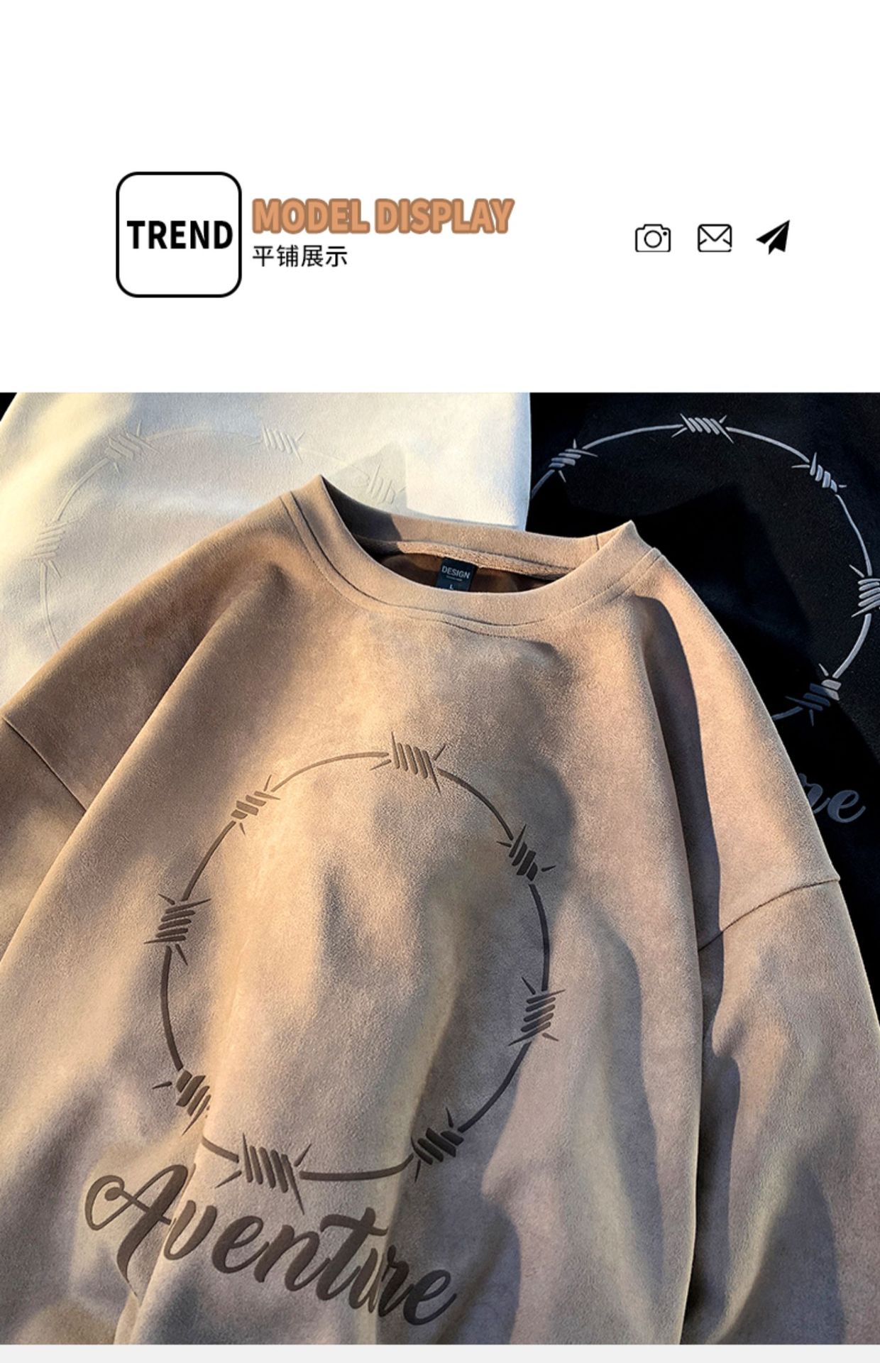 미국 스웨이드 스웨터 남성 봄과 가을 유럽과 미국 패션 브랜드 올 매치 틈새 하이 엔드 라운드 넥 캐주얼 탑 의류스토어 가기