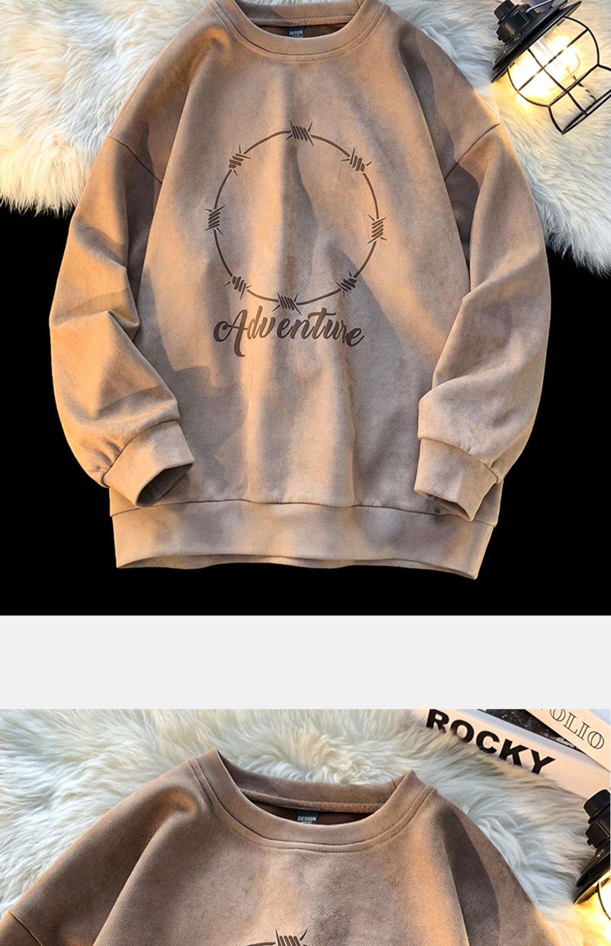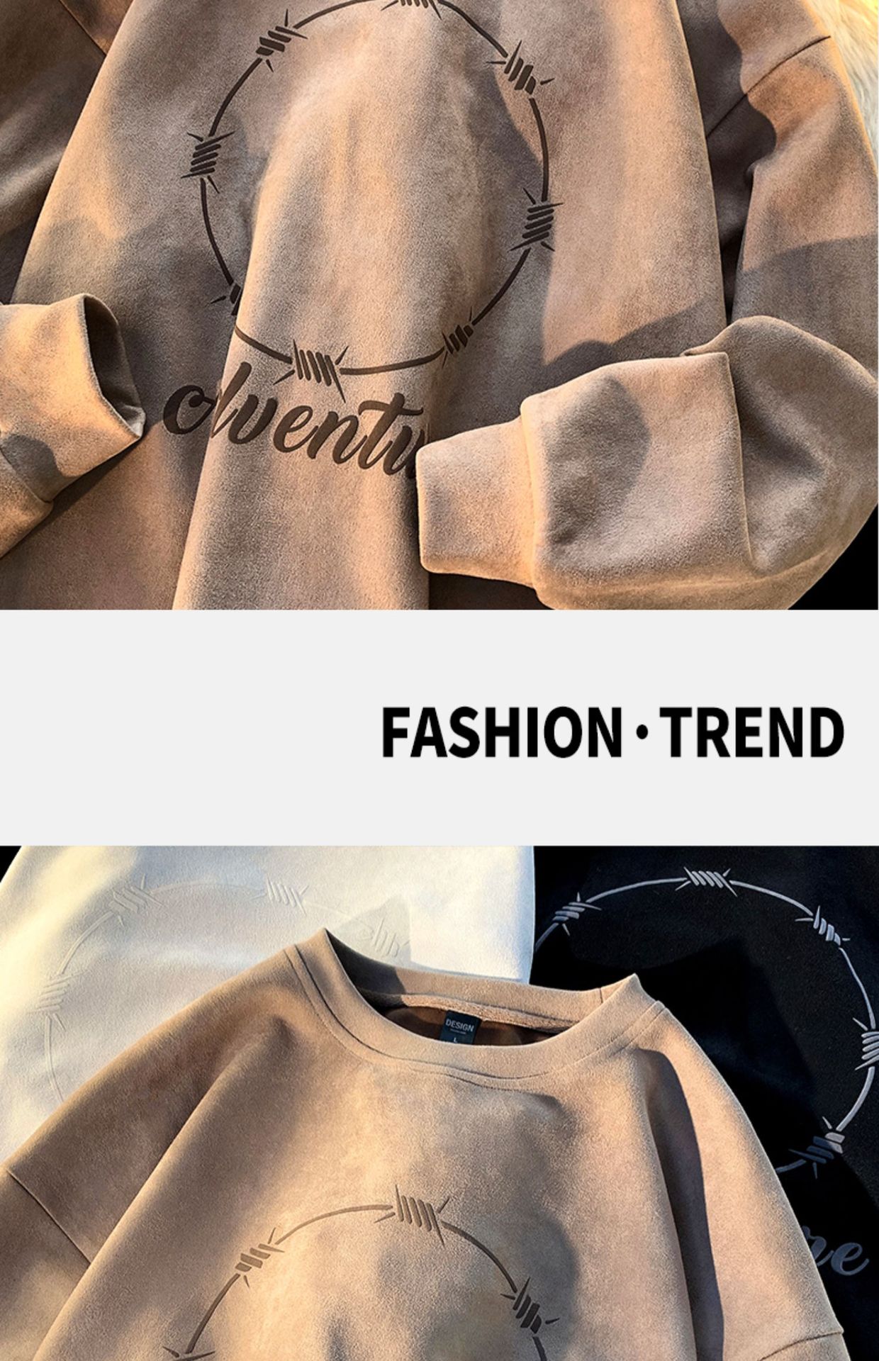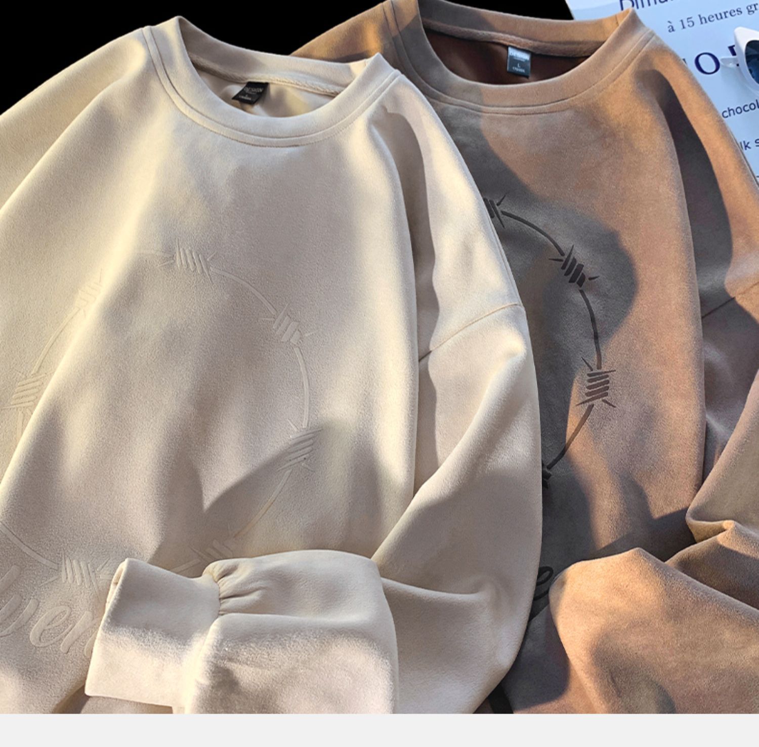미국 스웨이드 스웨터 남성 봄과 가을 유럽과 미국 패션 브랜드 올 매치 틈새 하이 엔드 라운드 넥 캐주얼 탑 의류