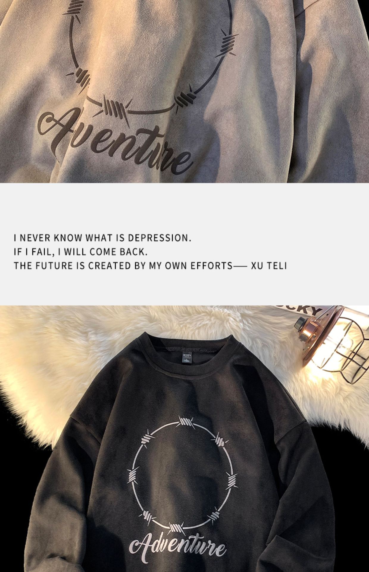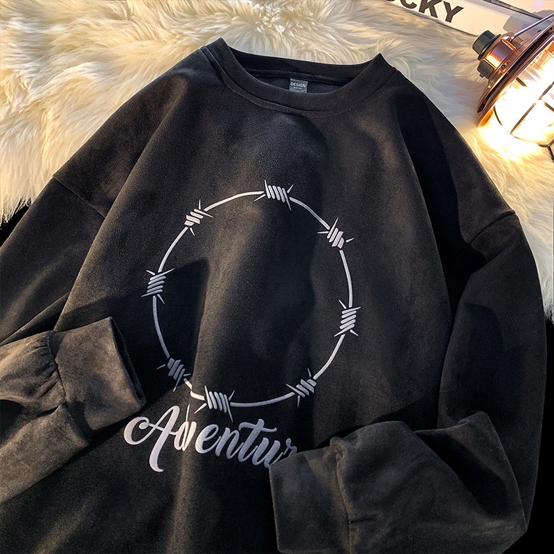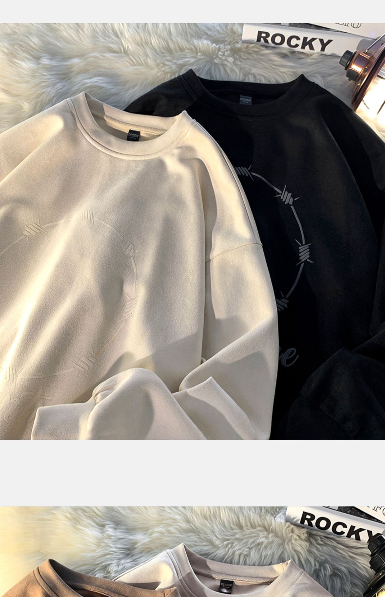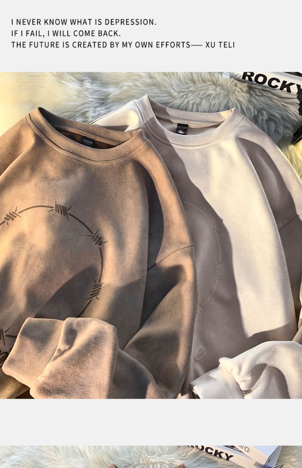 미국 스웨이드 스웨터 남성 봄과 가을 유럽과 미국 패션 브랜드 올 매치 틈새 하이 엔드 라운드 넥 캐주얼 탑 의류