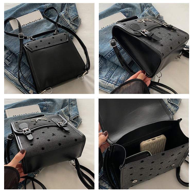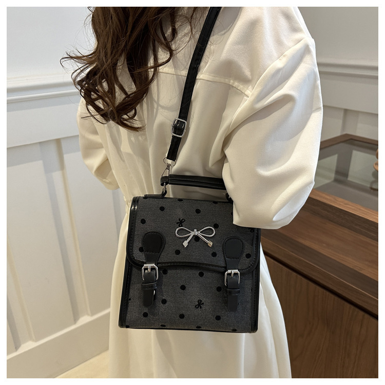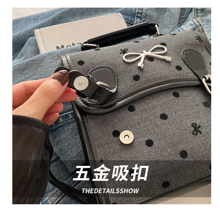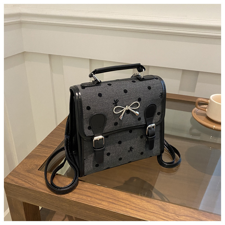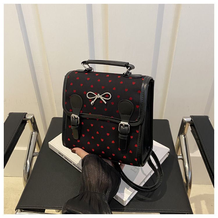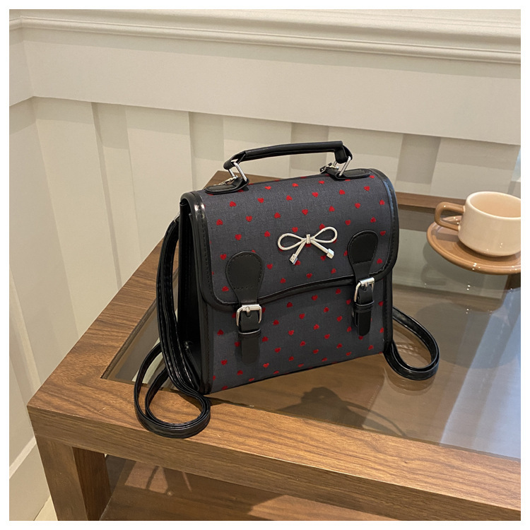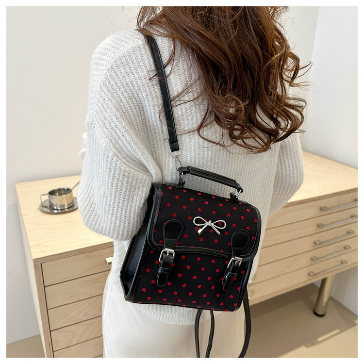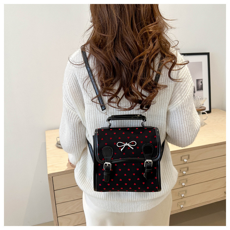 2024新款学院风波点蝴蝶结学院风夏季休闲爱心旅行手提双肩包包女
