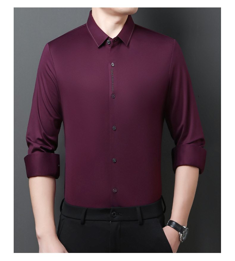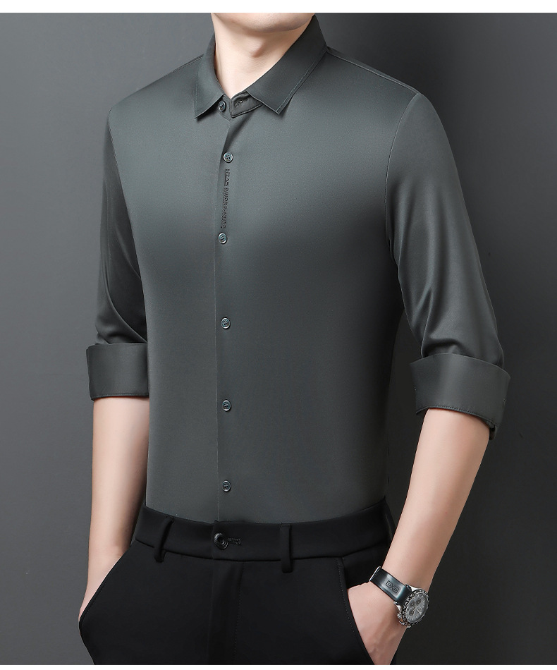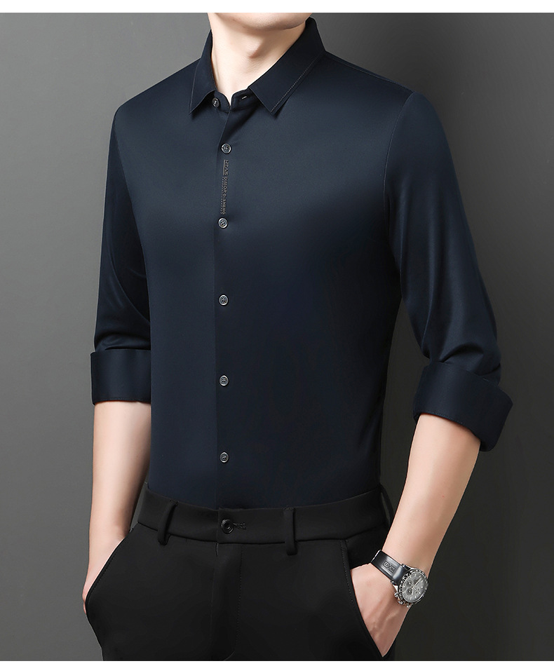 봄과 가을 새로운 남성 하이 엔드 비 마킹 핫 스탬핑 긴팔 셔츠 사업 원피스 젊고 중년을위한 고급 양 울 탑