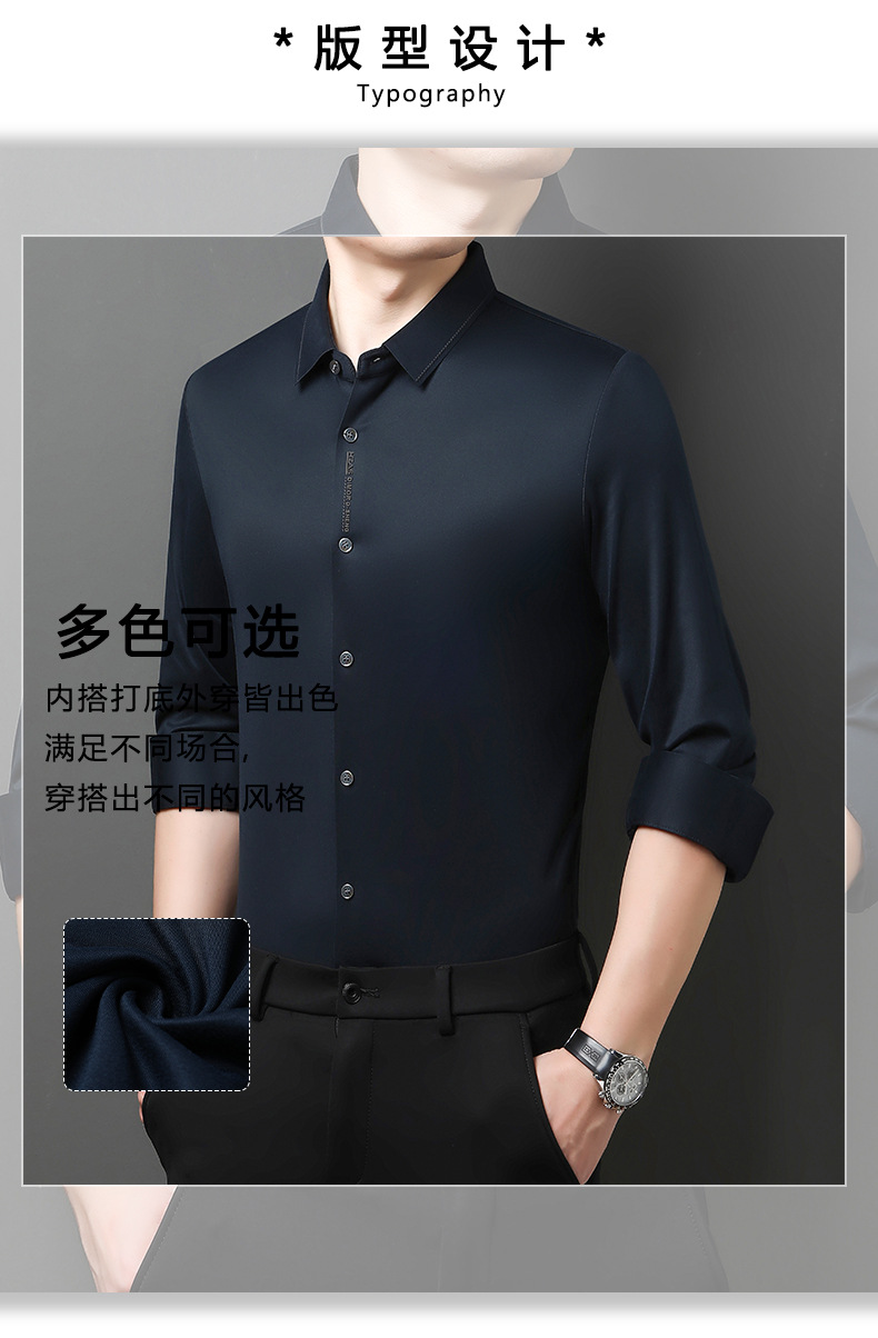 봄과 가을 새로운 남성 하이 엔드 비 마킹 핫 스탬핑 긴팔 셔츠 사업 원피스 젊고 중년을위한 고급 양 울 탑스토어 가기