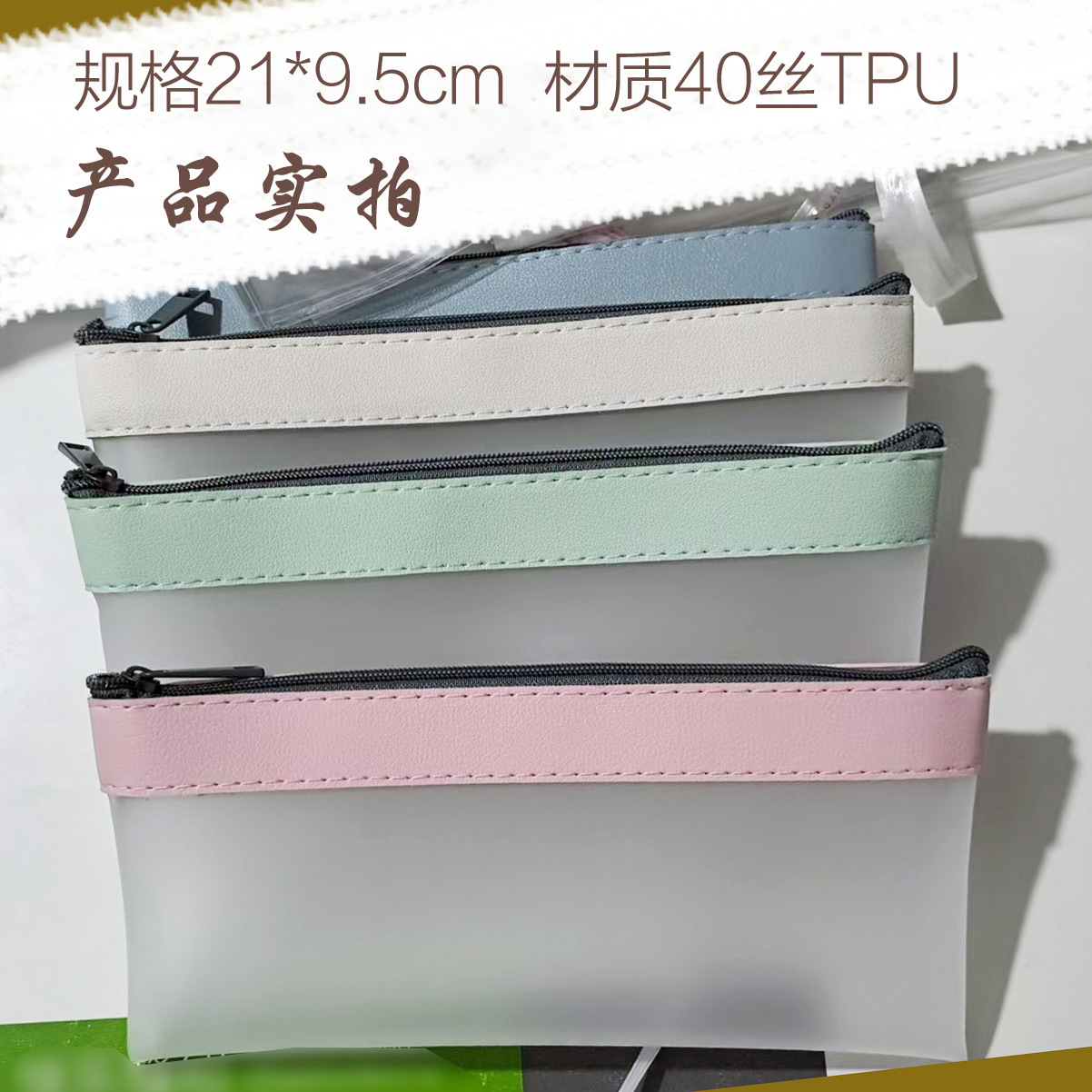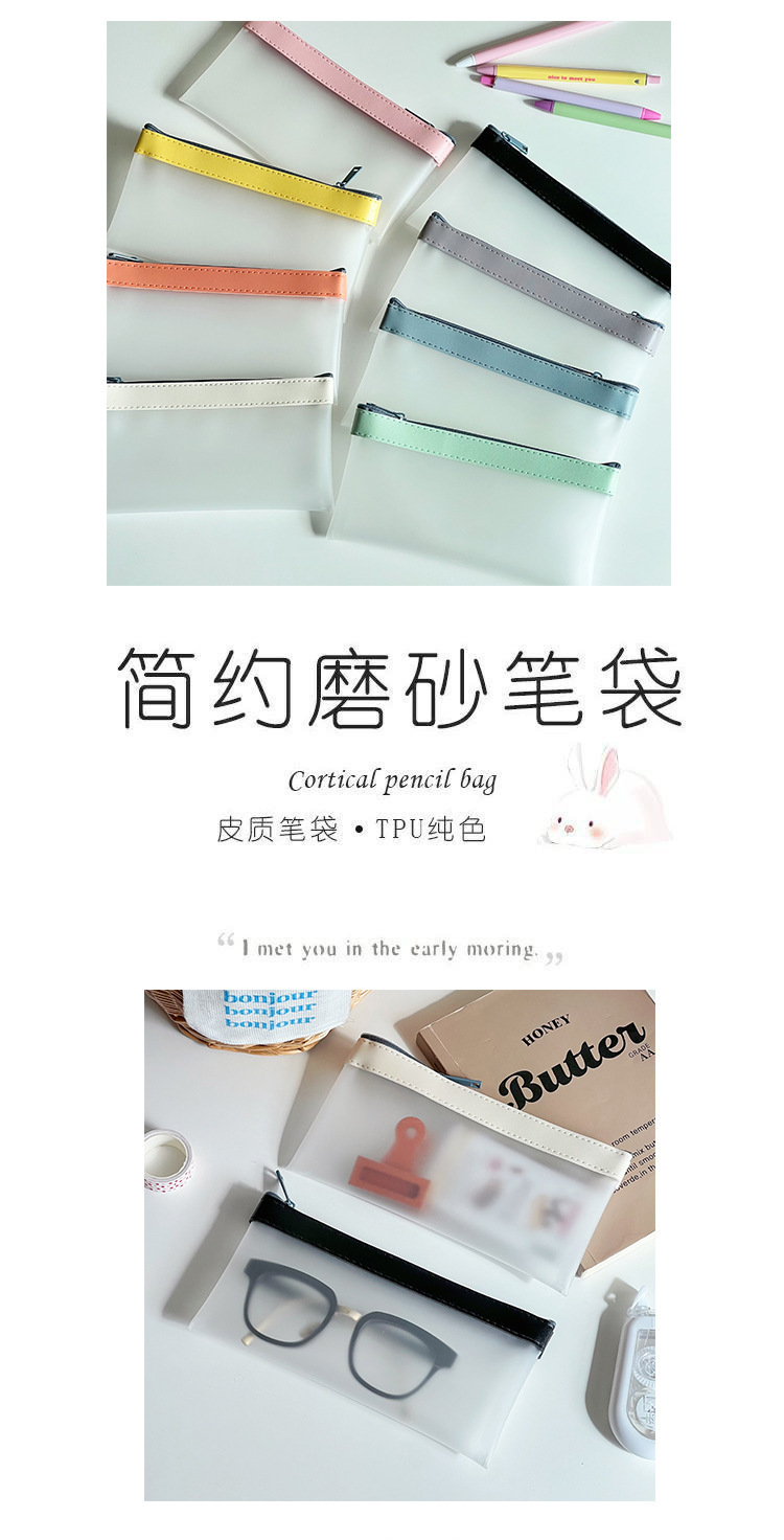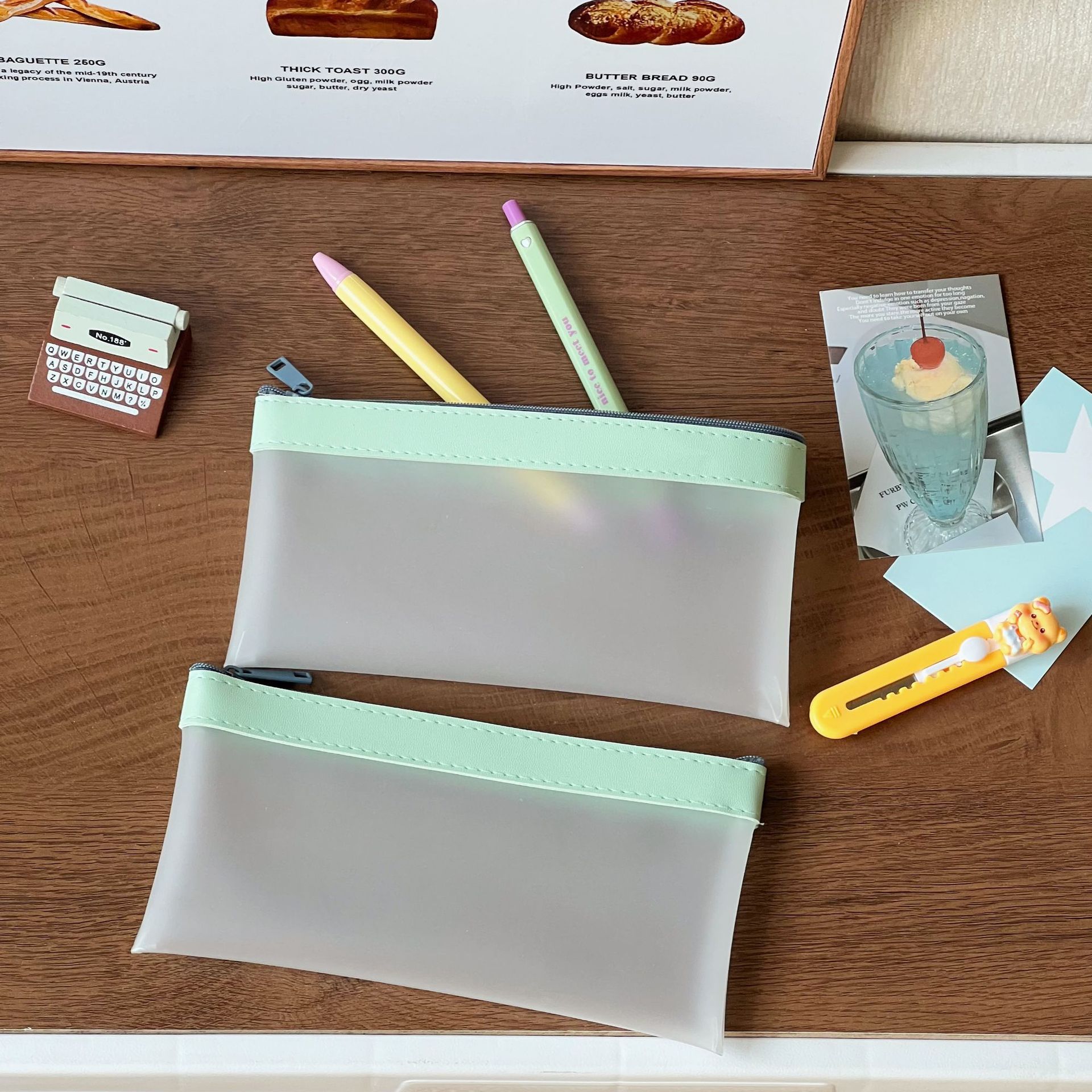 한국 스타일 간단한 TPU 서리 연필 케이스 중학교는 지퍼가 달린 대용량 학생 문구 시험 보관 가방 동전 지갑
