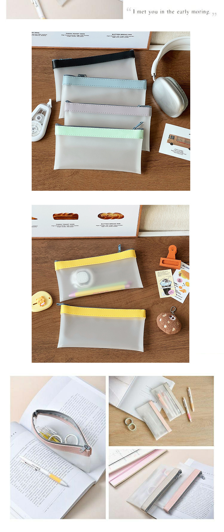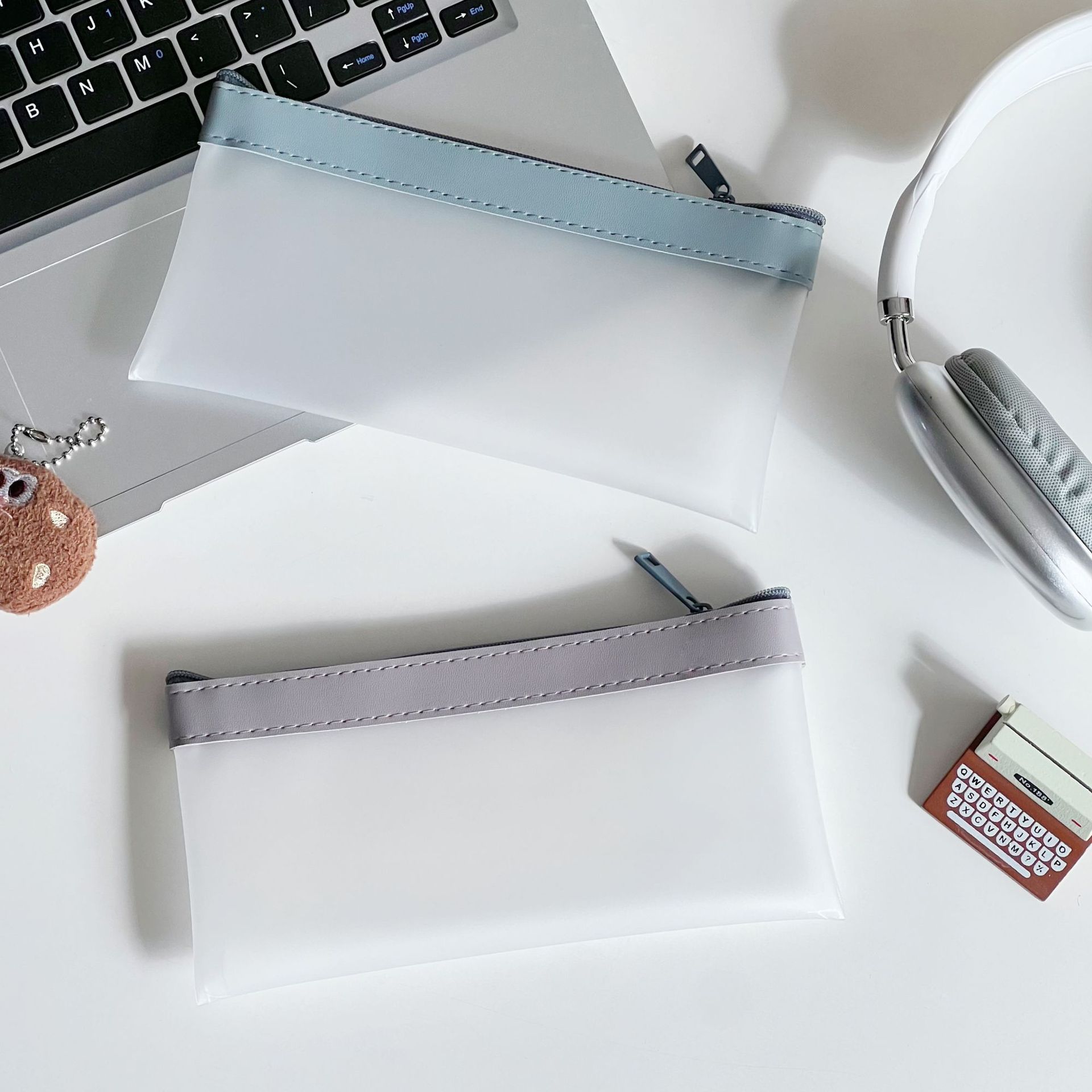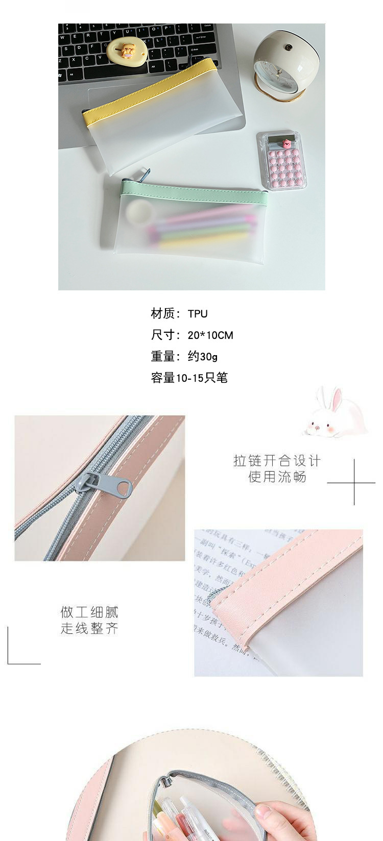 한국 스타일 간단한 TPU 서리 연필 케이스 중학교는 지퍼가 달린 대용량 학생 문구 시험 보관 가방 동전 지갑