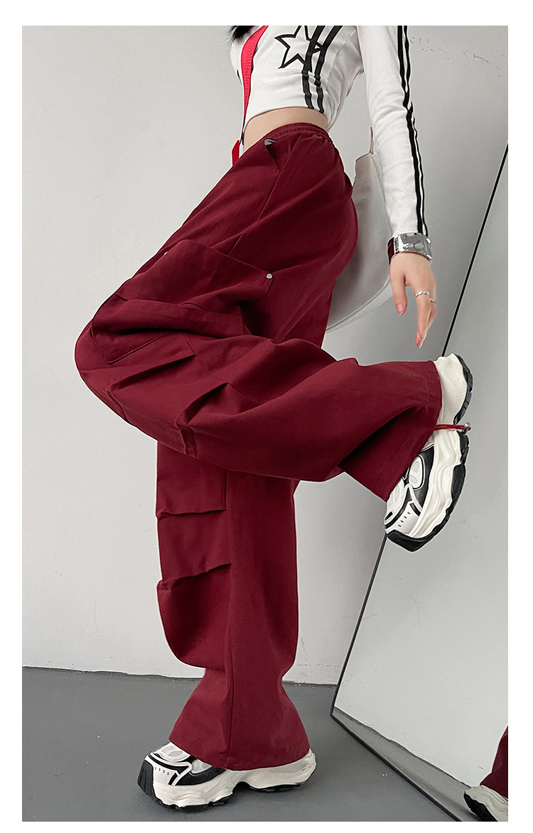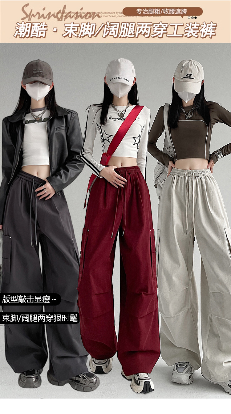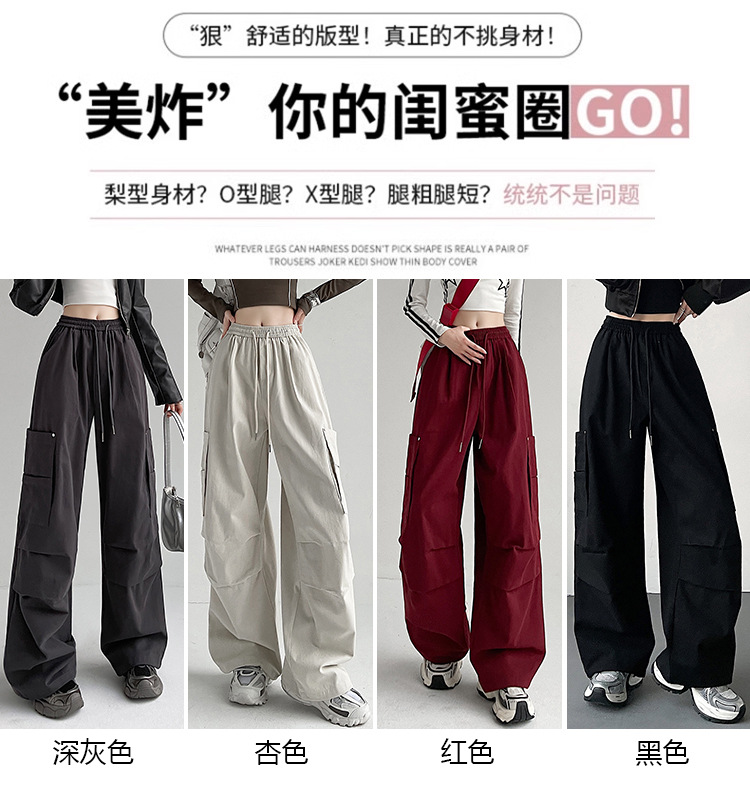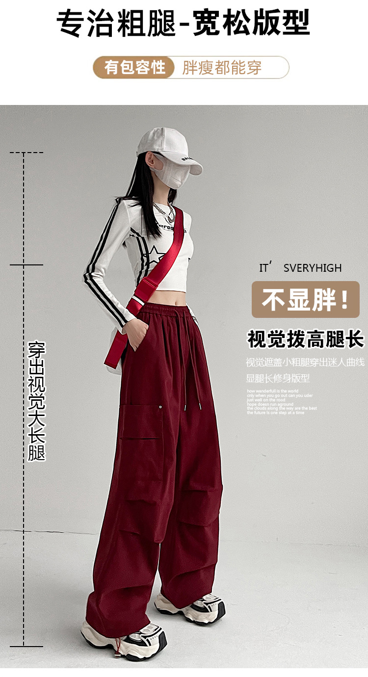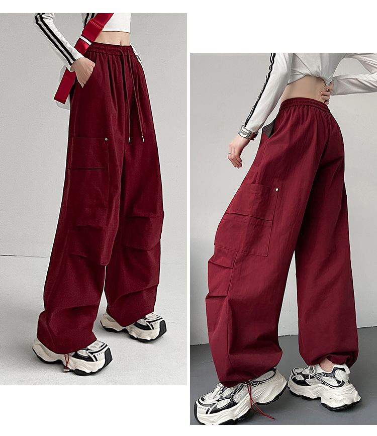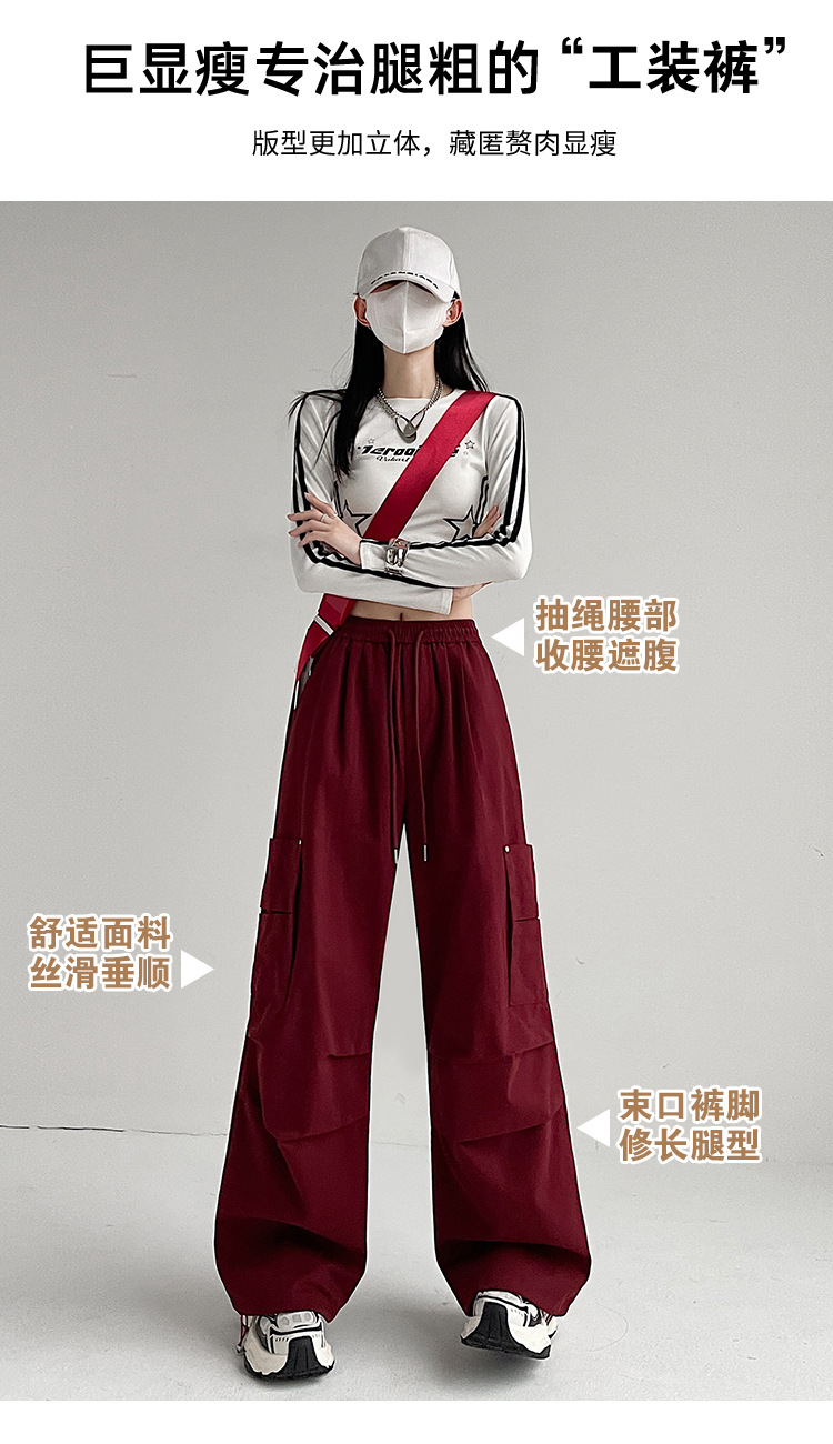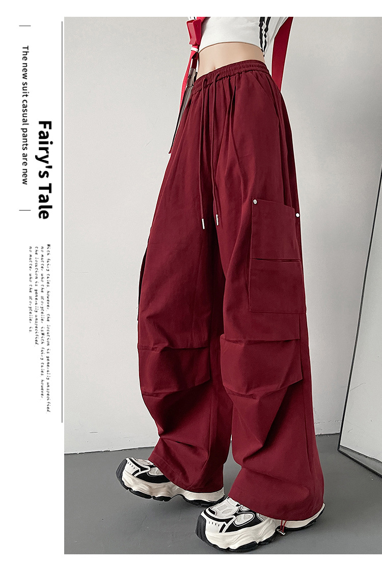 가을 2024 새로운 앙카라 빨간화물 바지 여성 캐주얼 스포츠 긴 바지 느슨한 야외 하이킹 바지스토어 가기