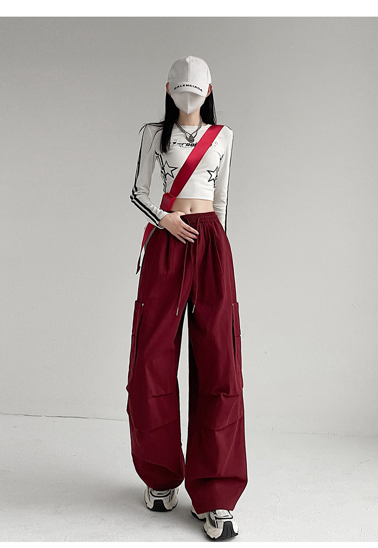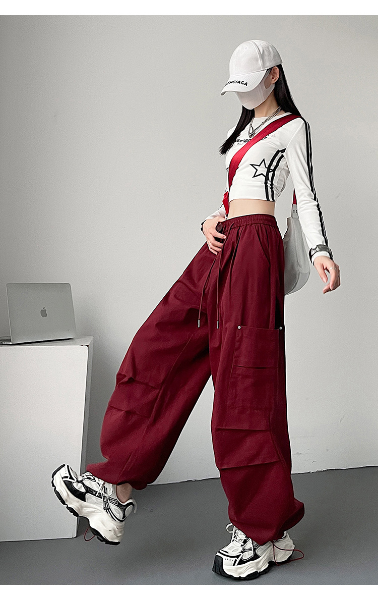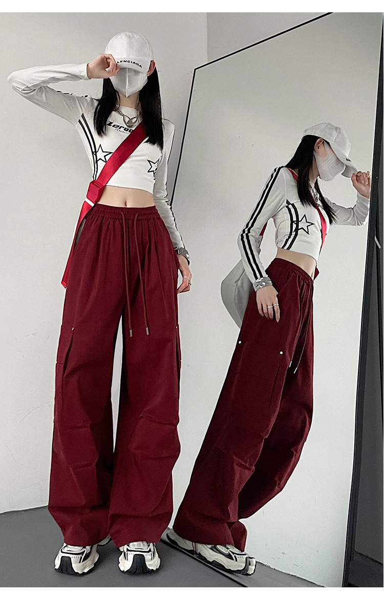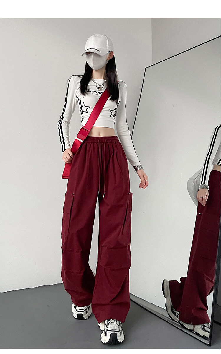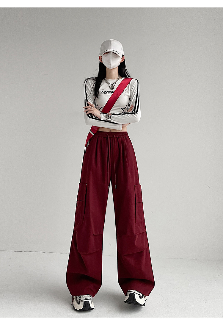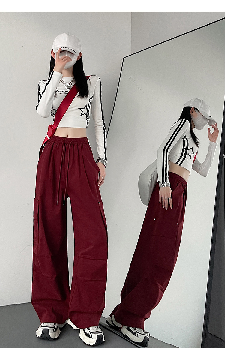 가을 2024 새로운 앙카라 빨간화물 바지 여성 캐주얼 스포츠 긴 바지 느슨한 야외 하이킹 바지스토어 가기