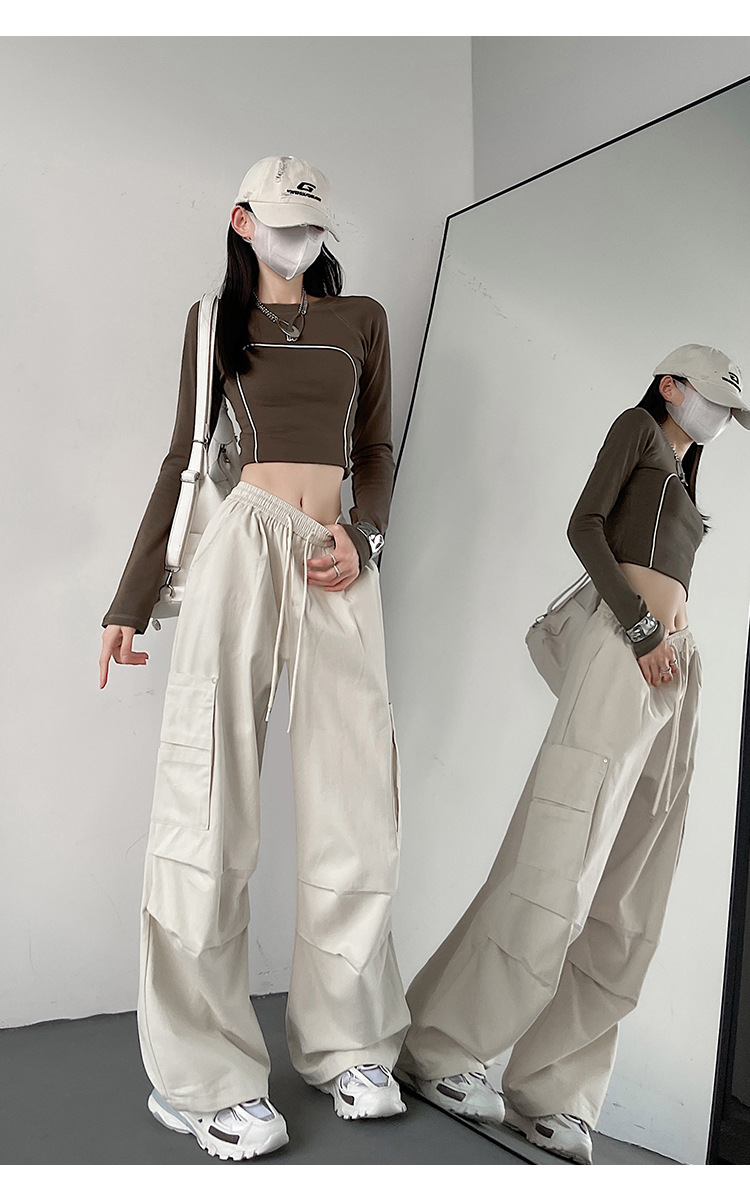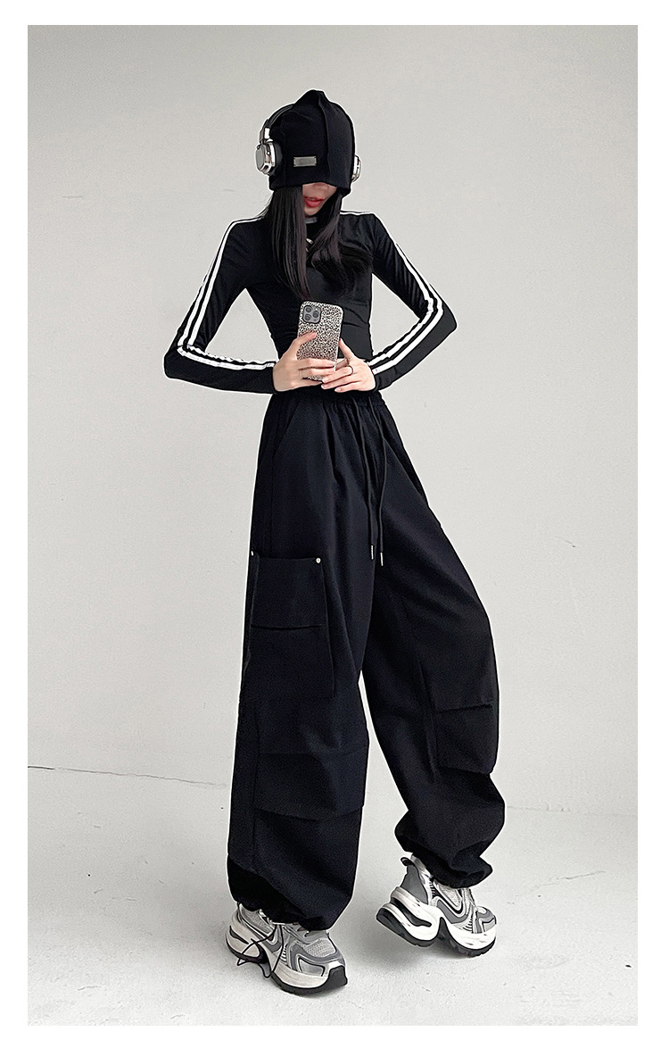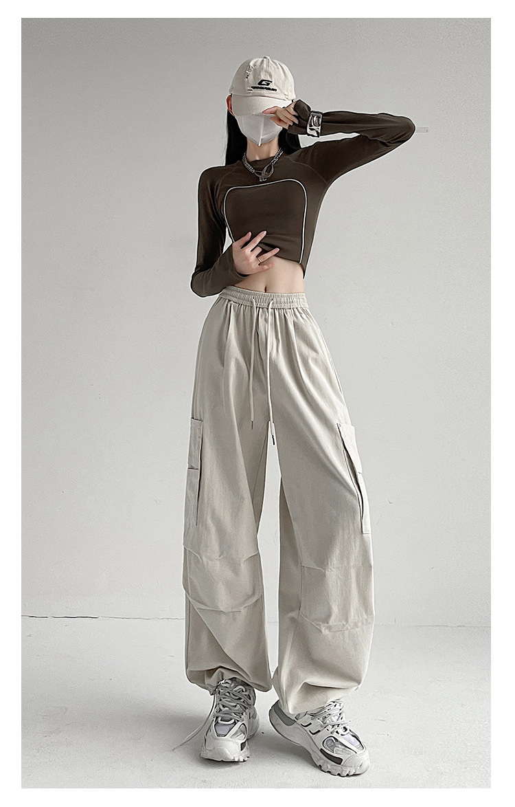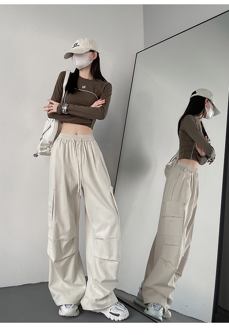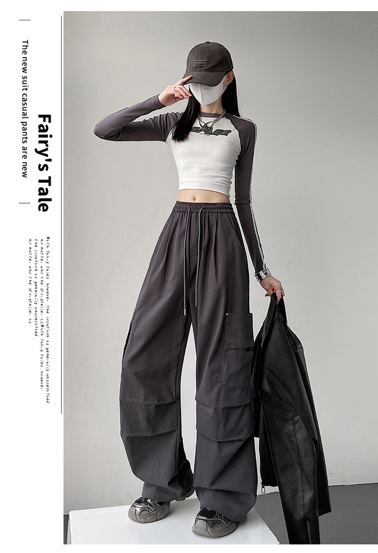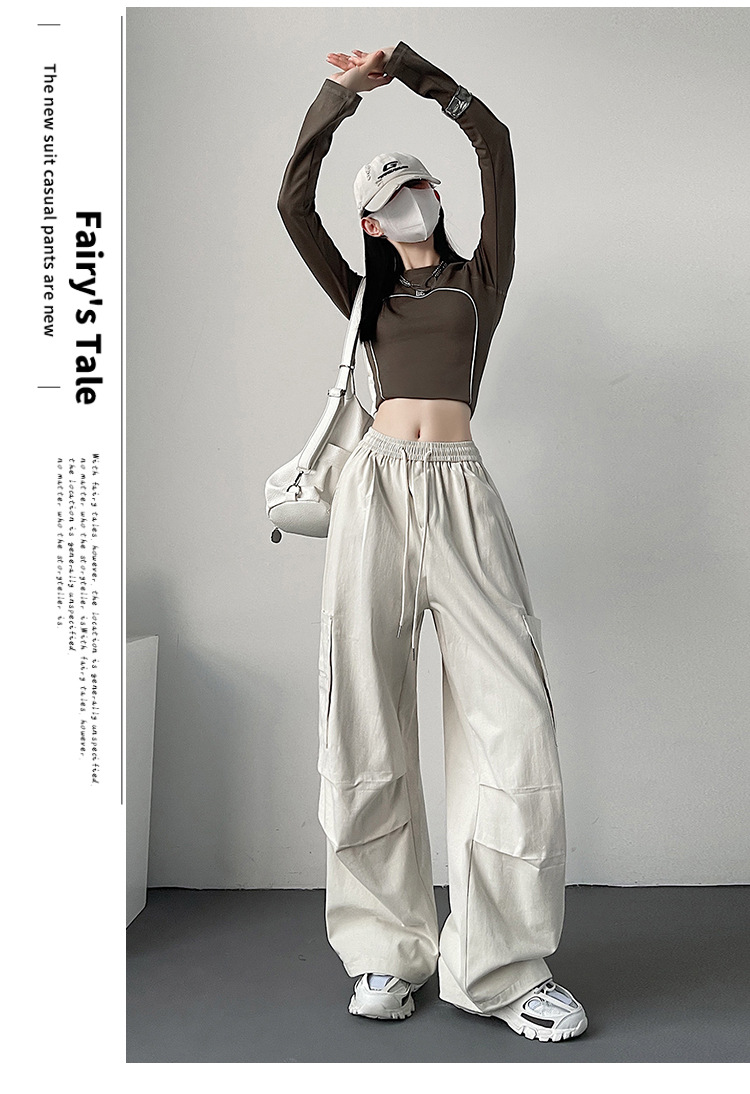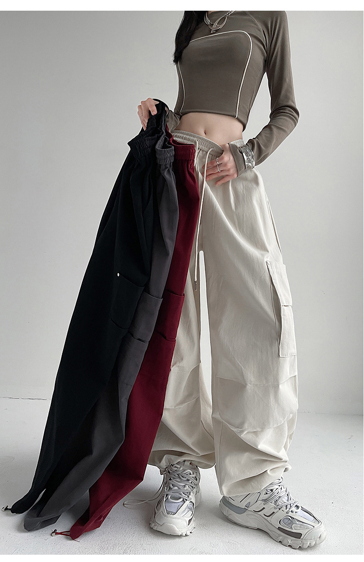 가을 2024 새로운 앙카라 빨간화물 바지 여성 캐주얼 스포츠 긴 바지 느슨한 야외 하이킹 바지스토어 가기