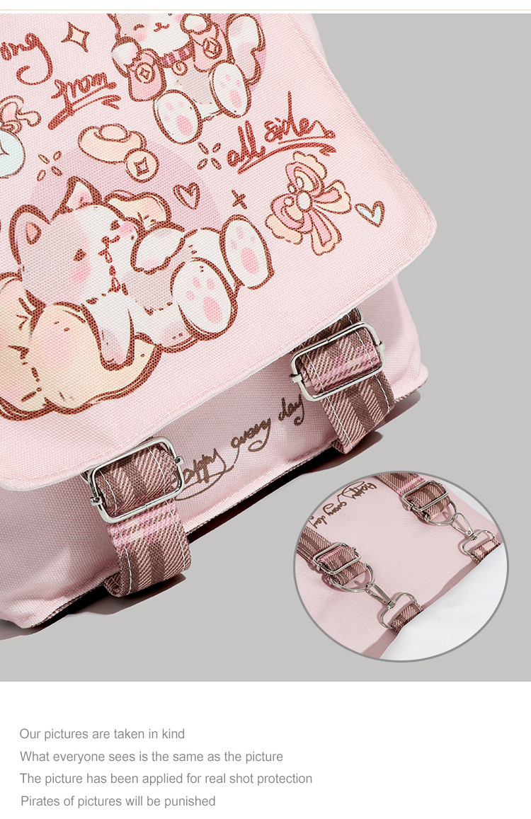 CHARHP & KEJNT 공식 정품 학생 파티 학교 가방 대용량 귀여운 캔버스 배낭 캐주얼 배낭