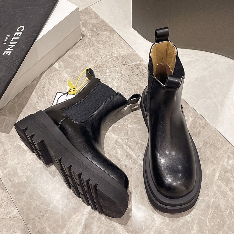 정품 가죽 연기 튜브 부츠 여자 첼시 부츠 쇼트 부츠 2024 가을 및 겨울 새로운 두꺼운 단독 증가 영국 마틴 부츠 싱글 부츠스토어 가기