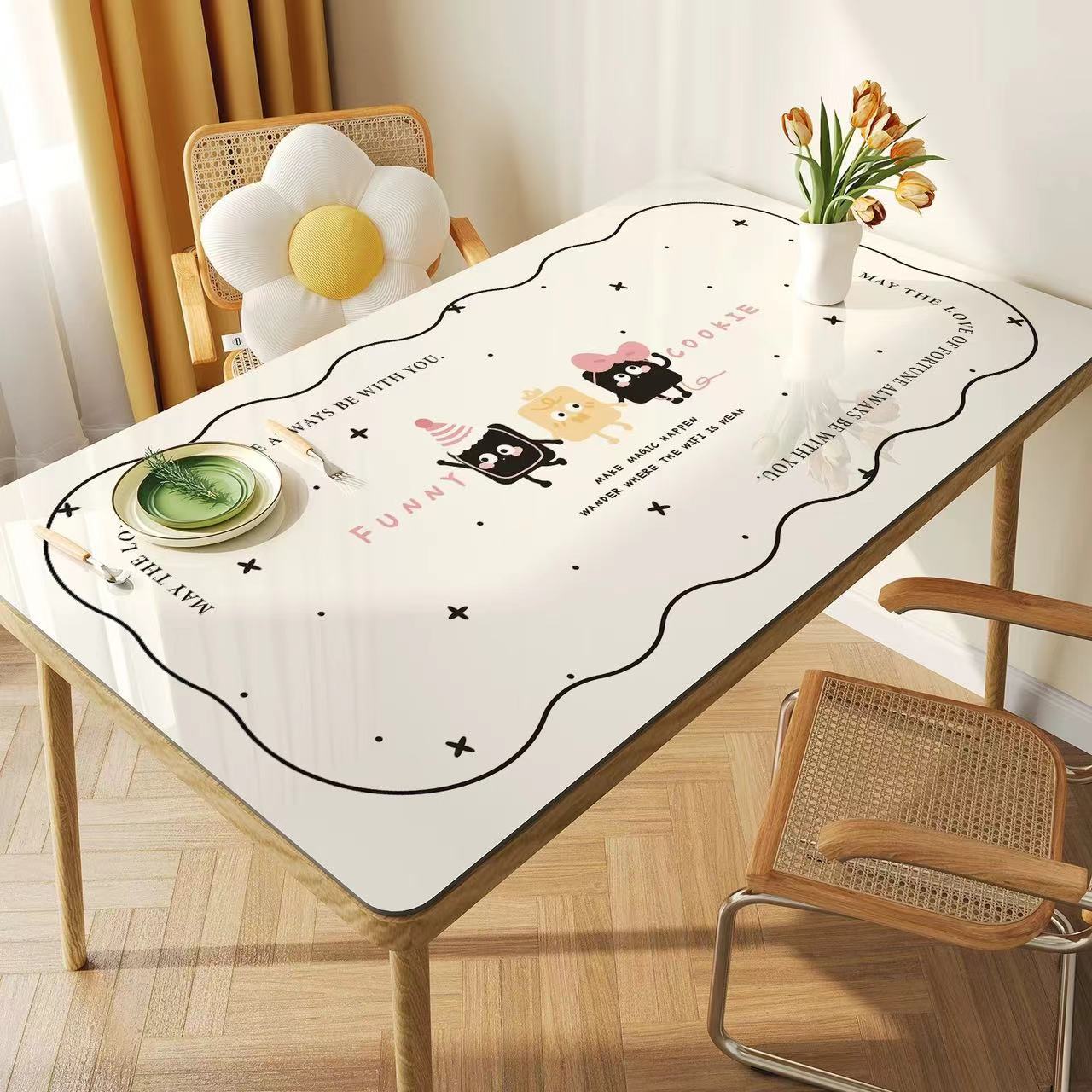 만화 식탁 매트 워시-무료 방수 및 오일-증거 데스크탑 보호 매트 PVC 안티 스케일링 라이트 럭셔리 하이 레벨 커피 테이블 테이블 테이블 테이블 천스토어 가기