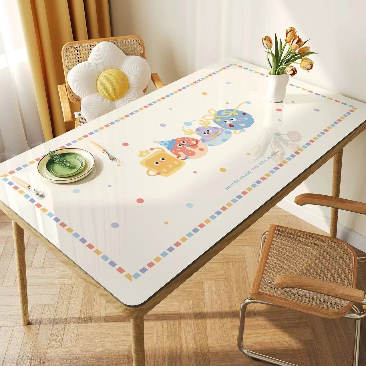 만화 식탁 매트 워시-무료 방수 및 오일-증거 데스크탑 보호 매트 PVC 안티 스케일링 라이트 럭셔리 하이 레벨 커피 테이블 테이블 테이블 테이블 천