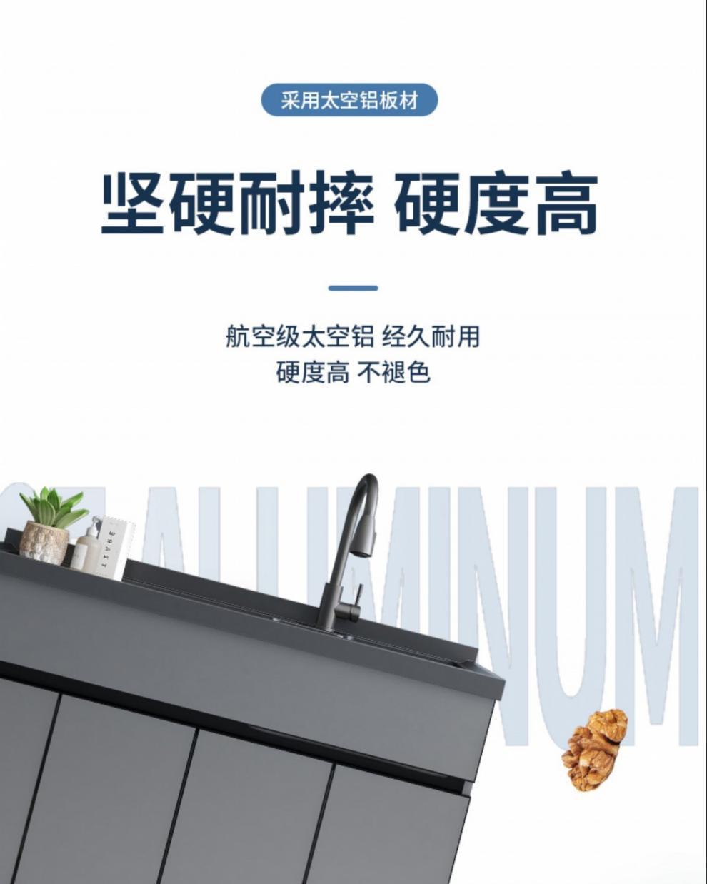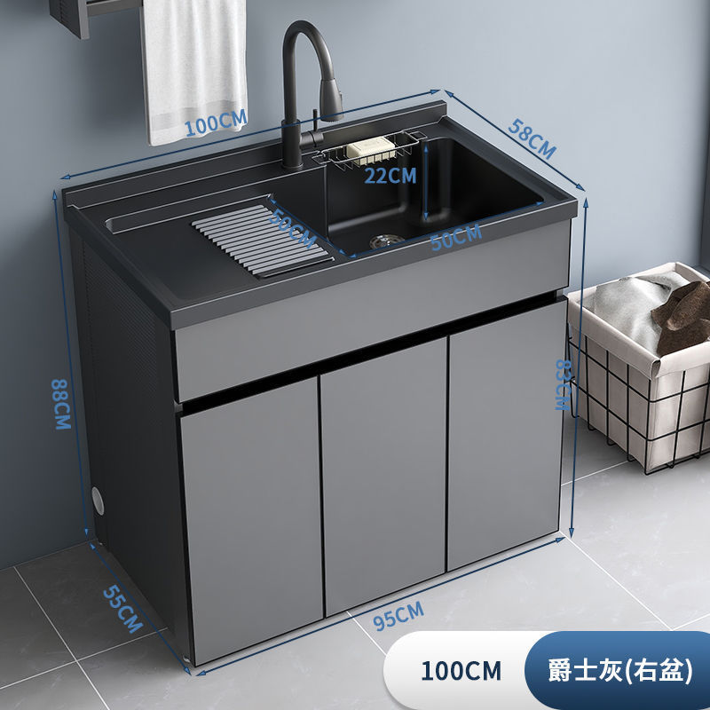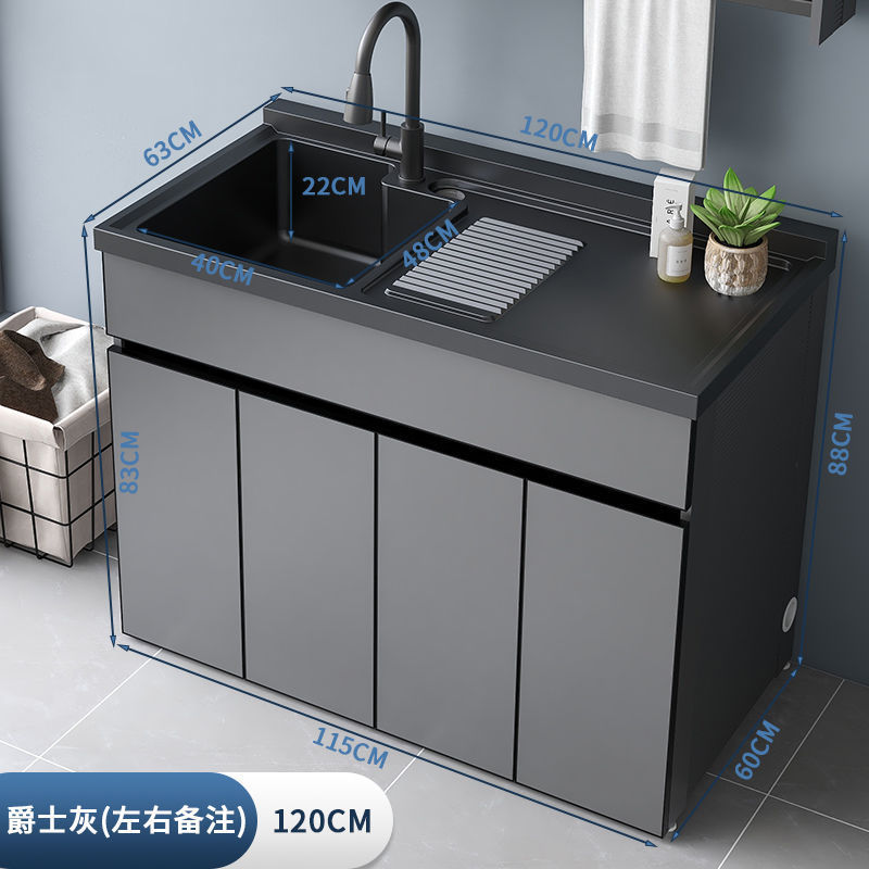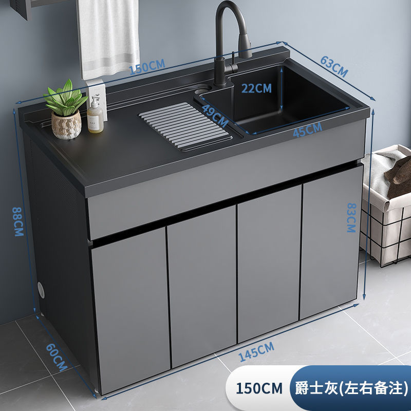 간단한 발코니 공간 알루미늄 세탁기 컴패니언 캐비닛 석영 스톤 통합 워시 분지 및 코너 커팅 조합