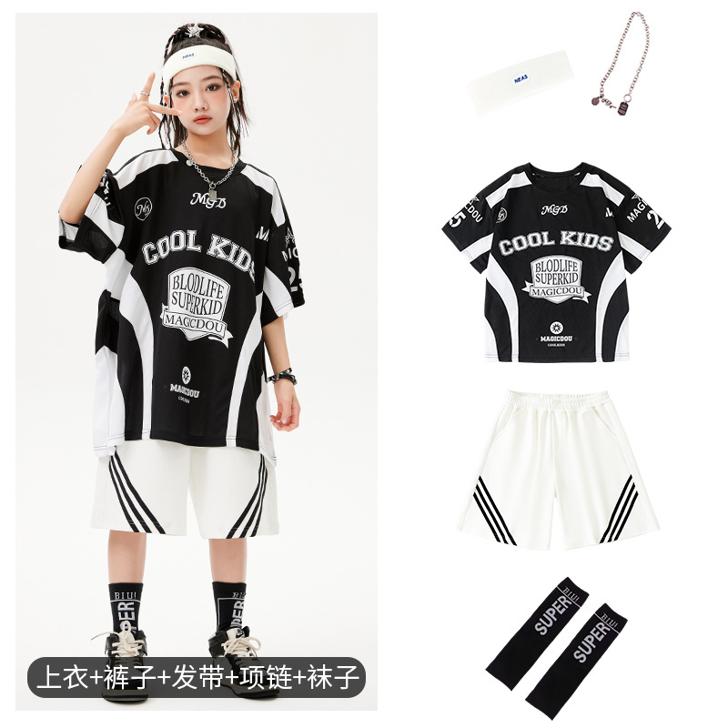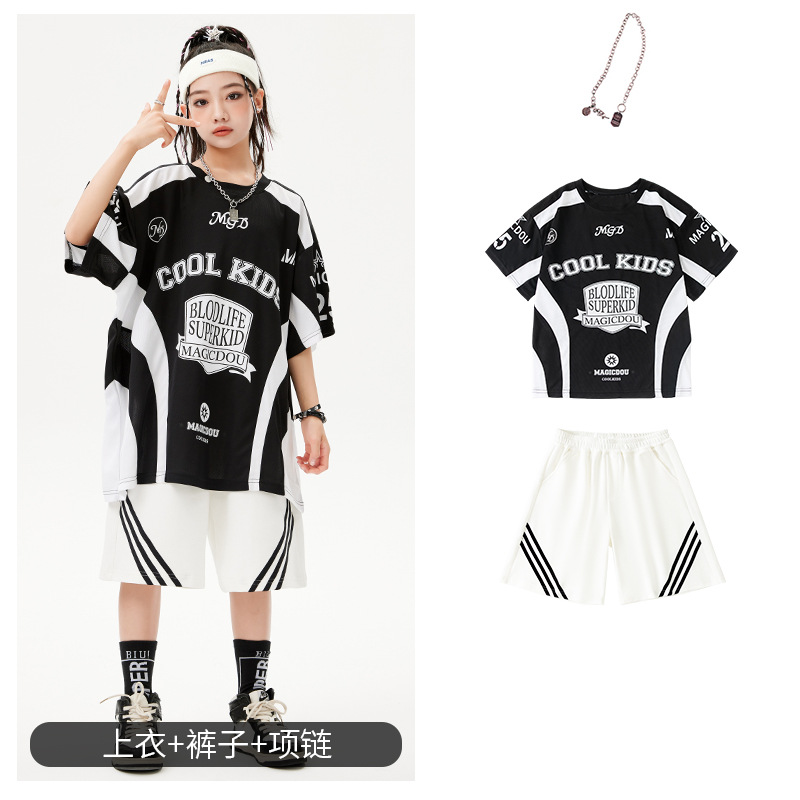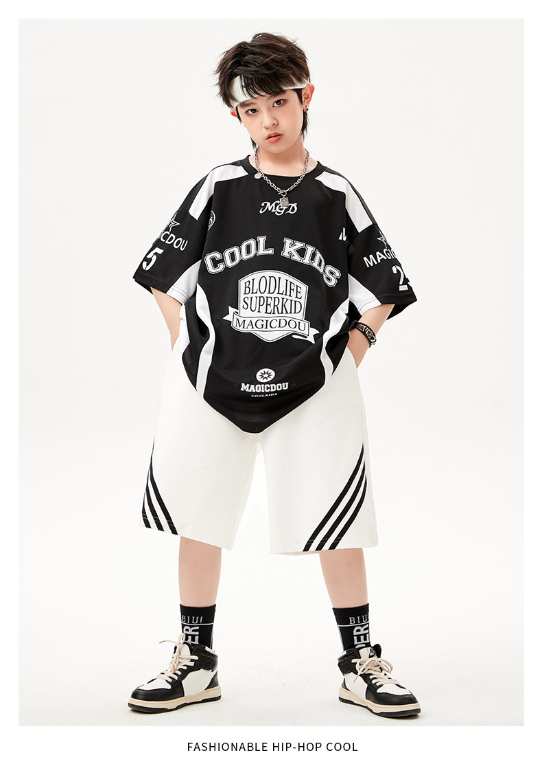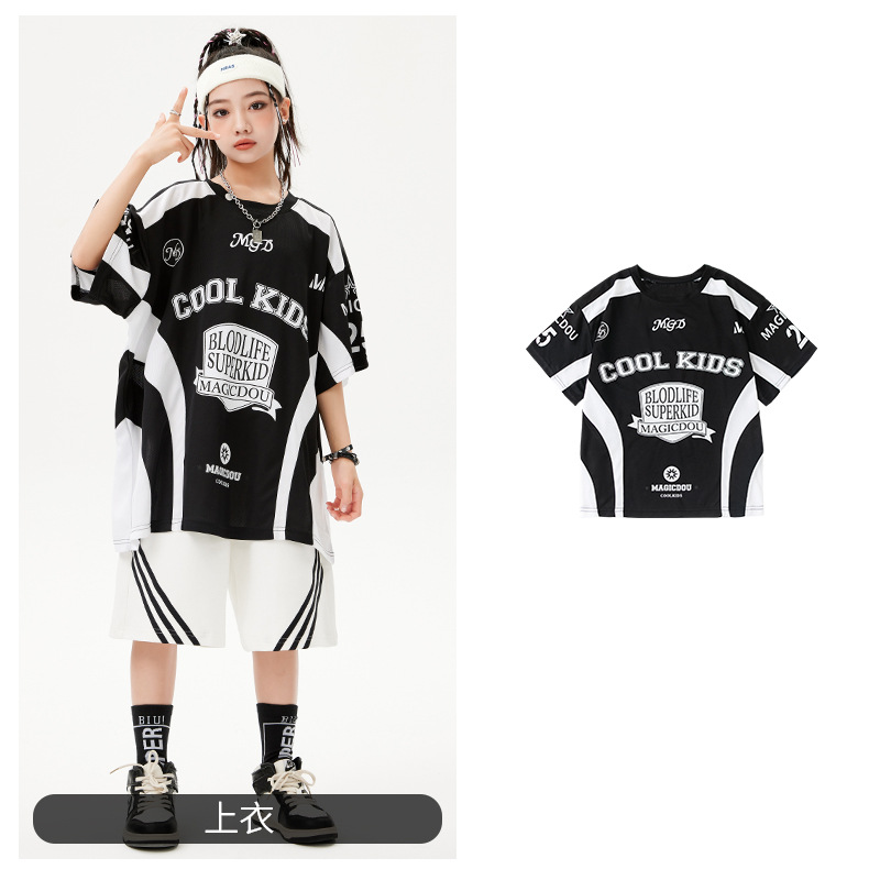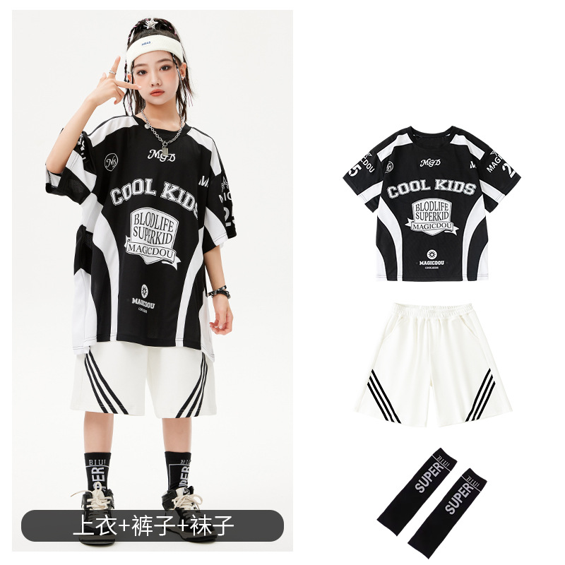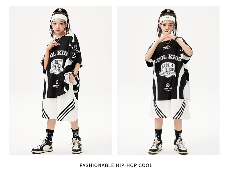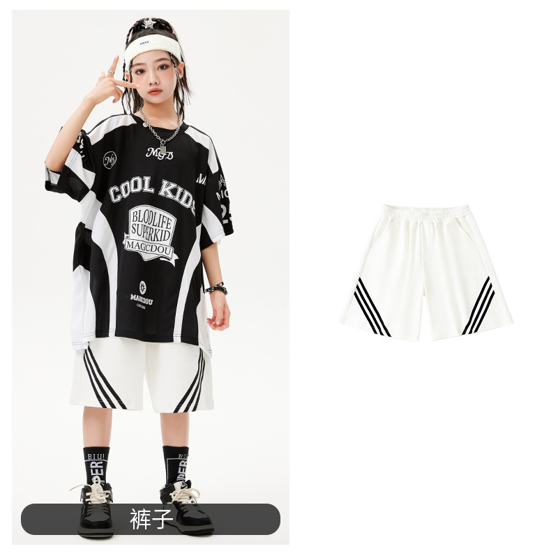 Hiphop 힙합 아동복 힙합 소년 흑백 컬러 대비 패션 브랜드 세트 어린이 패션 의류 소녀 튀긴 거리 의상