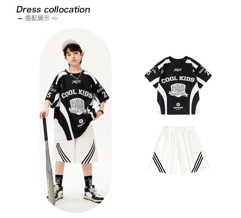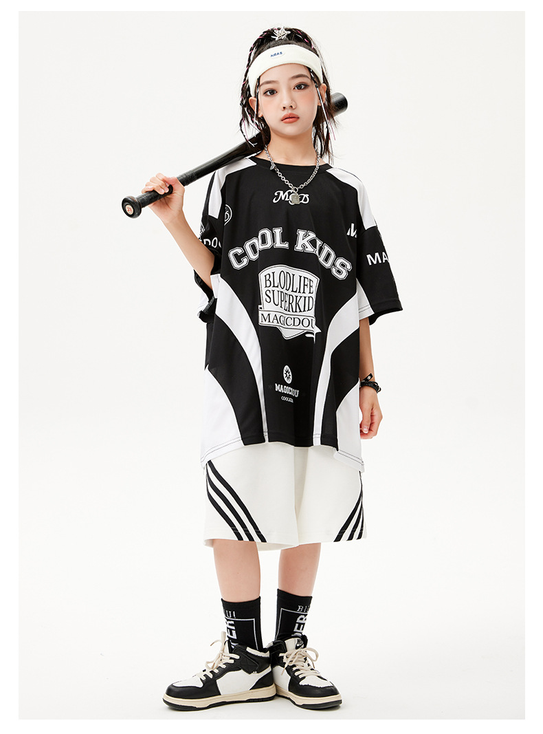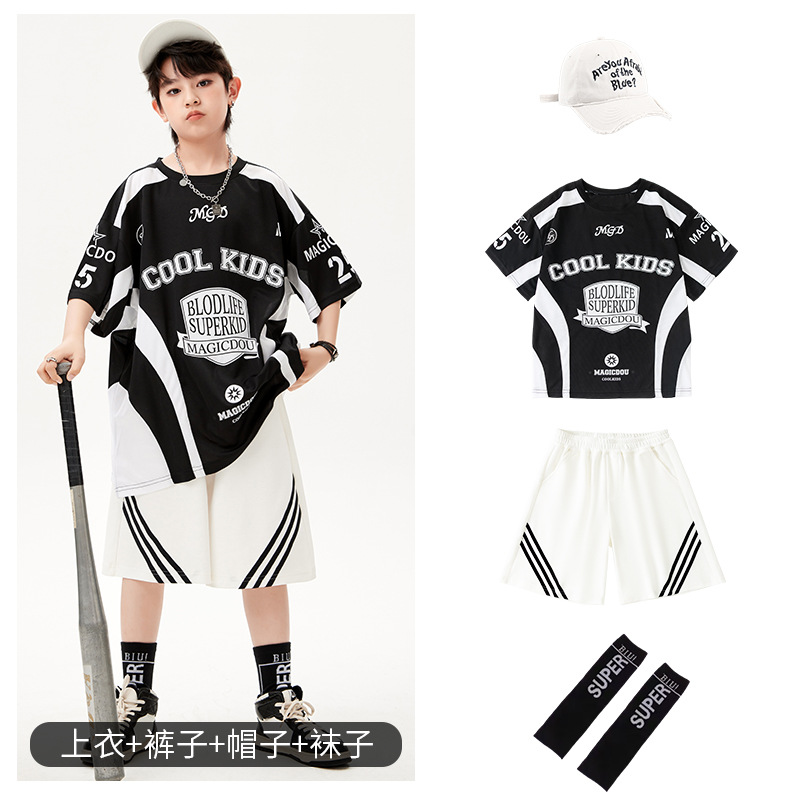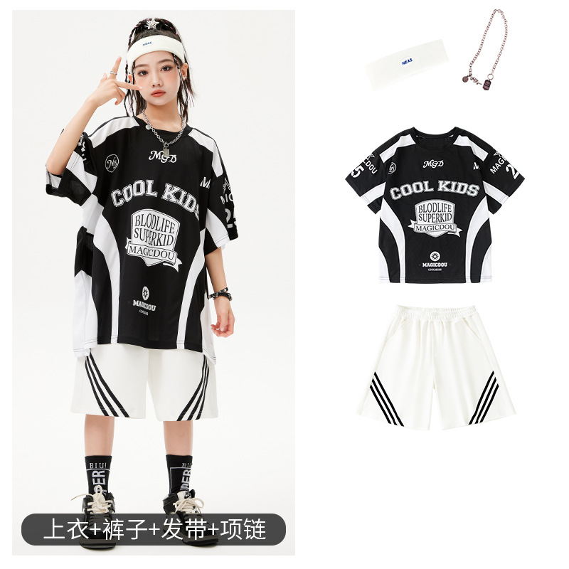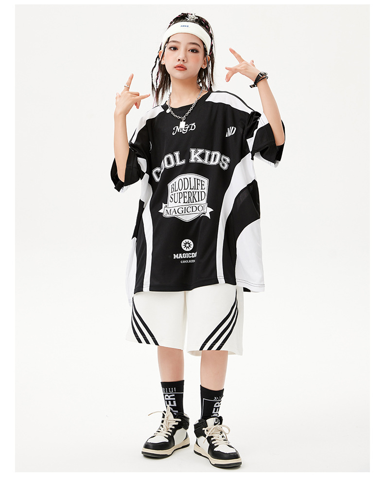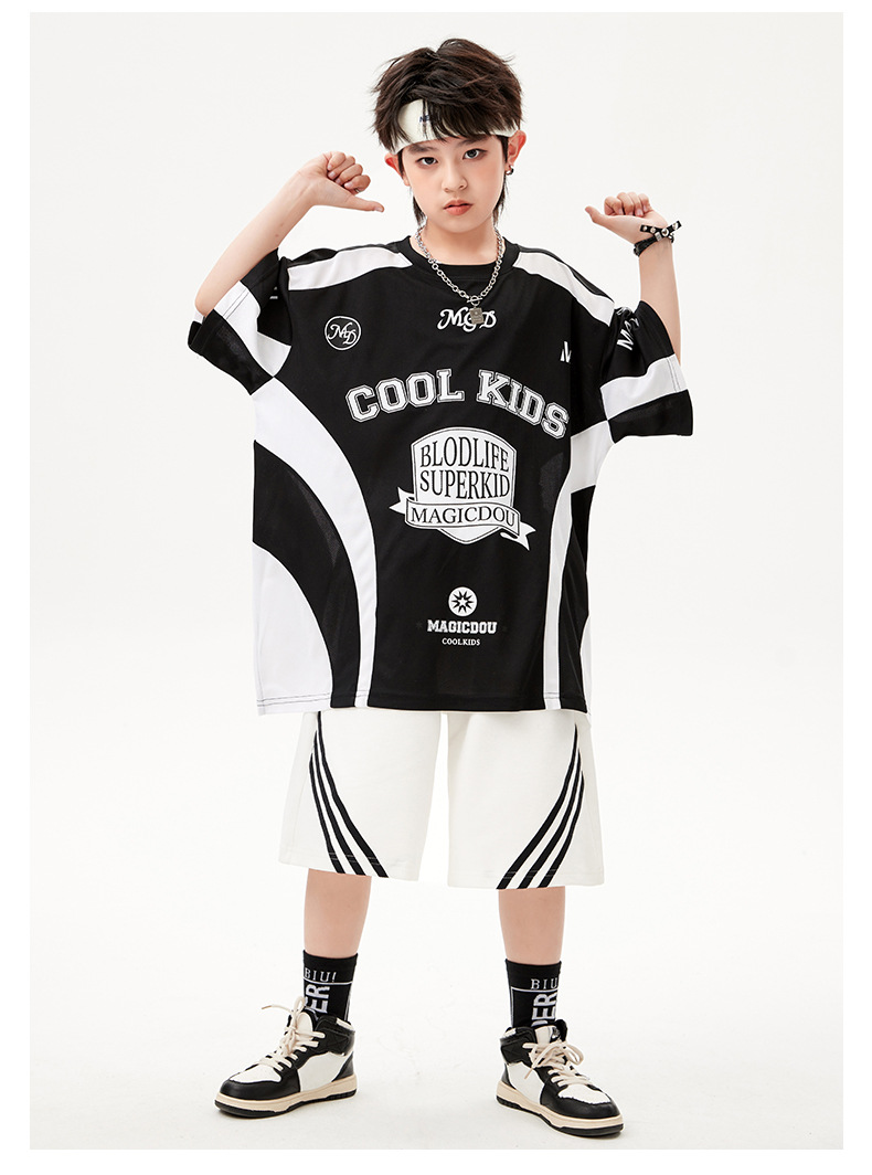 Hiphop 힙합 아동복 힙합 소년 흑백 컬러 대비 패션 브랜드 세트 어린이 패션 의류 소녀 튀긴 거리 의상