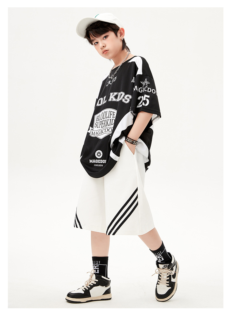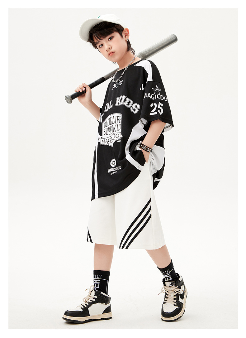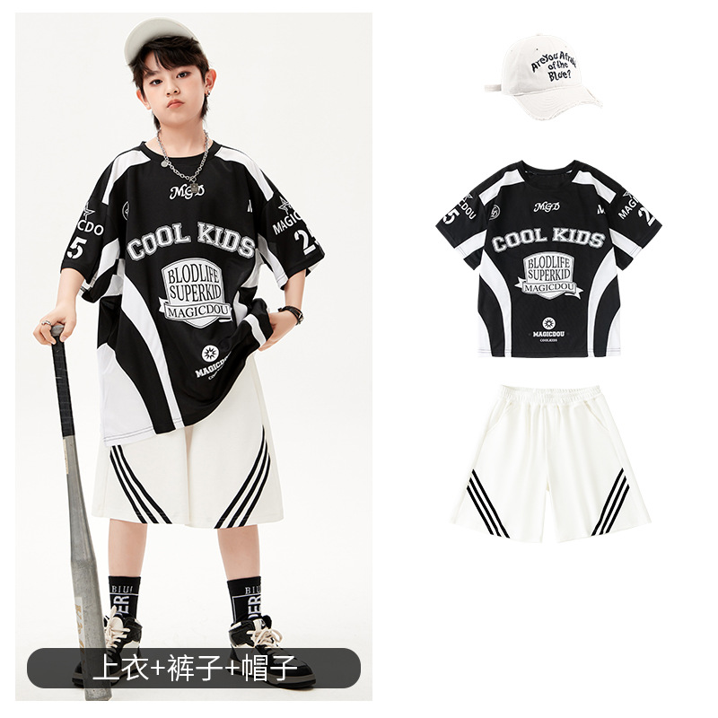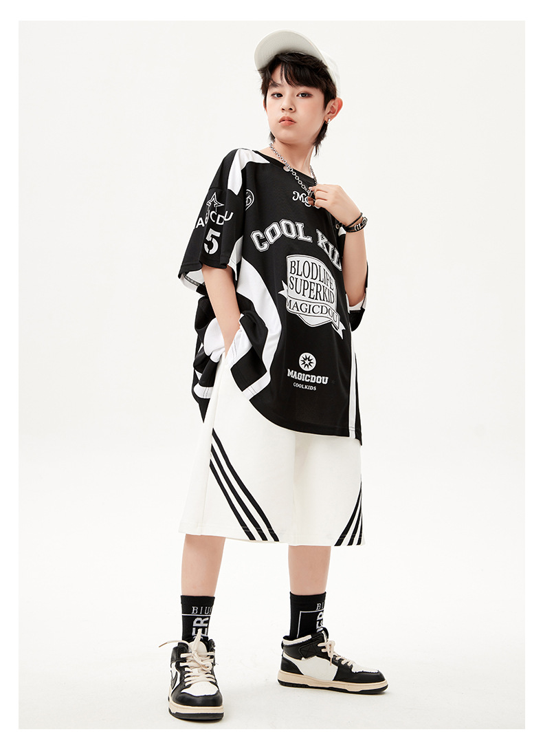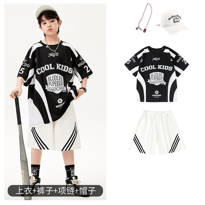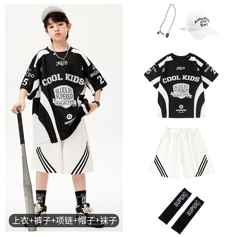 Hiphop 힙합 아동복 힙합 소년 흑백 컬러 대비 패션 브랜드 세트 어린이 패션 의류 소녀 튀긴 거리 의상