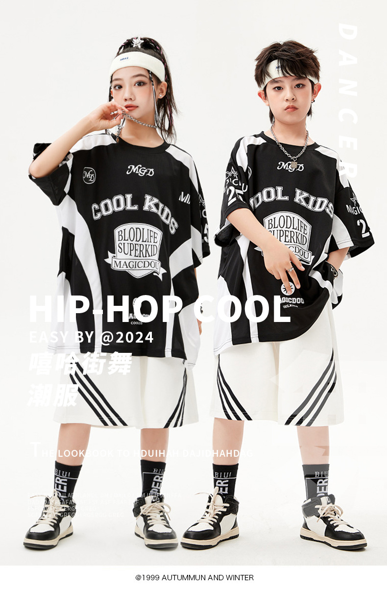 Hiphop 힙합 아동복 힙합 소년 흑백 컬러 대비 패션 브랜드 세트 어린이 패션 의류 소녀 튀긴 거리 의상스토어 가기