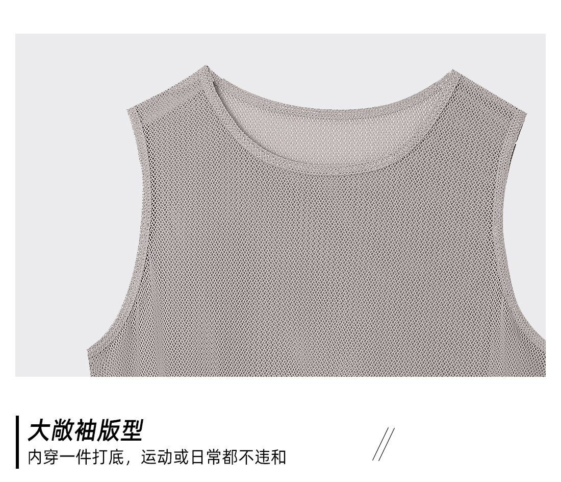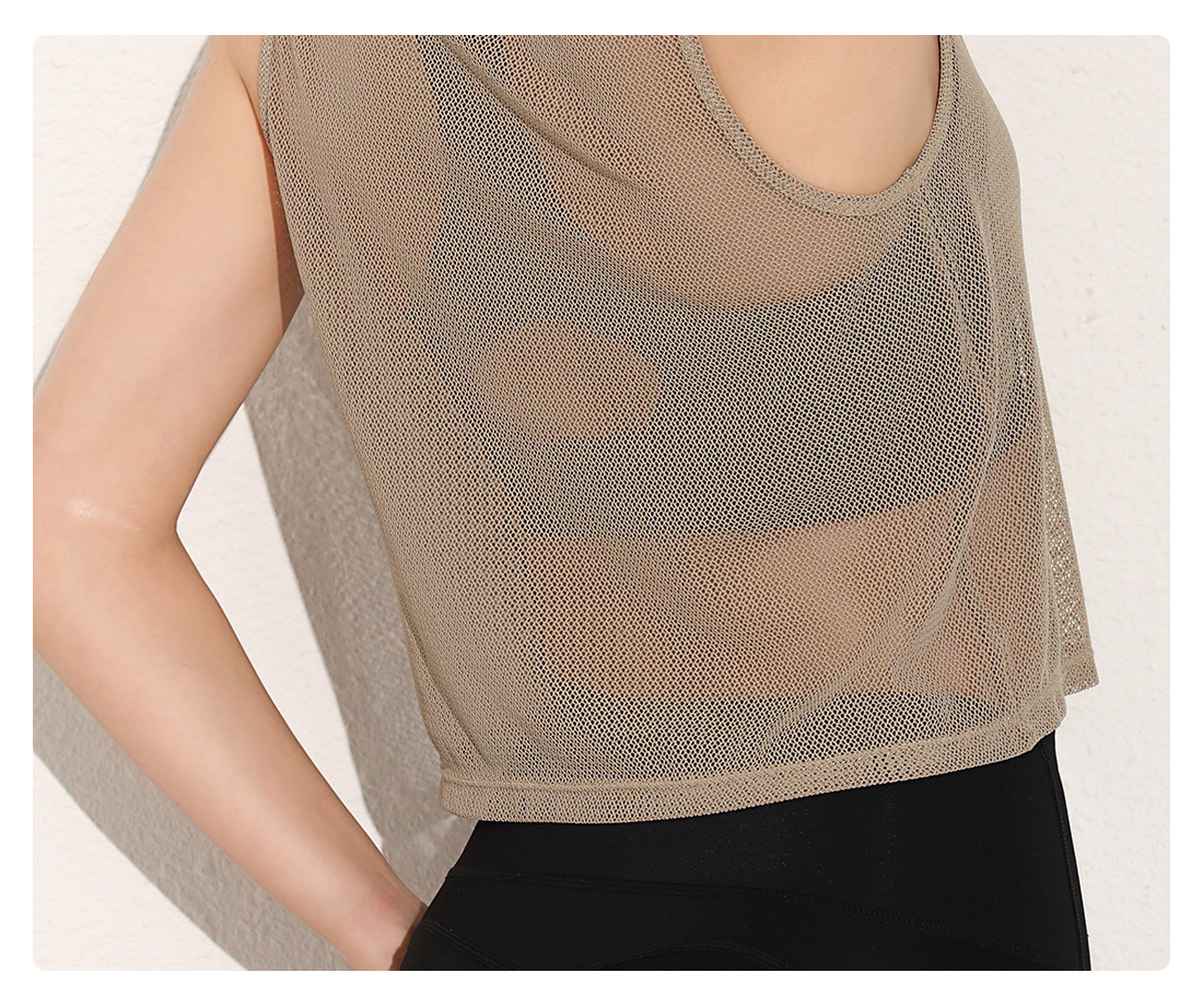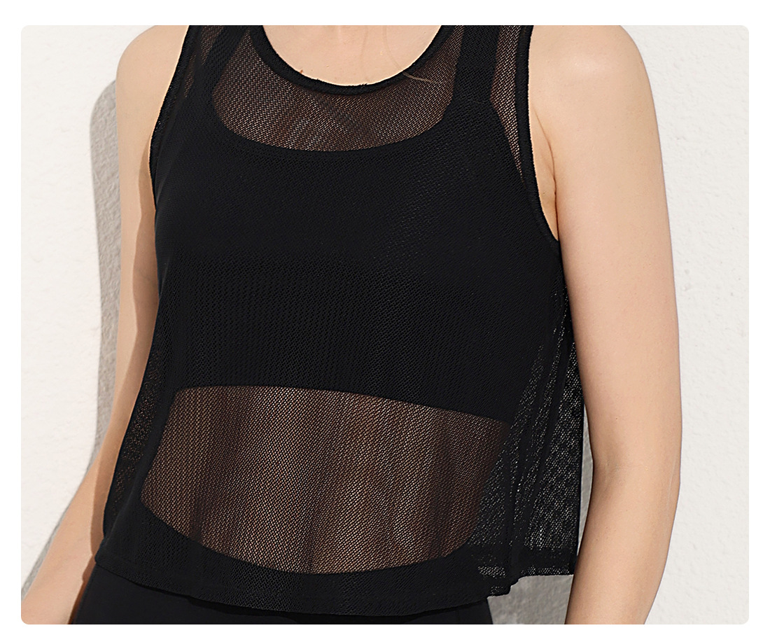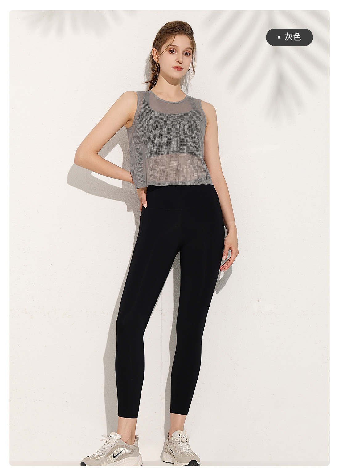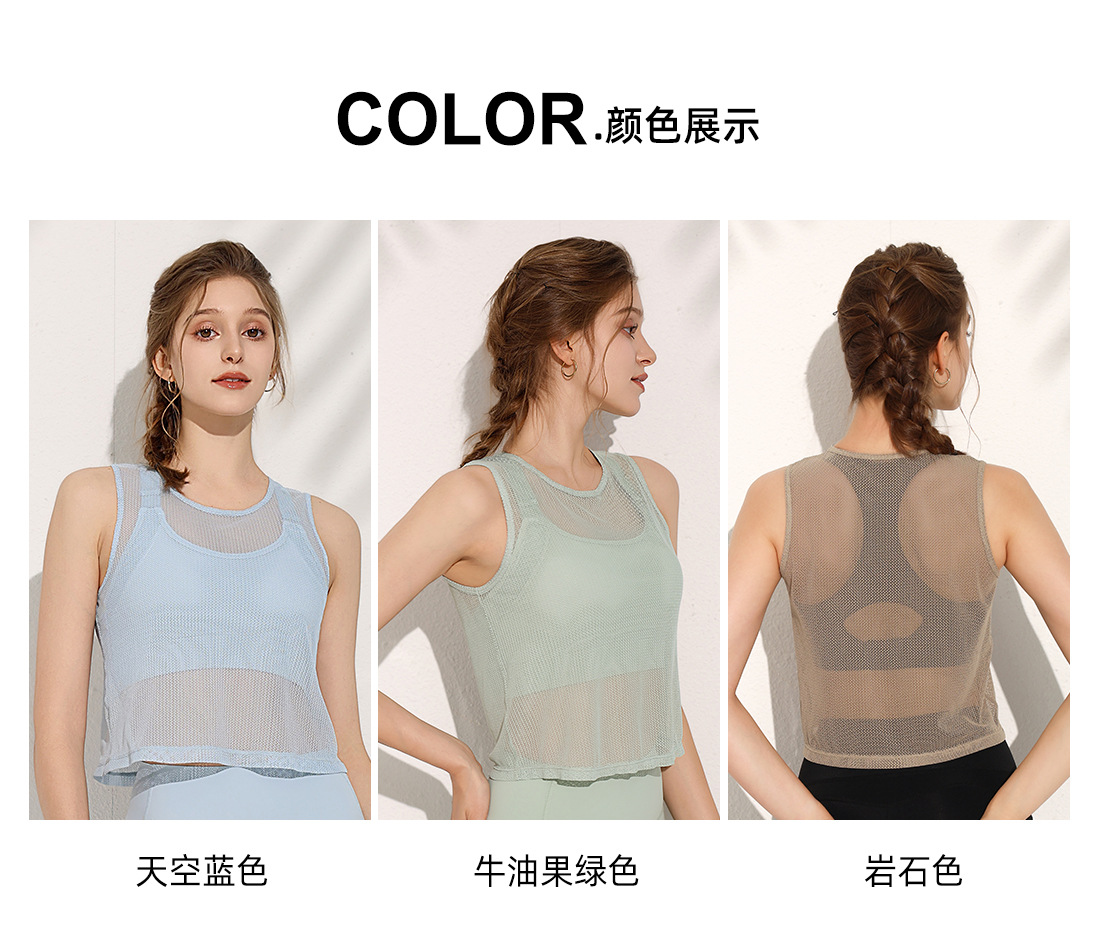 국경 간 새로운 통기성 중공 메쉬 요가 의류 블라우스 여성의 느슨한 민소매 조끼 빠른 건조 스포츠 피트니스 탑