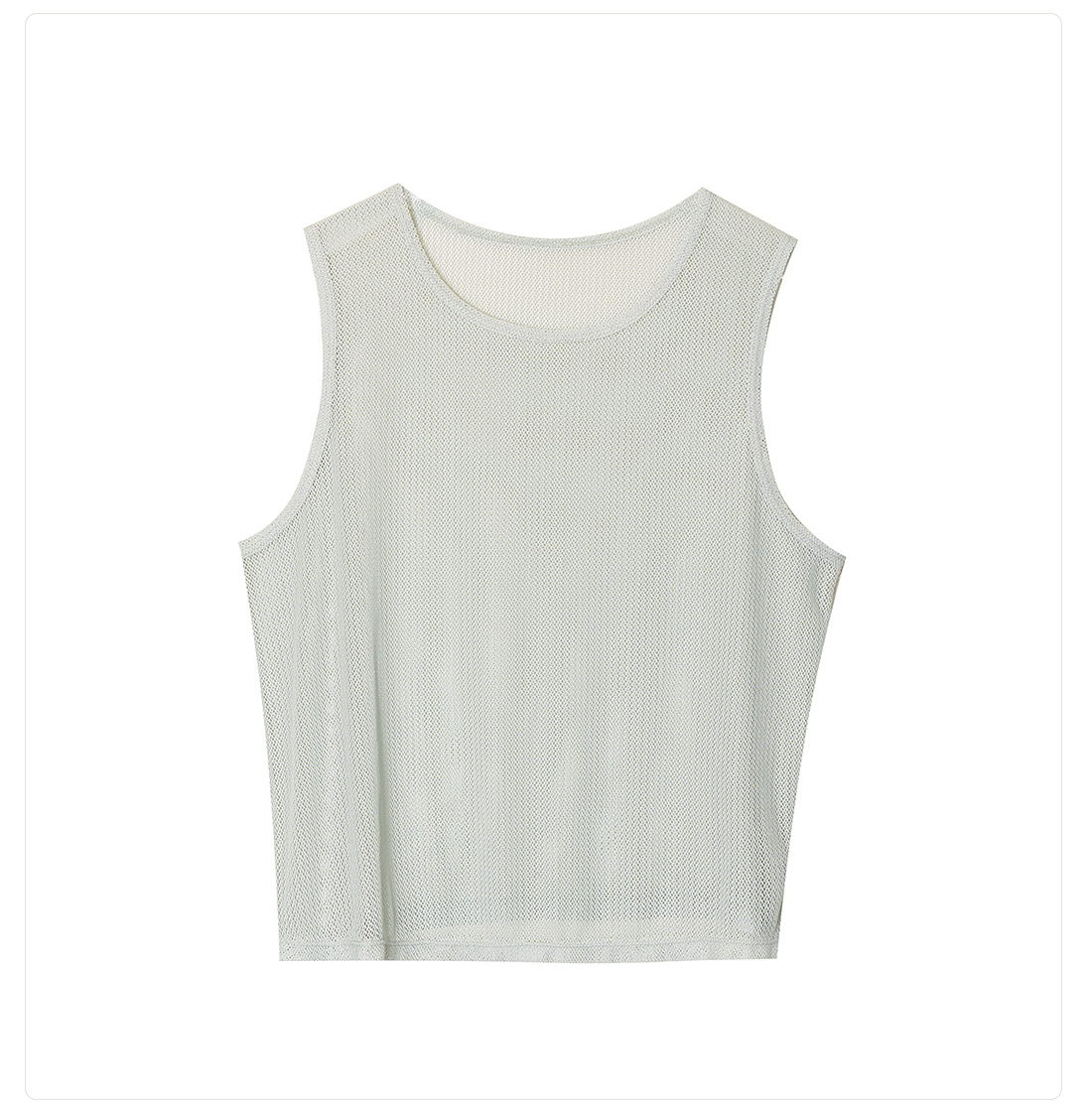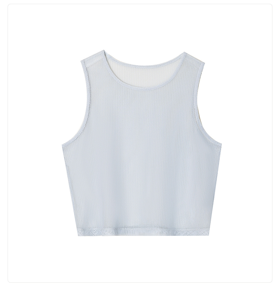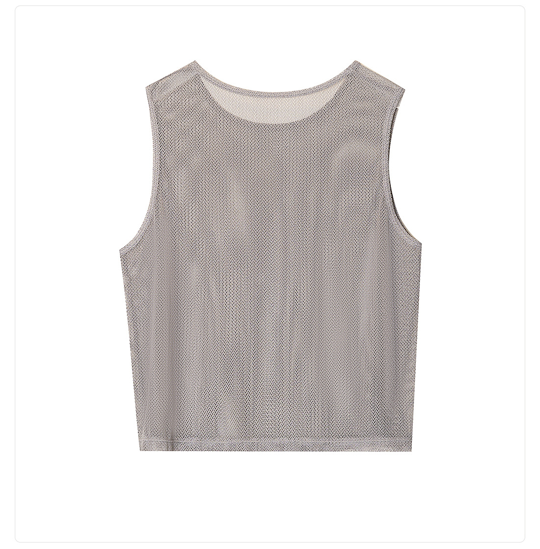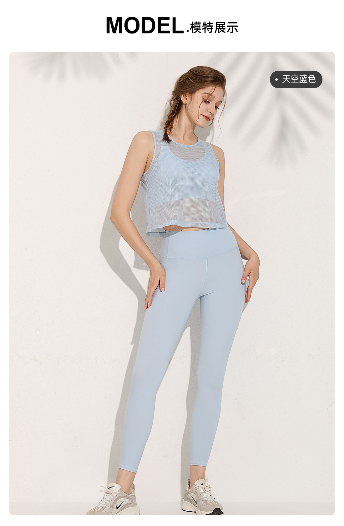 국경 간 새로운 통기성 중공 메쉬 요가 의류 블라우스 여성의 느슨한 민소매 조끼 빠른 건조 스포츠 피트니스 탑