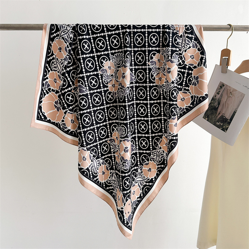 유럽과 미국의 새로운 꽃 스카프 트윌 90cm 기하학적 광장 올 매치 고급 여행 우아한 목도리 테이프스토어 가기