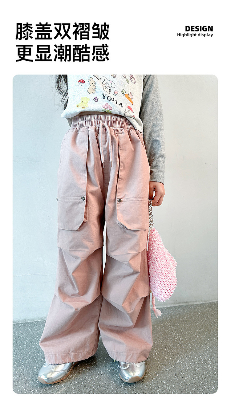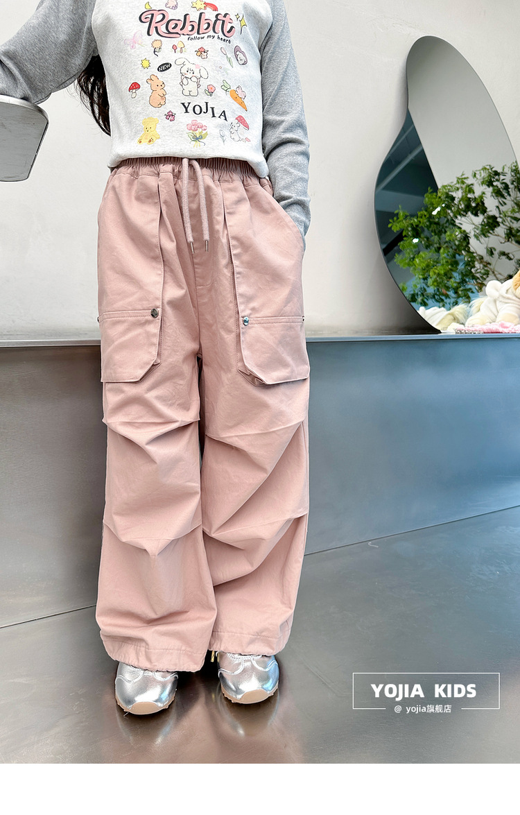 YOJIA 소녀 캐주얼 바지 봄과 가을 2024 새로운 인터넷 연예인 거리 소녀의 바지 가을 어린이 바지스토어 가기
