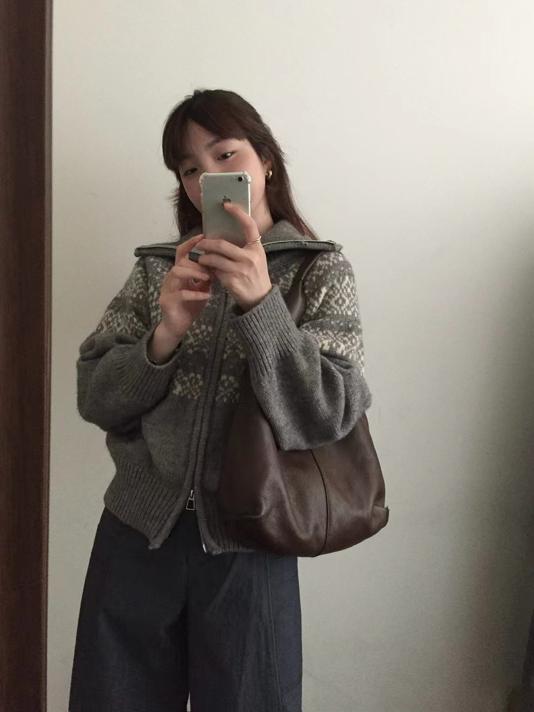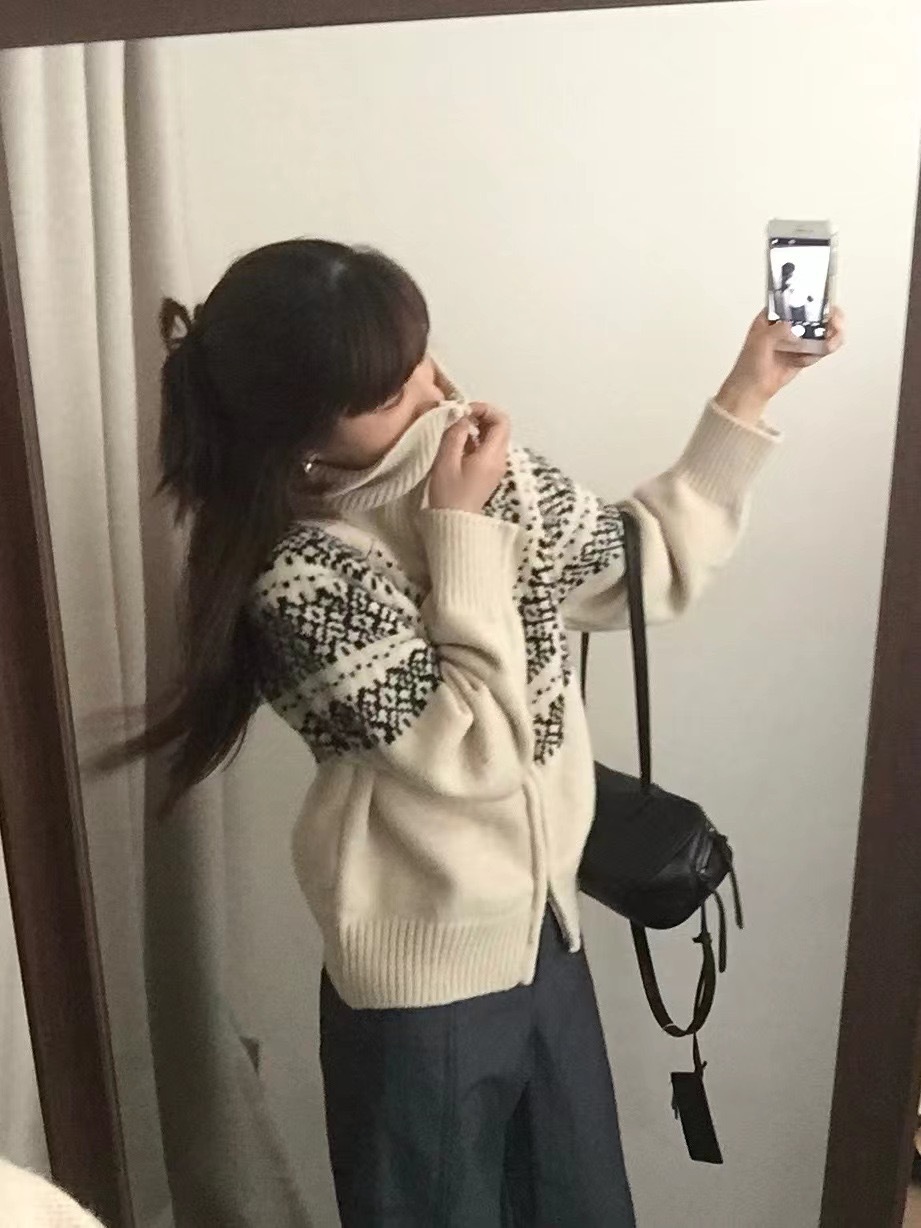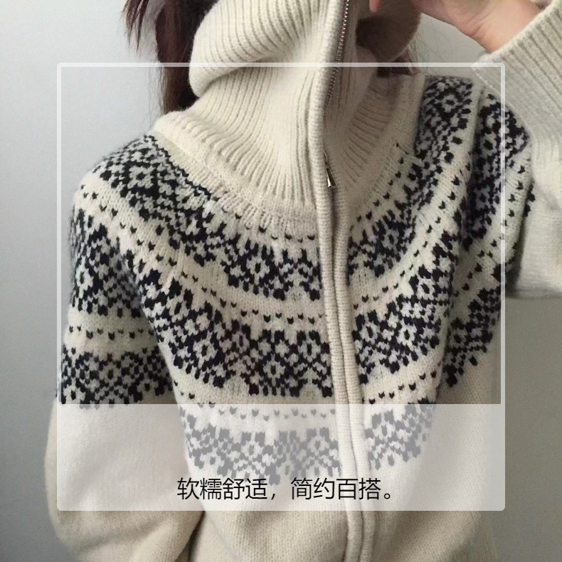 예술적 복고풍 스타일 페어아일랜드 자카드 니트 카디건 여성 가을과 겨울 새로운 느슨한 지퍼 스웨터 재킷 트렌디 494스토어 가기