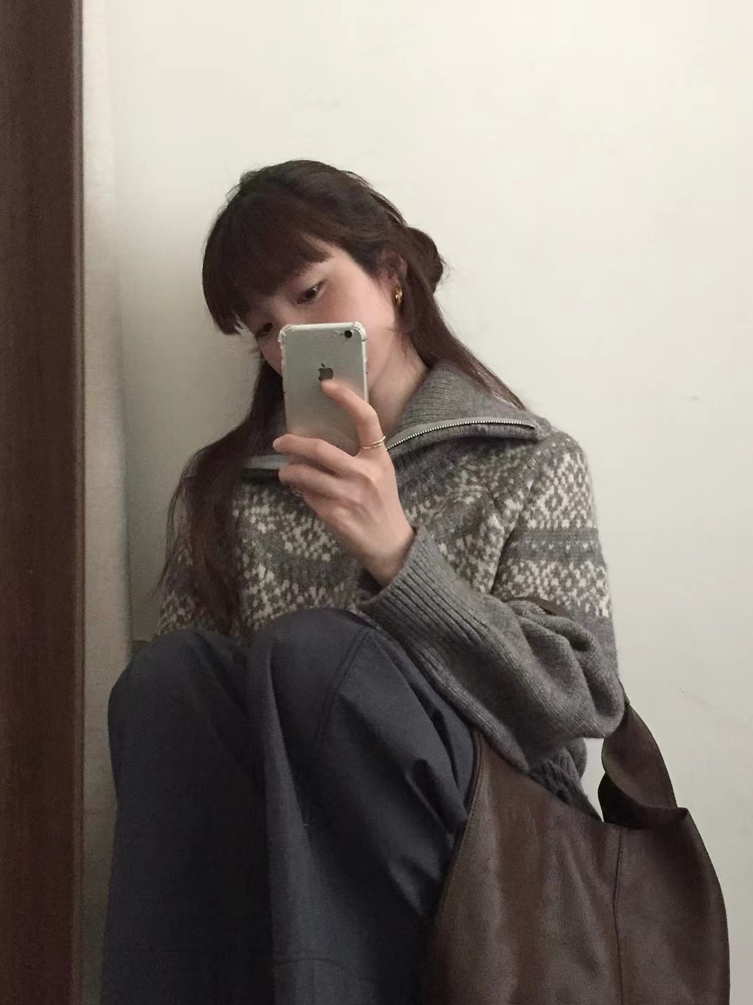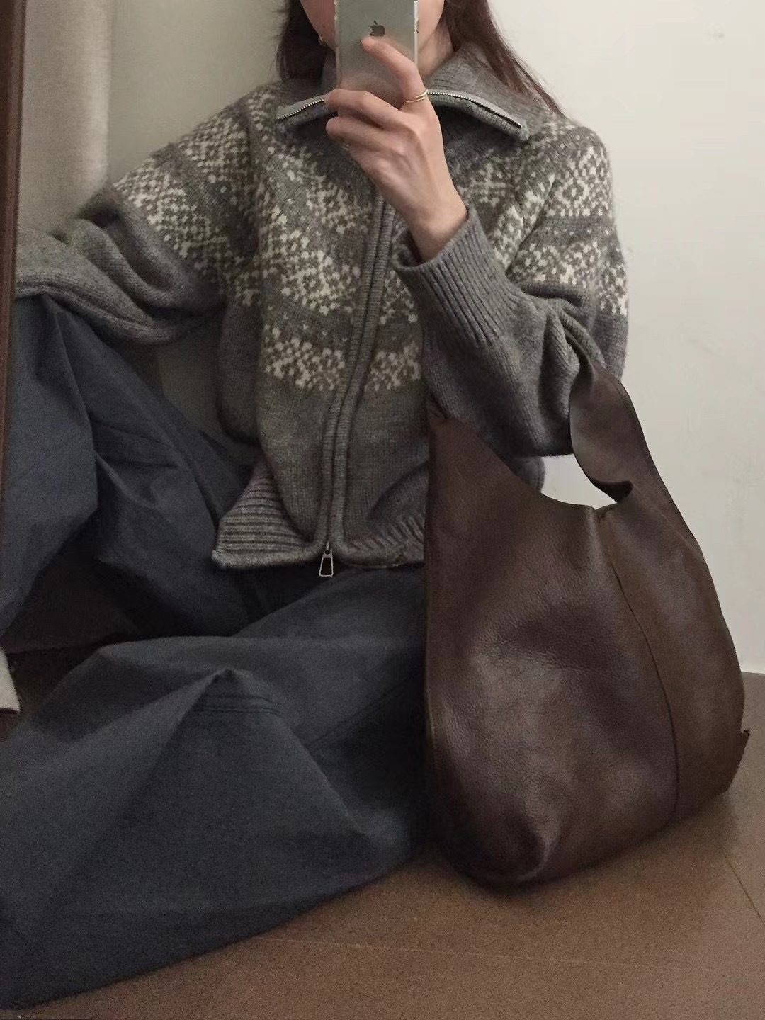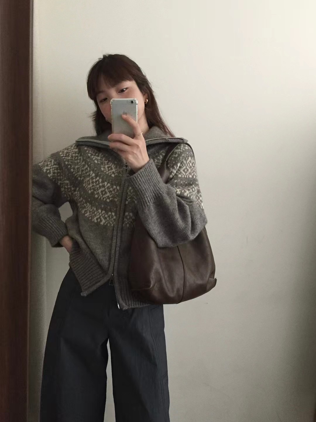 예술적 복고풍 스타일 페어아일랜드 자카드 니트 카디건 여성 가을과 겨울 새로운 느슨한 지퍼 스웨터 재킷 트렌디 494스토어 가기