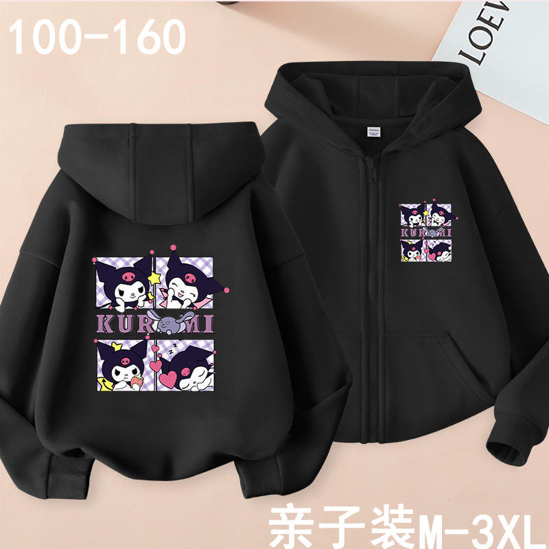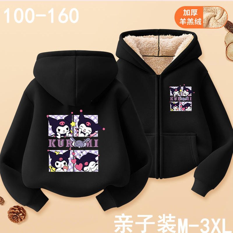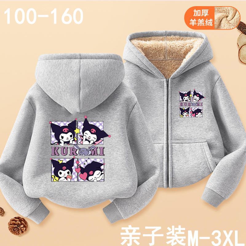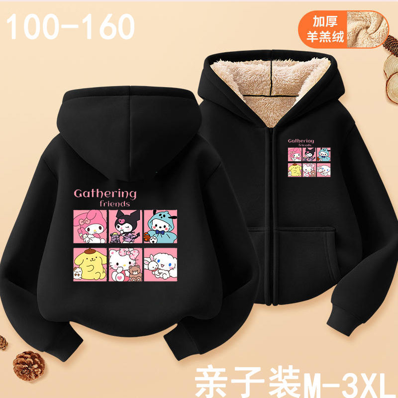 산리오 가을과 겨울 어머니-딸 부모-자식 소녀 카디건 후드 스웨터 쿨로 미 지퍼 스웨터와 벨벳 코트