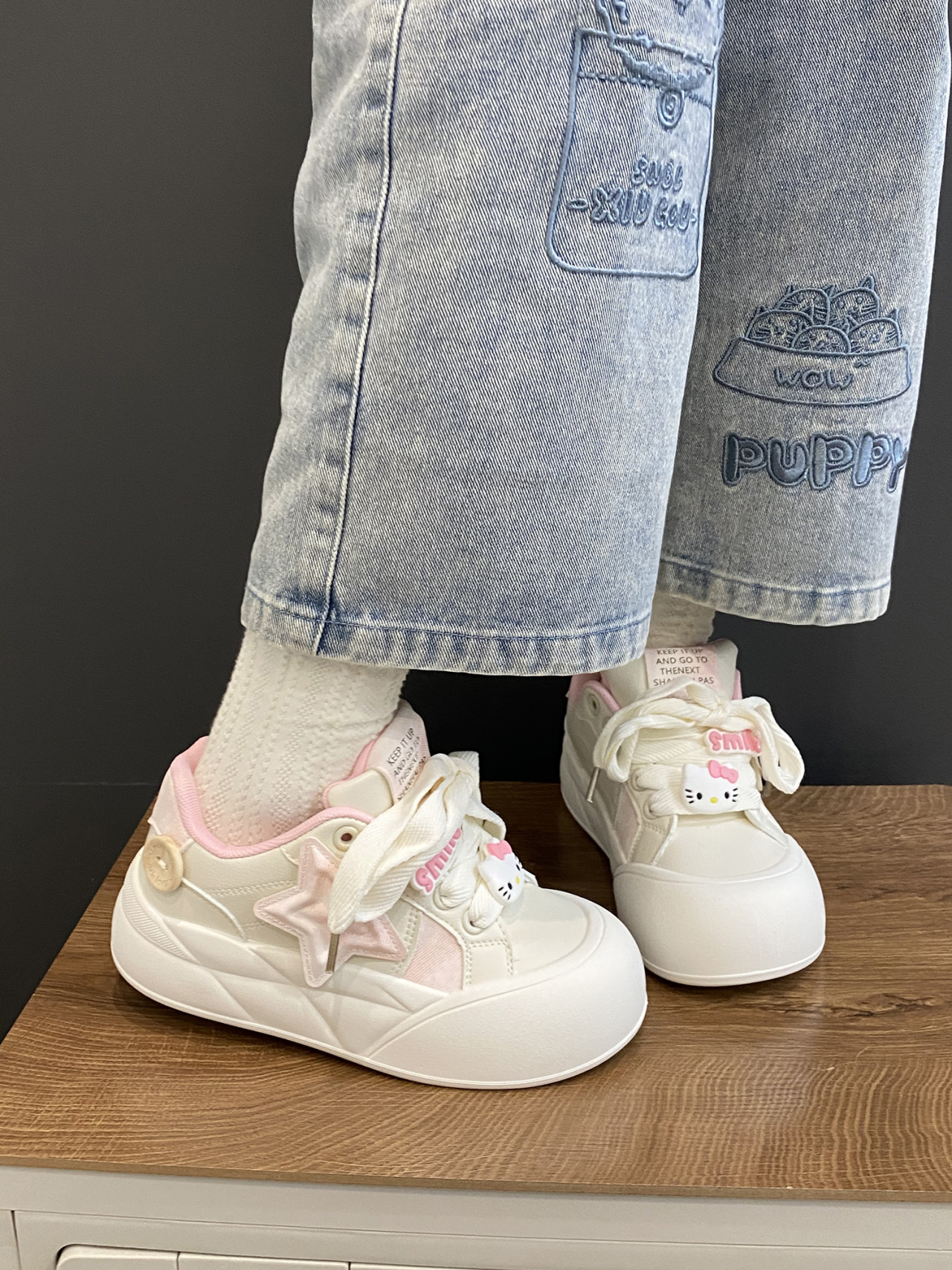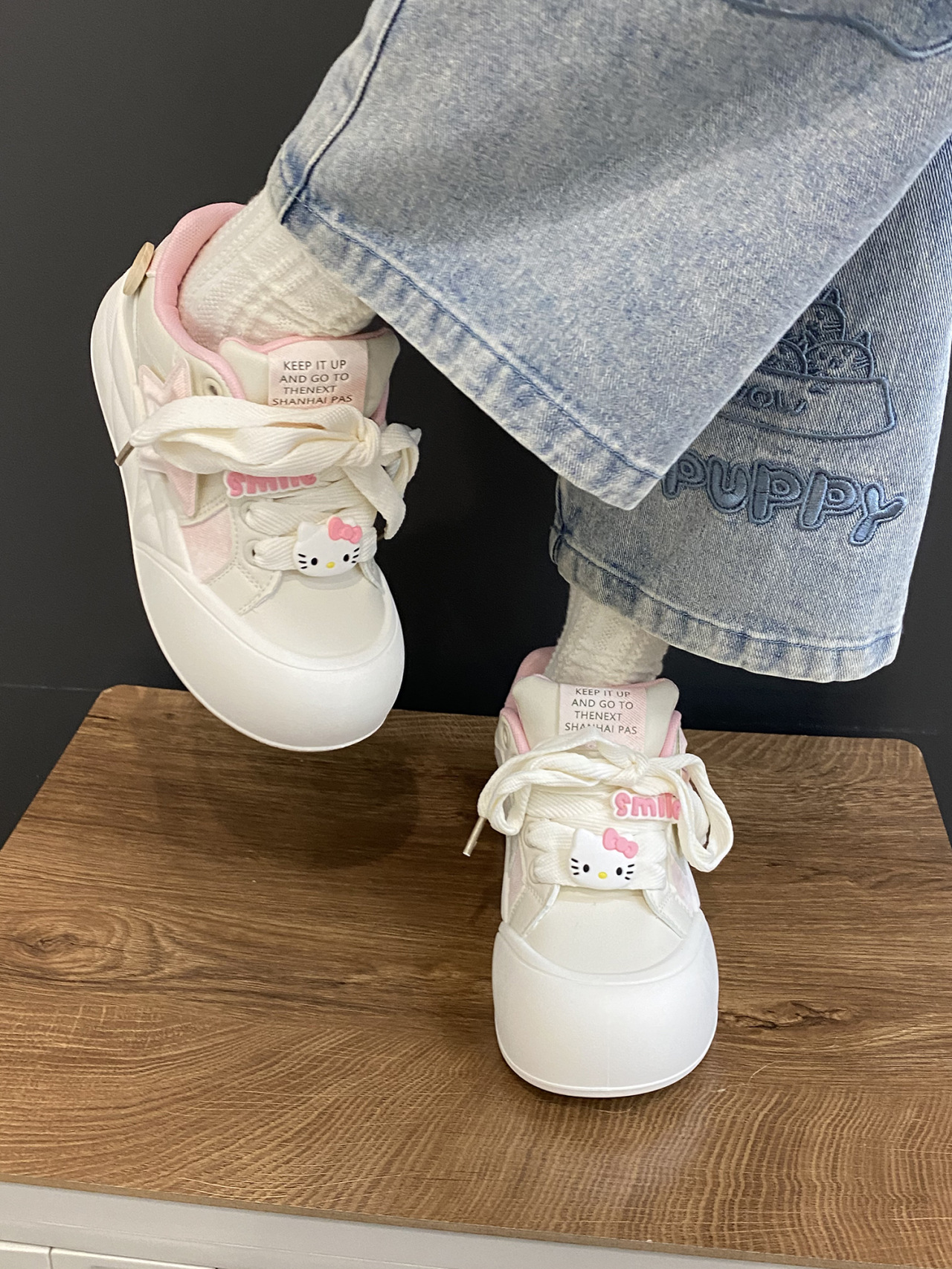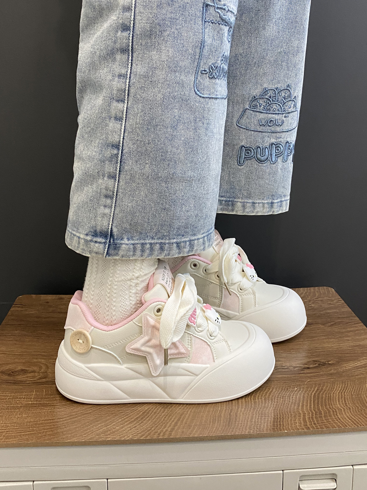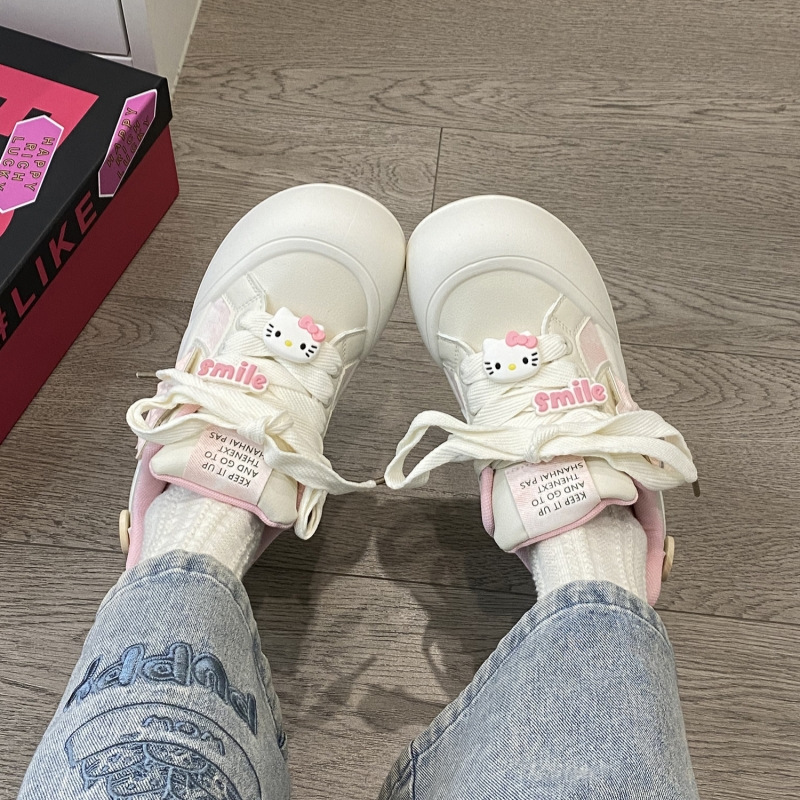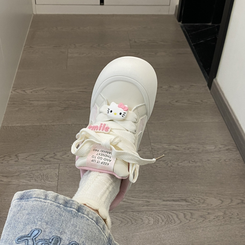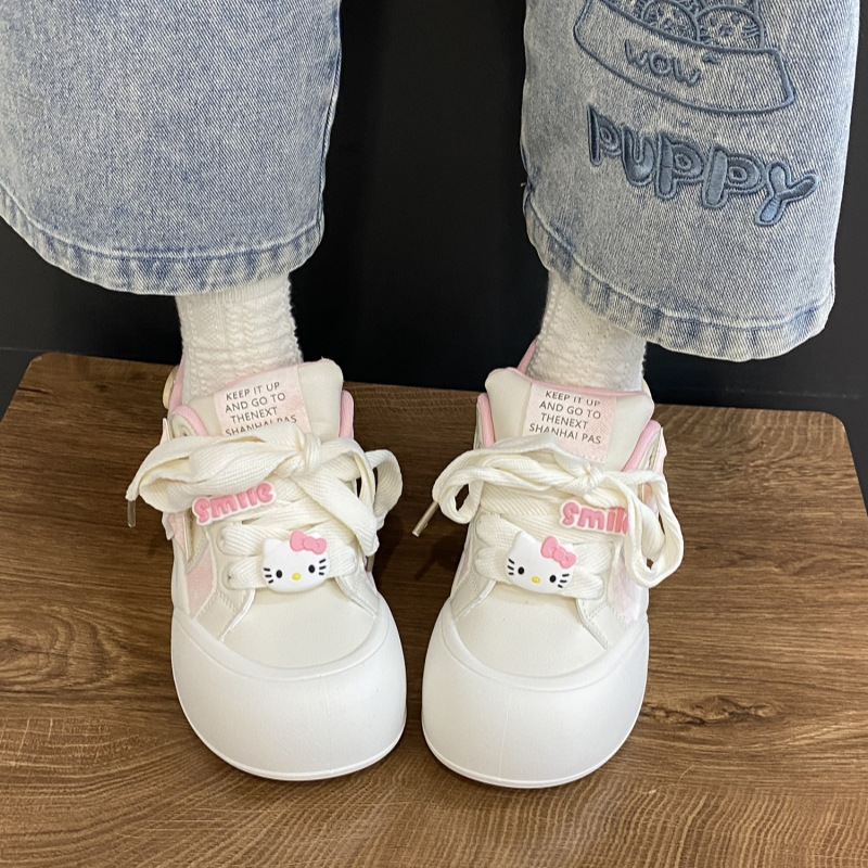 트렌디하고 귀여운 Kt 고양이 흰색 신발 여성용 세련된 홍콩 스타일 캐주얼 신발 여성을위한 모든 경기 두꺼운 슬라브 신발스토어 가기