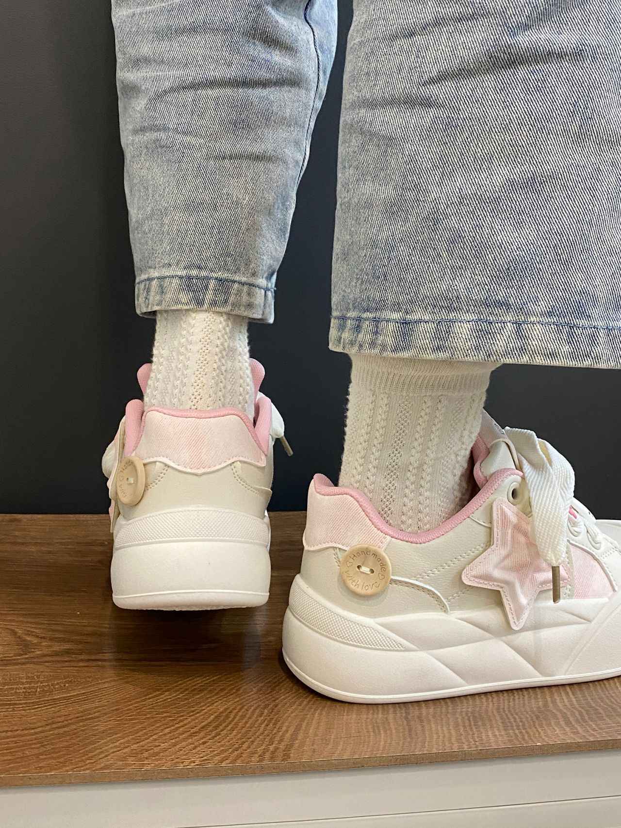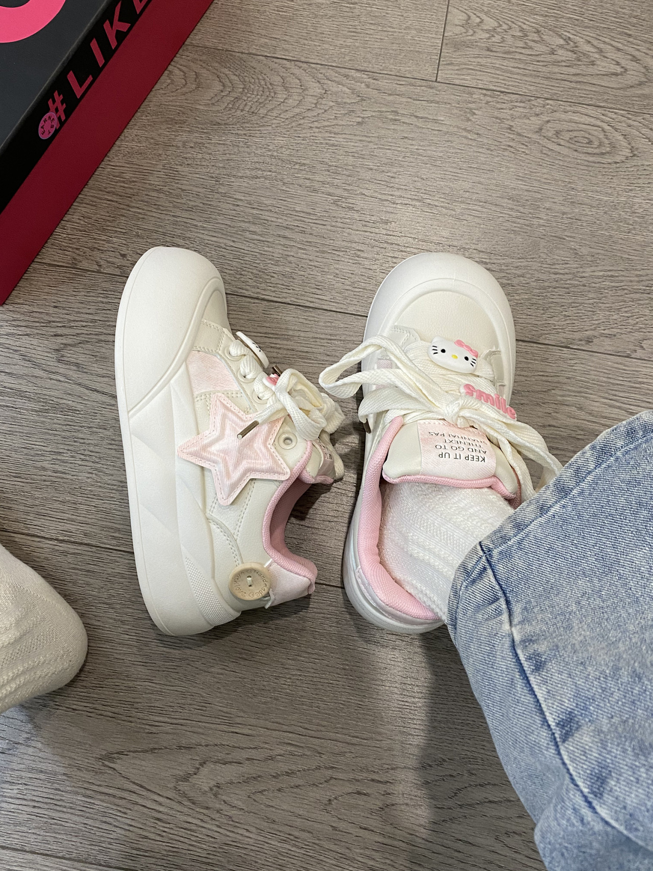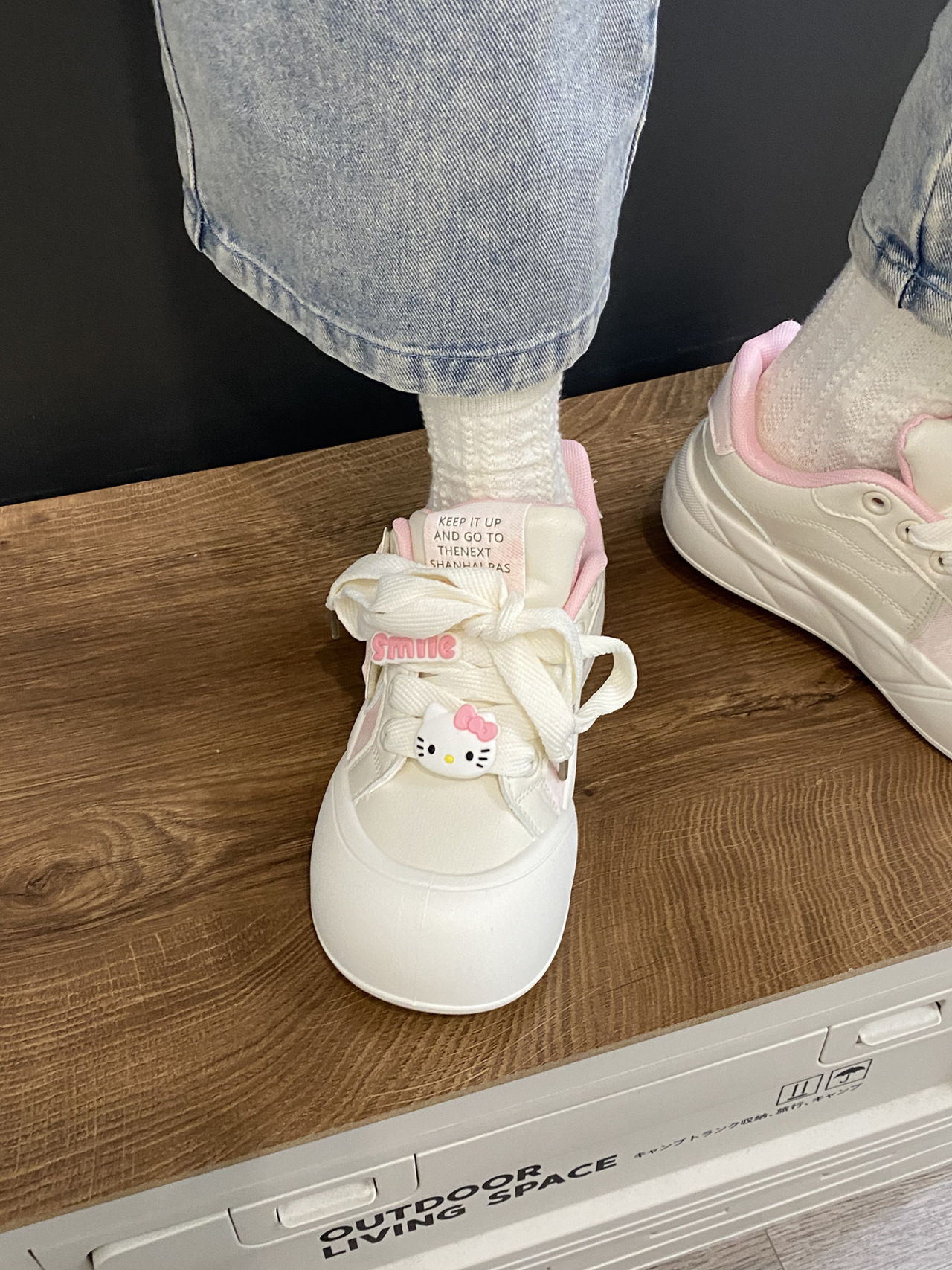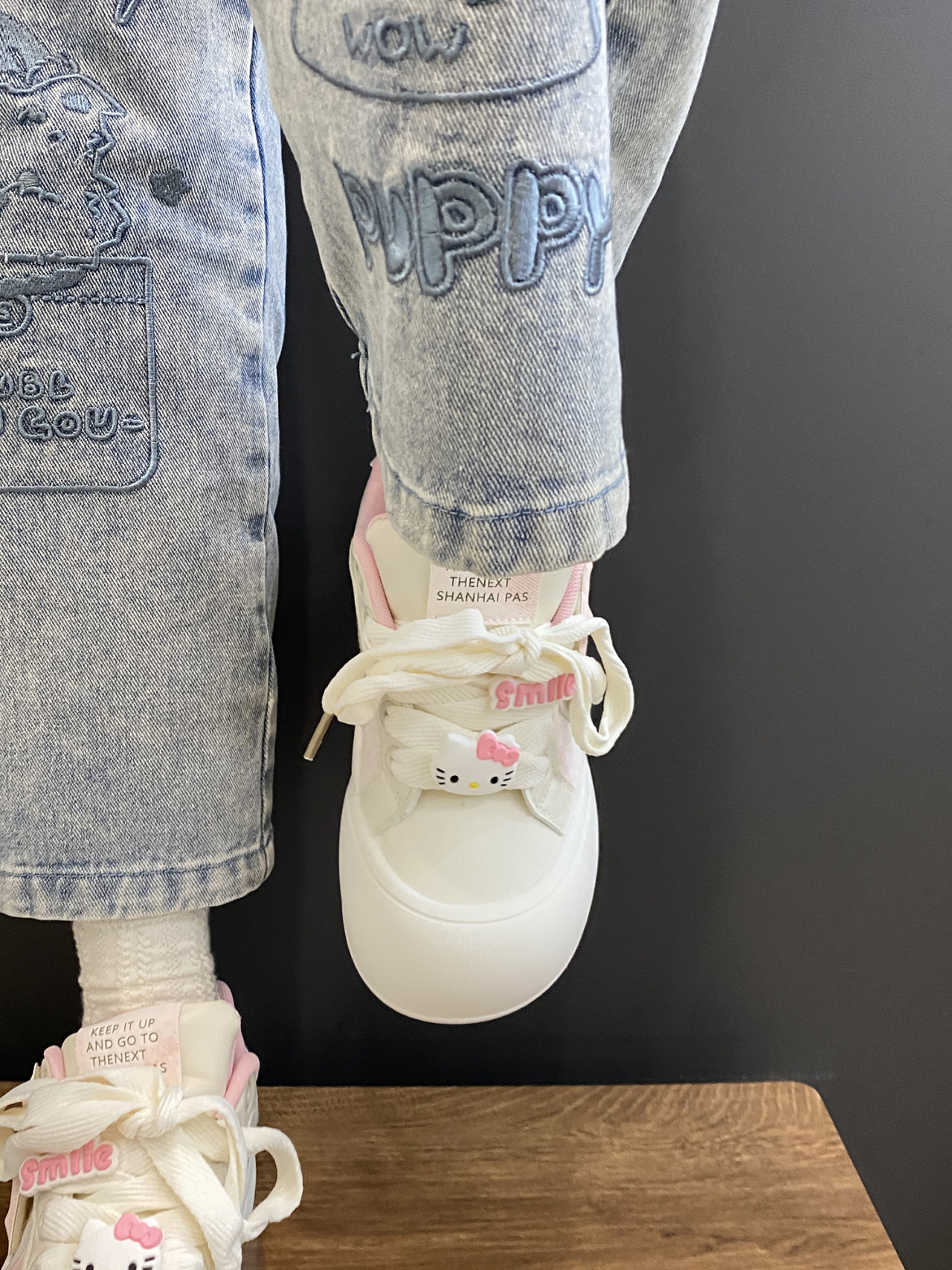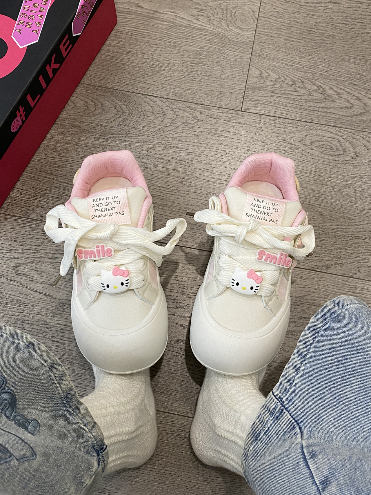 트렌디하고 귀여운 Kt 고양이 흰색 신발 여성용 세련된 홍콩 스타일 캐주얼 신발 여성을위한 모든 경기 두꺼운 슬라브 신발스토어 가기